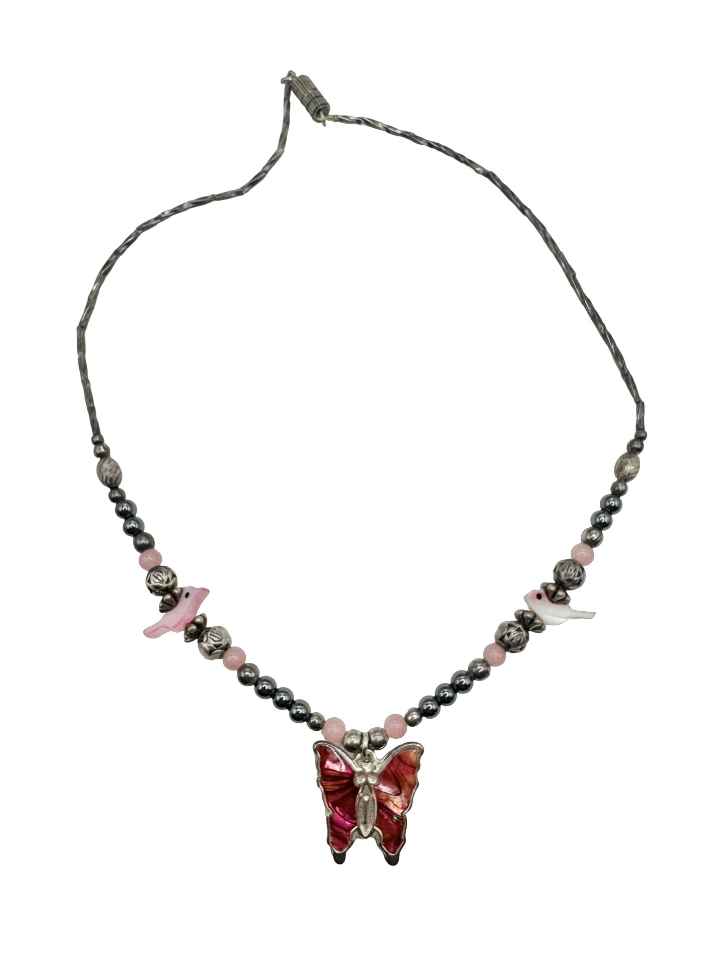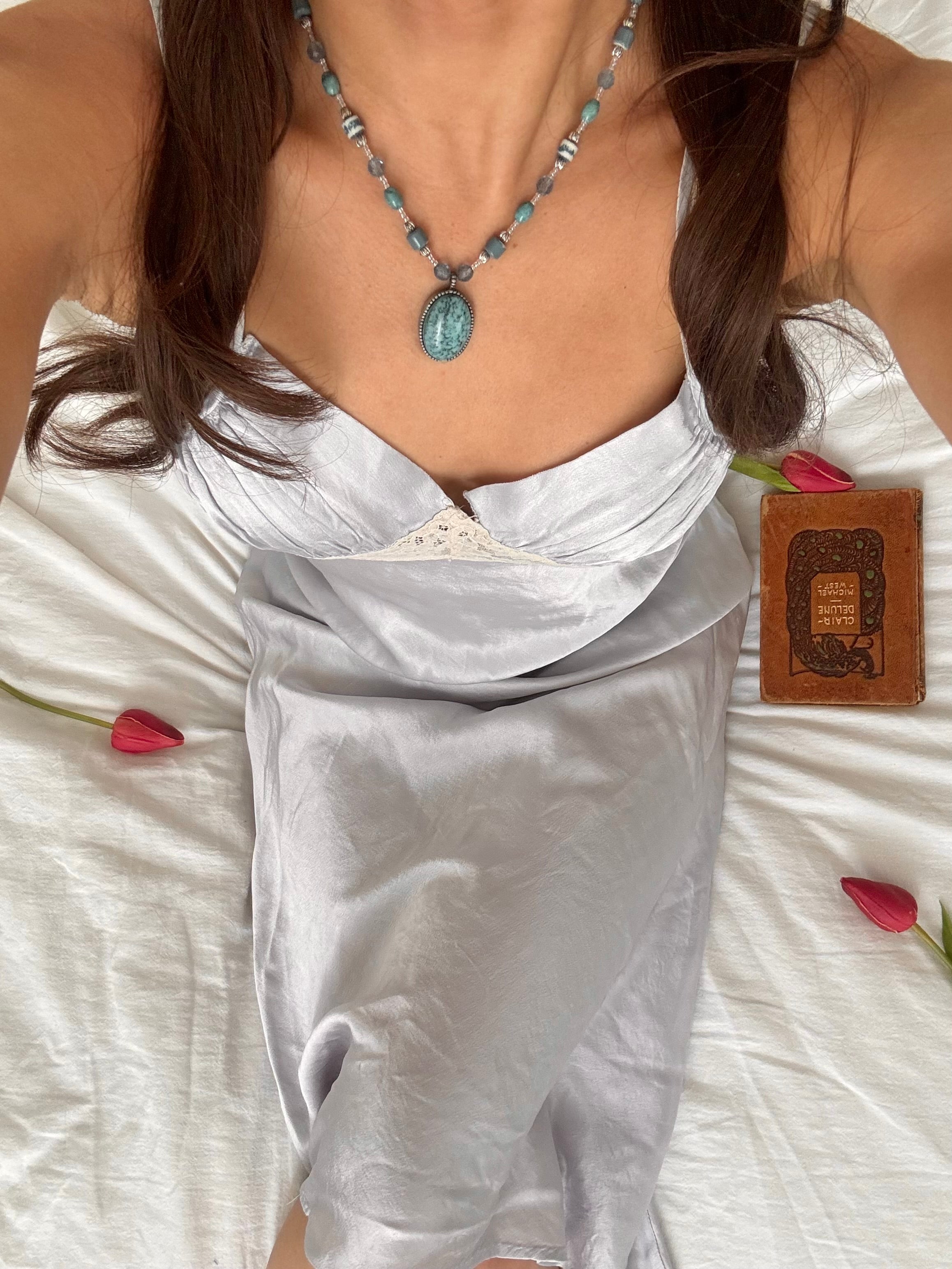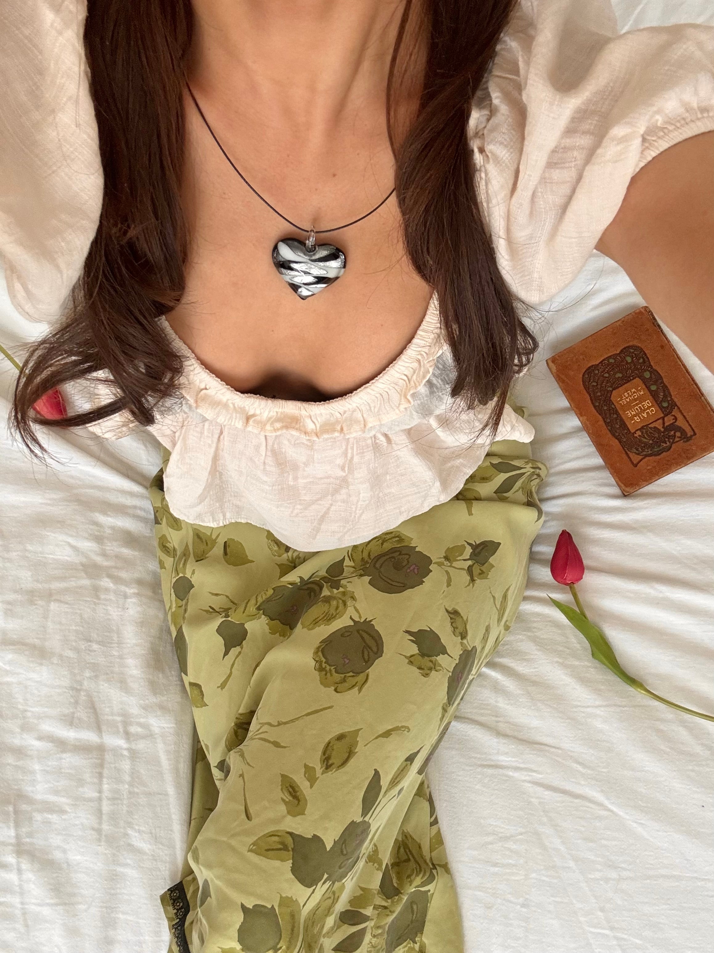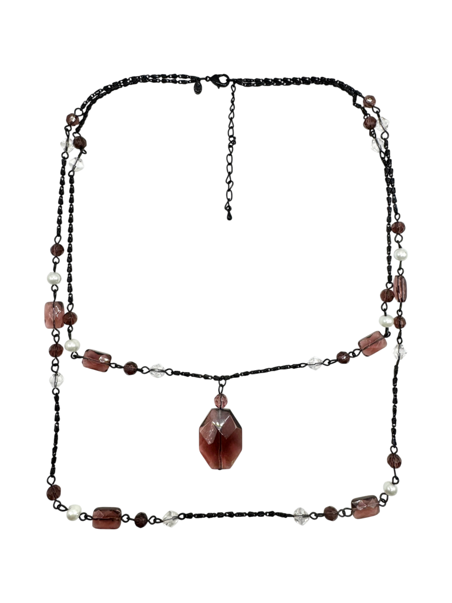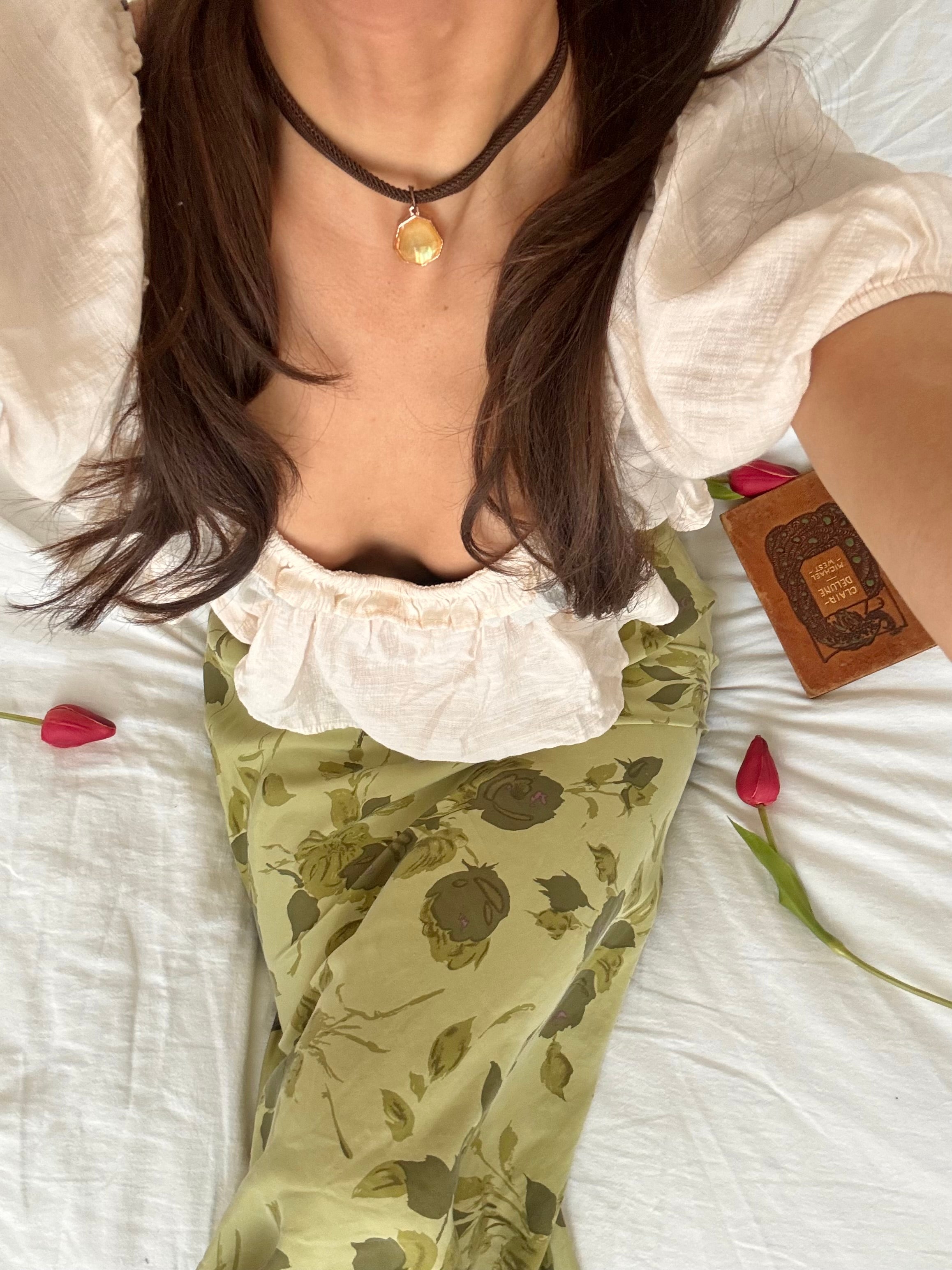 Vintage Amber Stone & Floral Art Nouveau Necklace