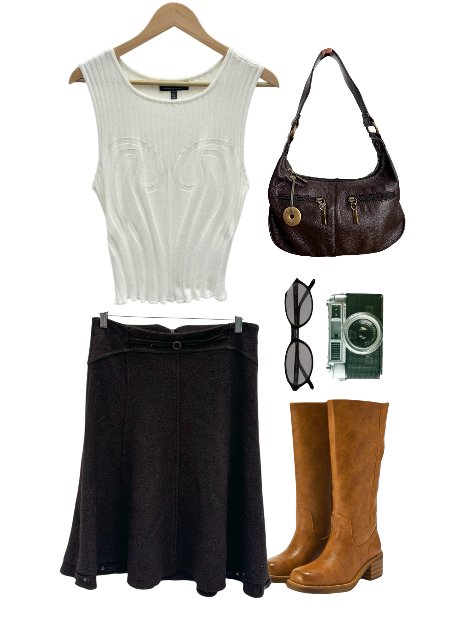 Vintage 90s Espresso Wool A-Line Skirt (M)