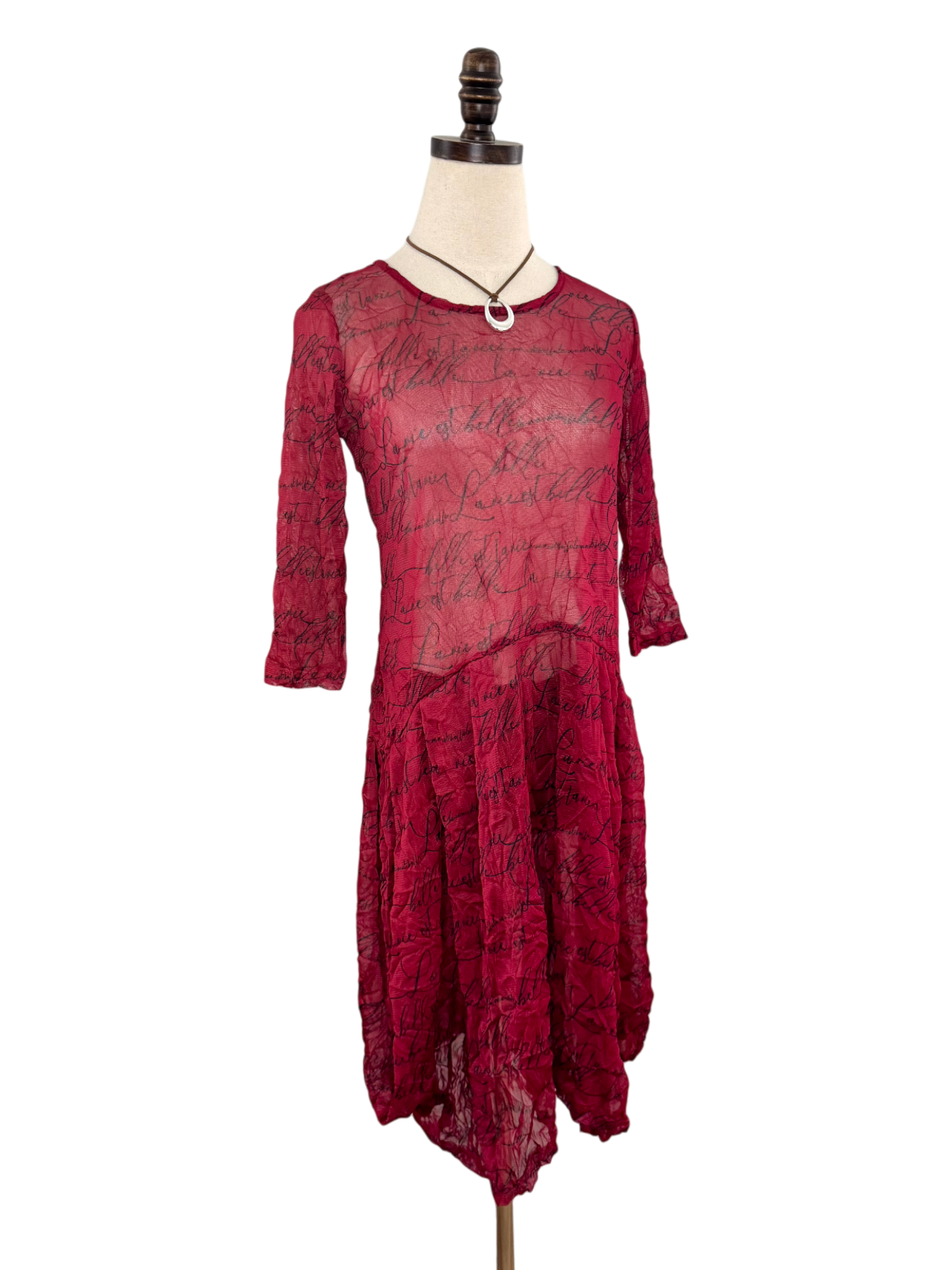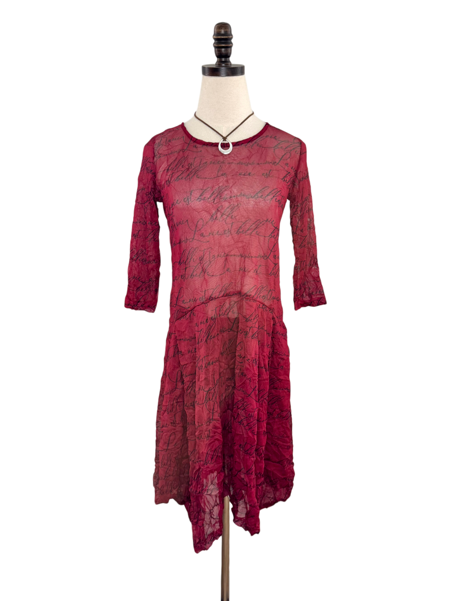 Vintage Y2K Crimson Script Mesh Midi Dress (S)