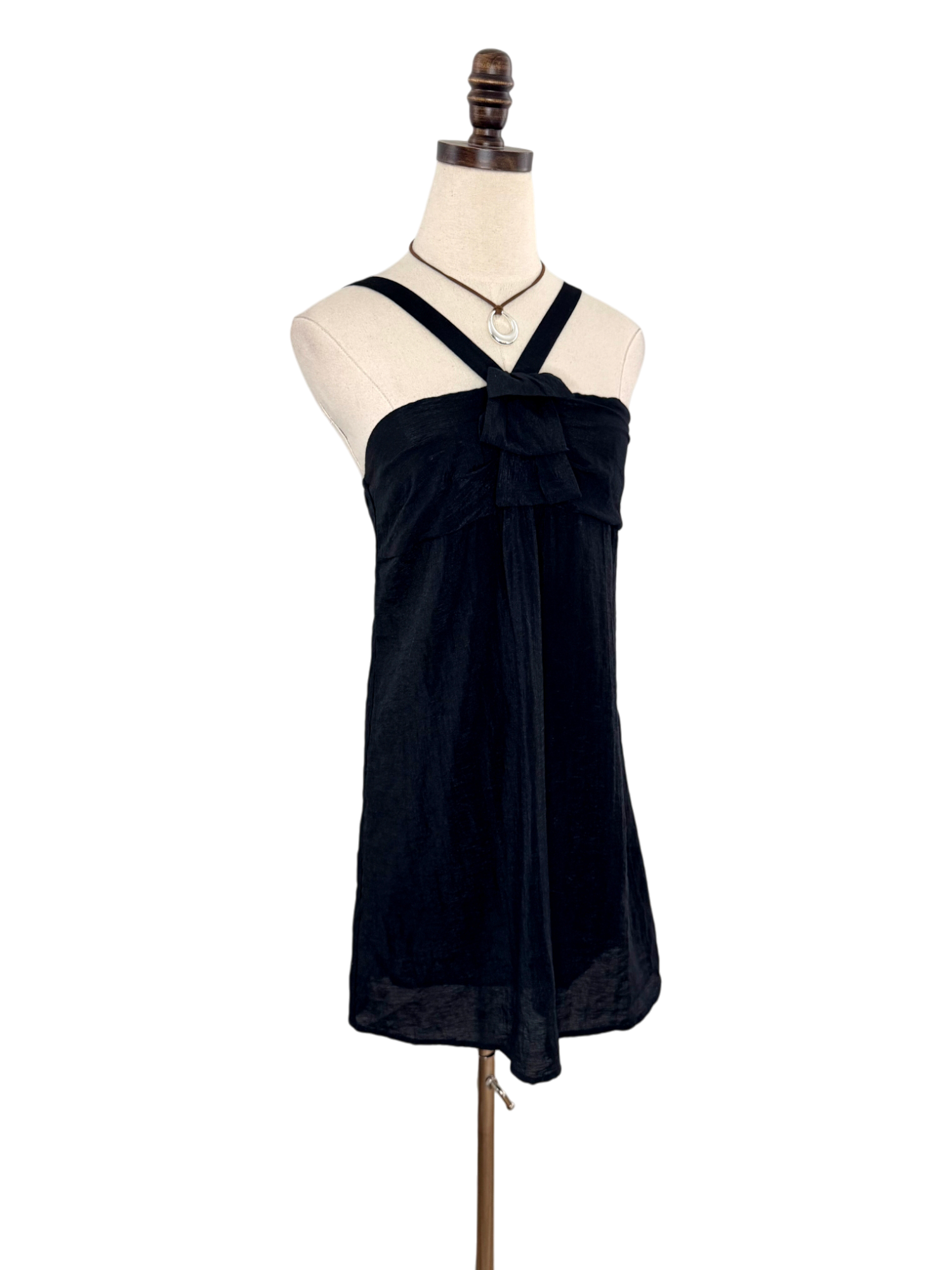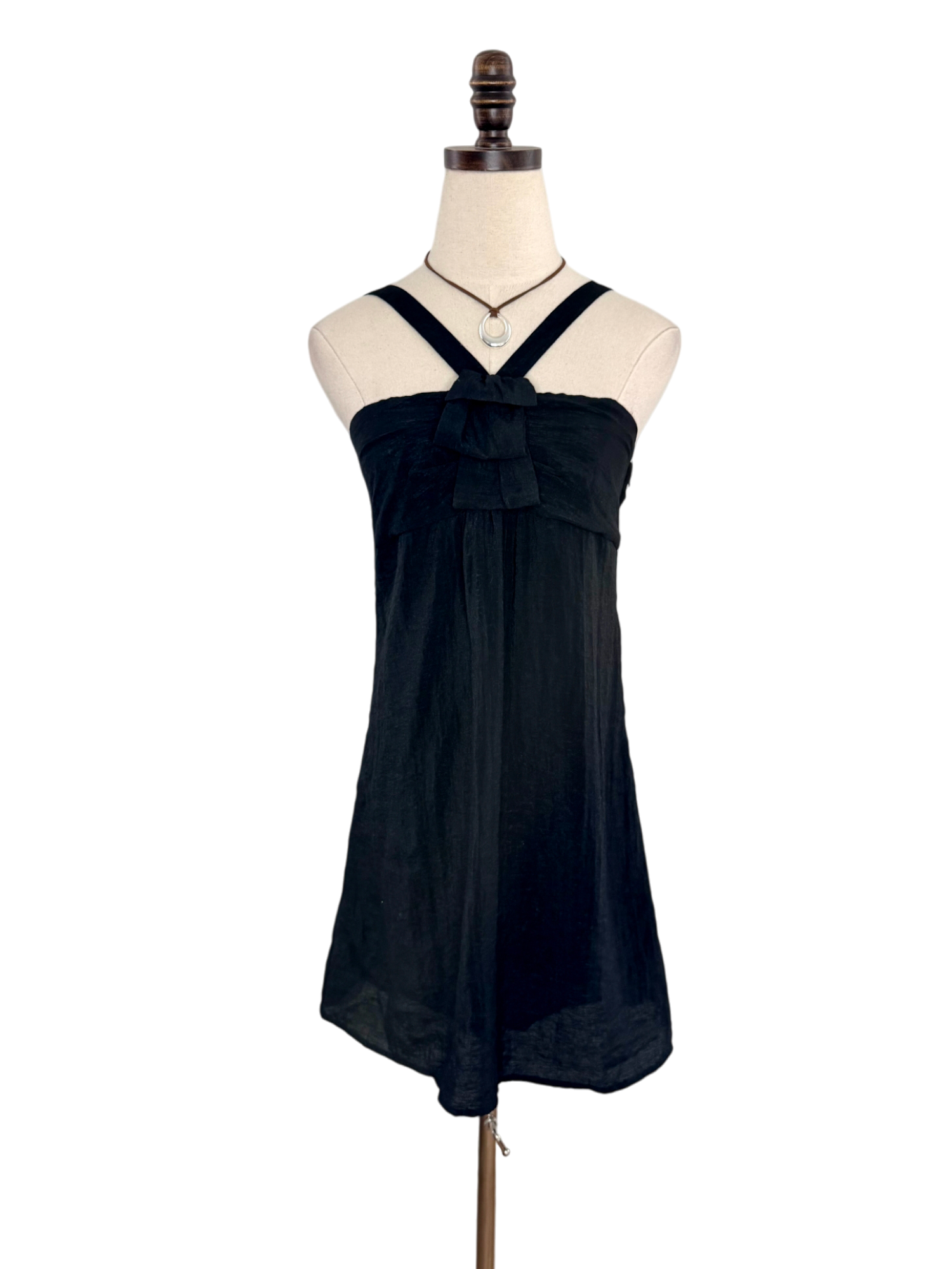 Vintage Y2K Black Bow-Front Mini Dress (S)