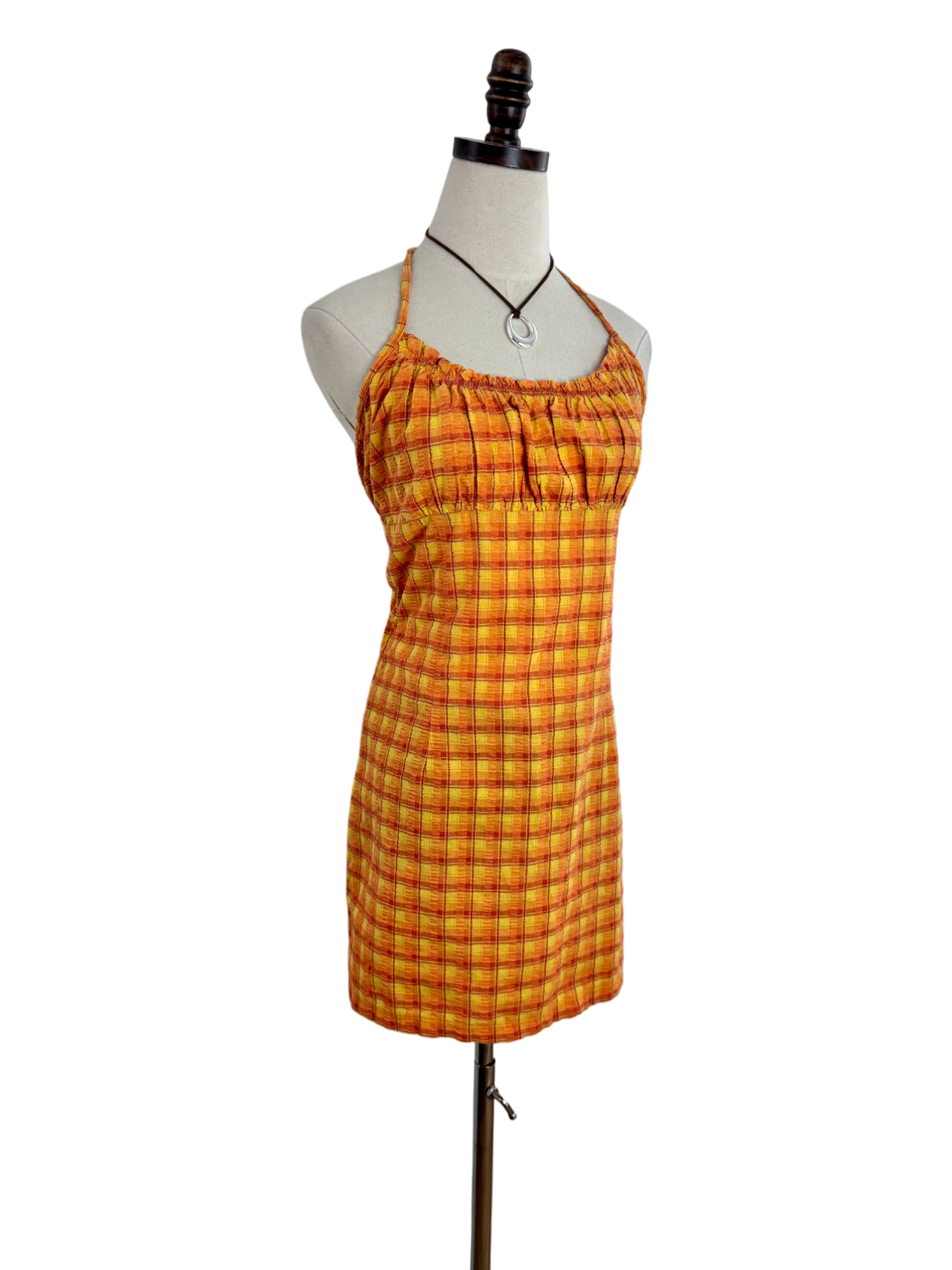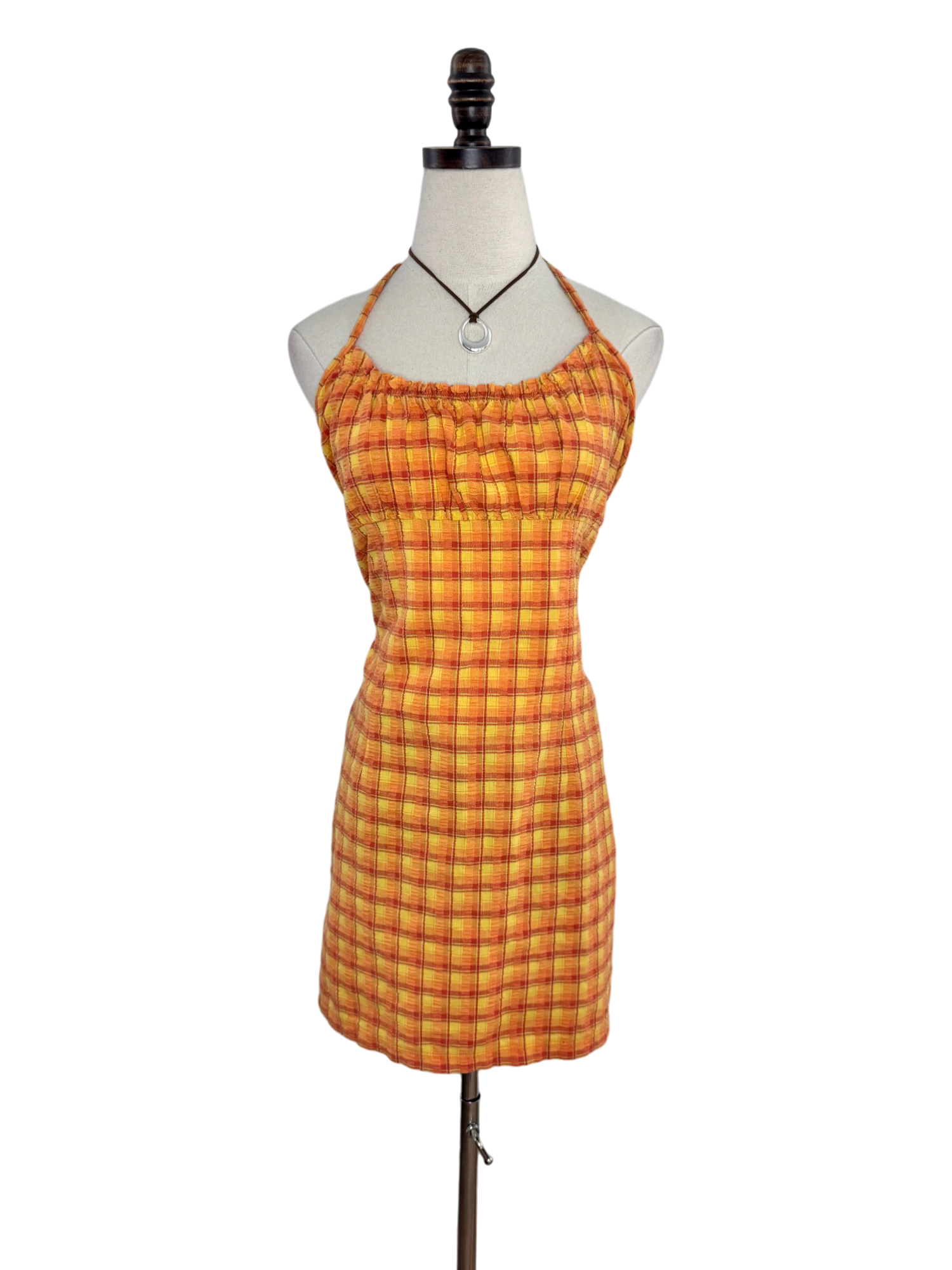 Vintage 90s Tangerine Plaid Halter Mini Dress (M)