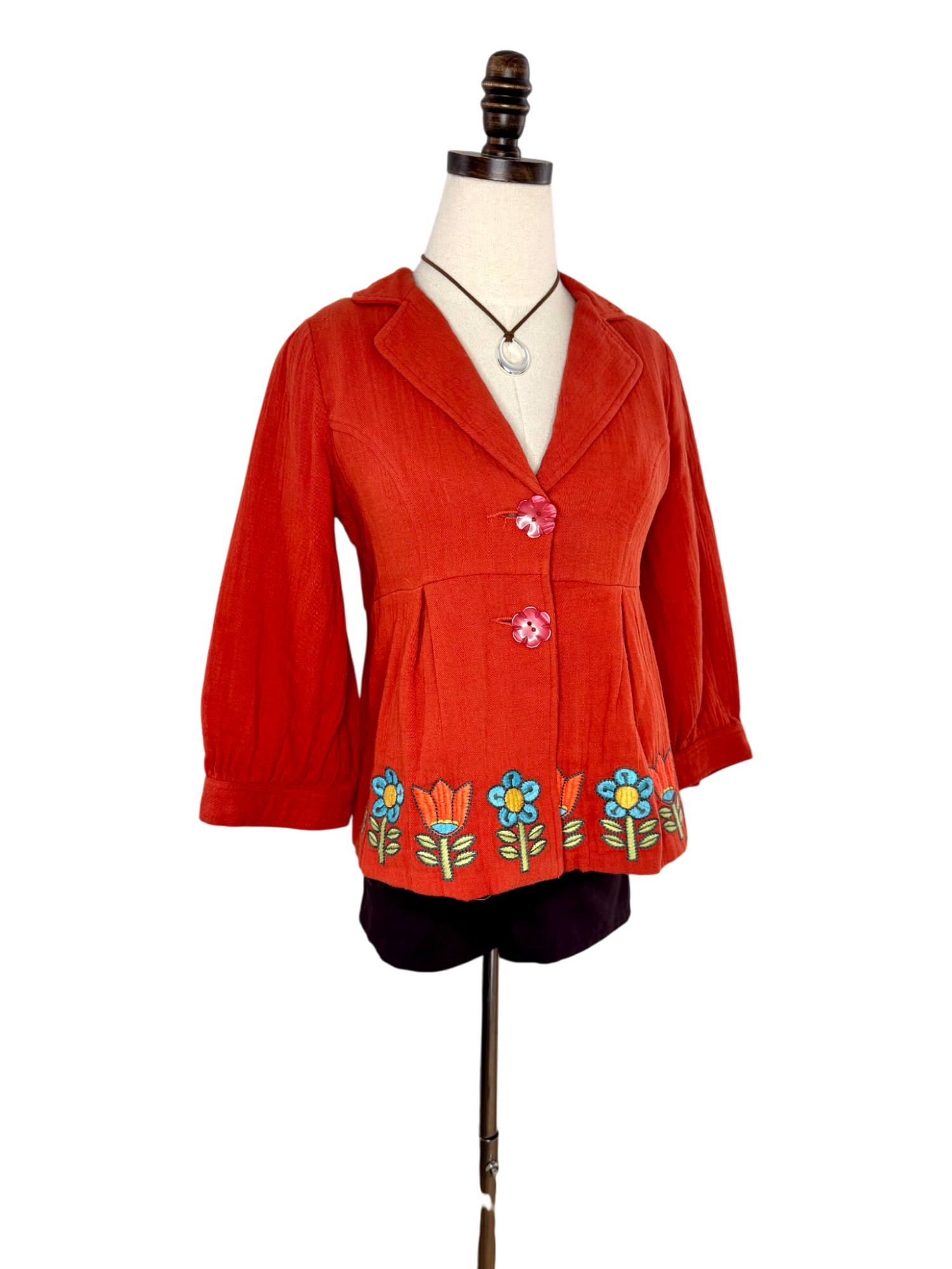 Vintage Embroidered Burnt Orange Peplum Jacket (XS/S)