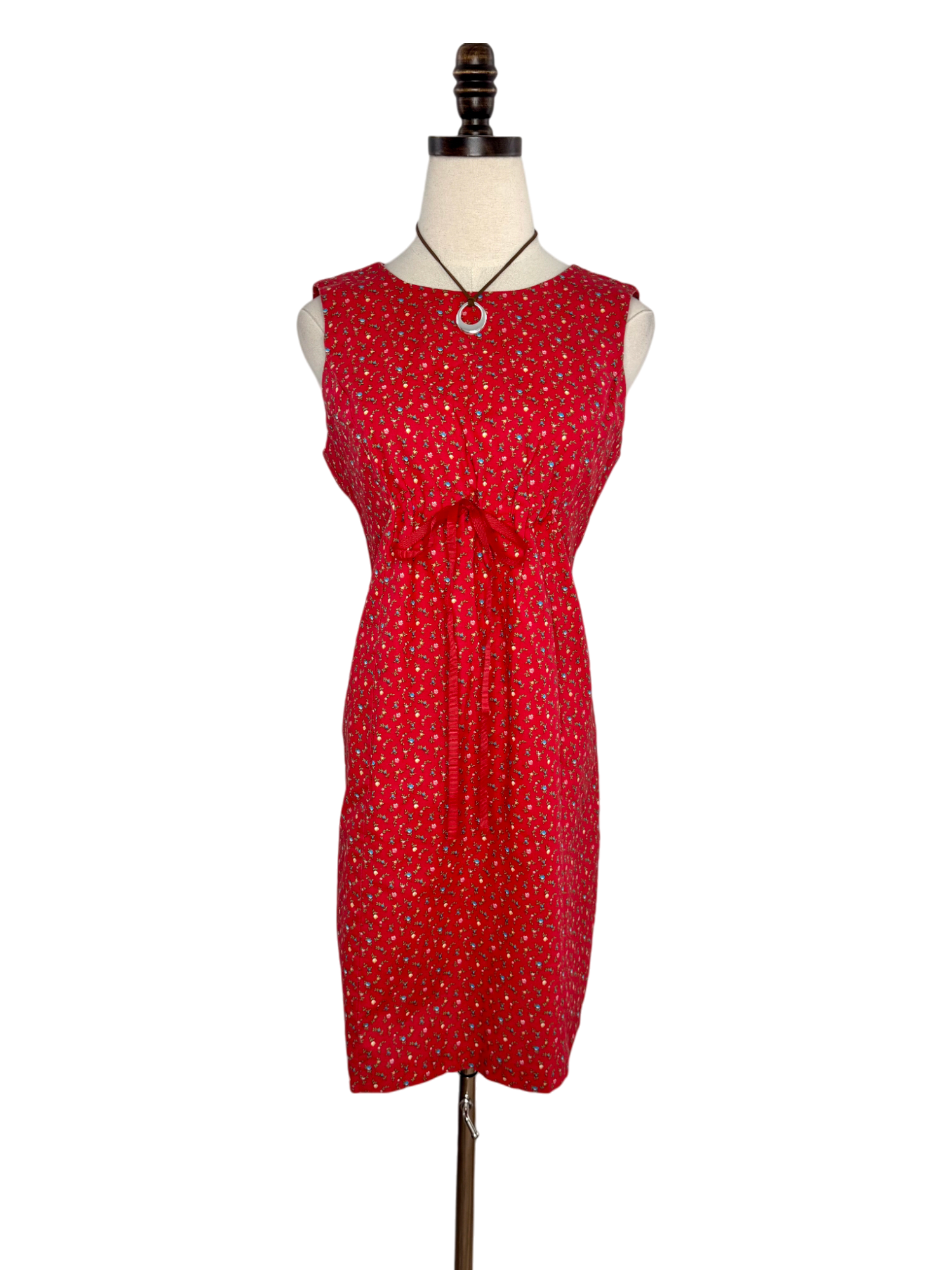 Vintage 90s Cherry Blossom Tie-Front Midi Dress (M)