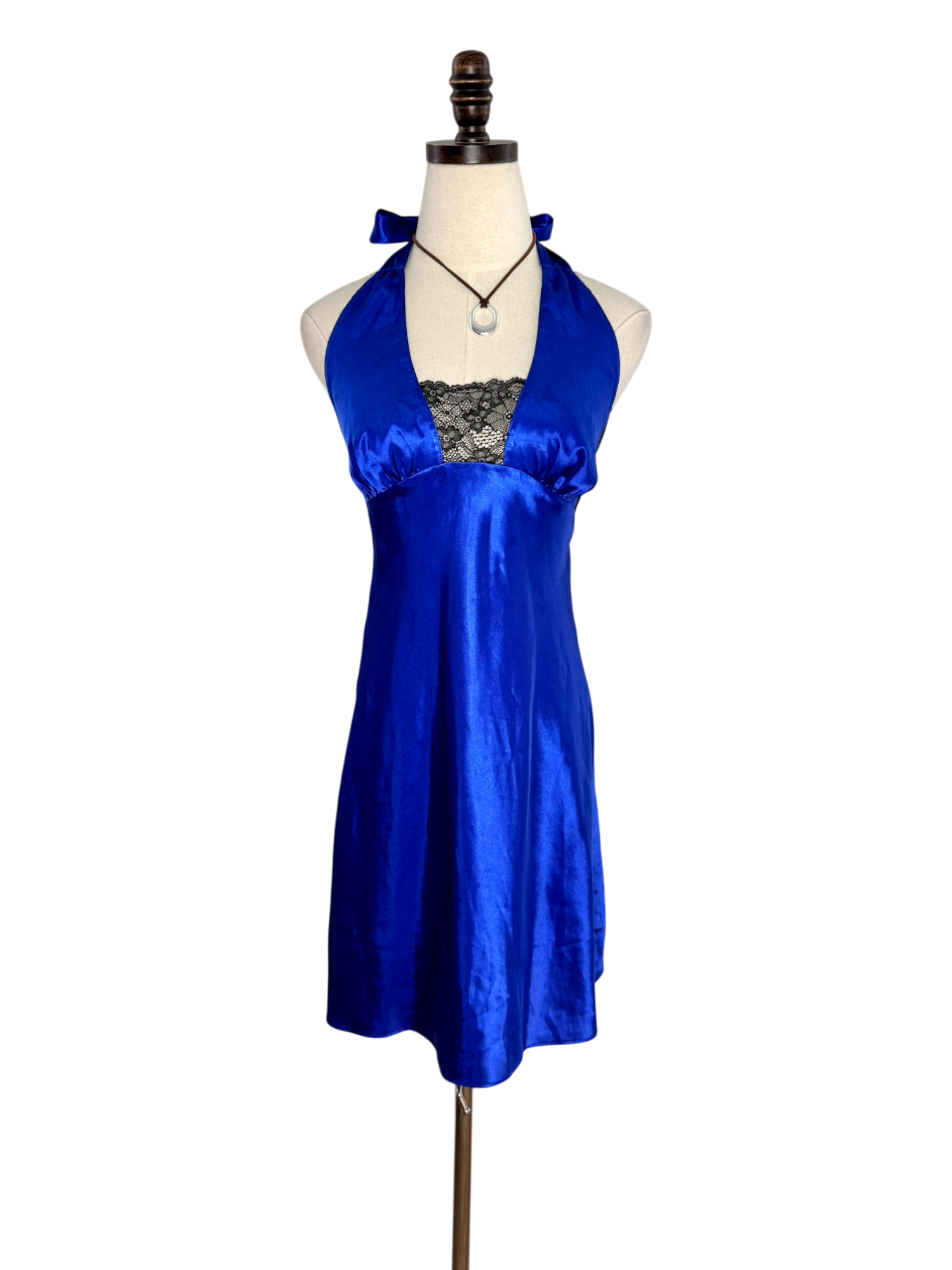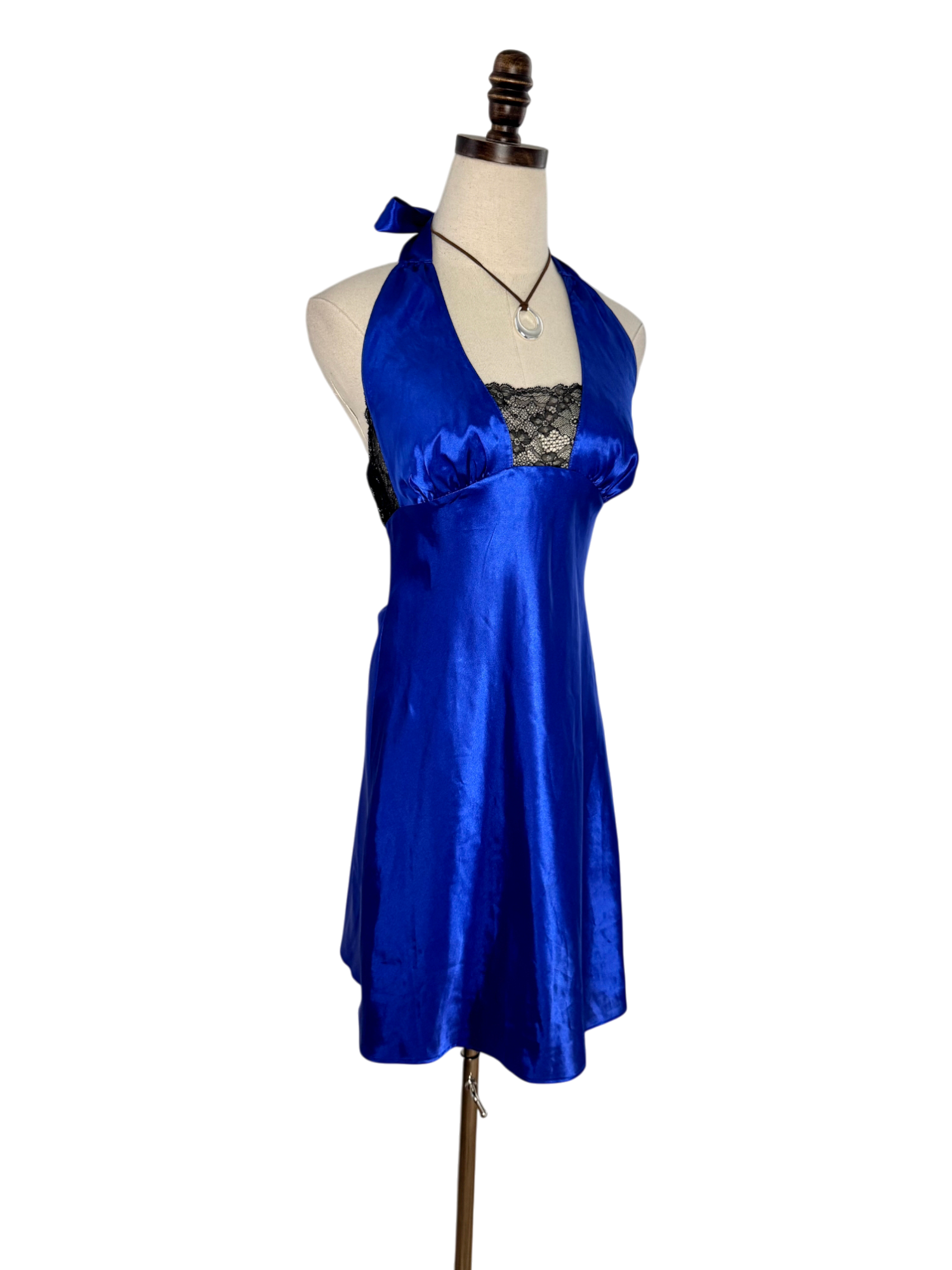 Vintage Y2K Electric Blue Satin Halter Dress (M)