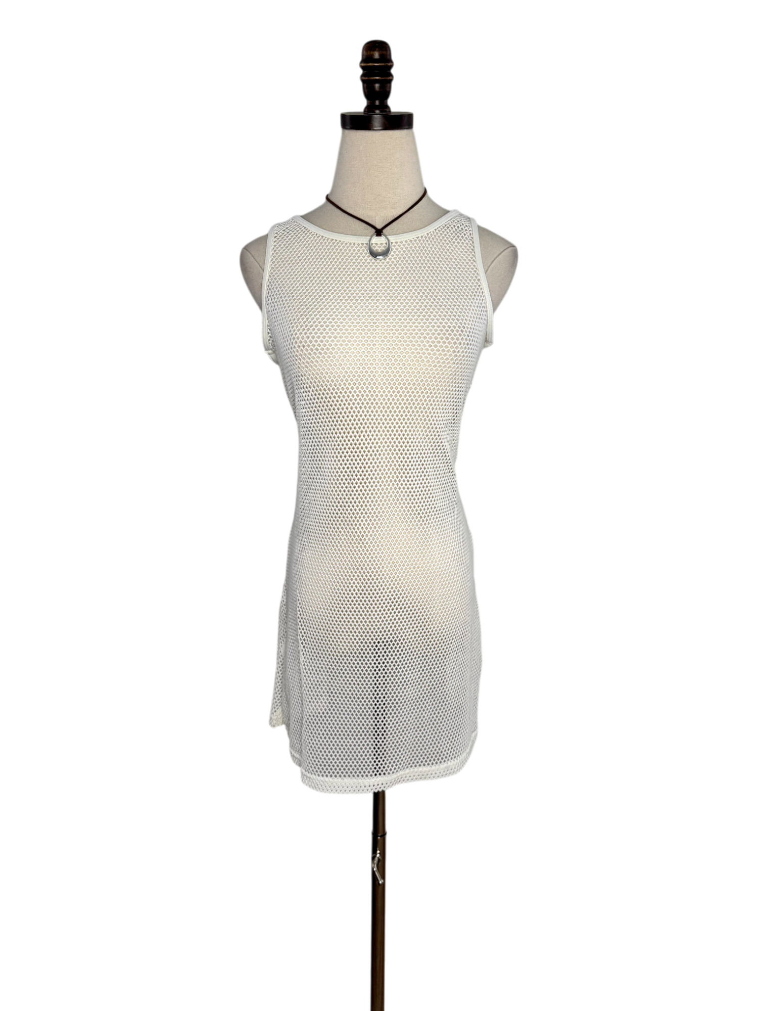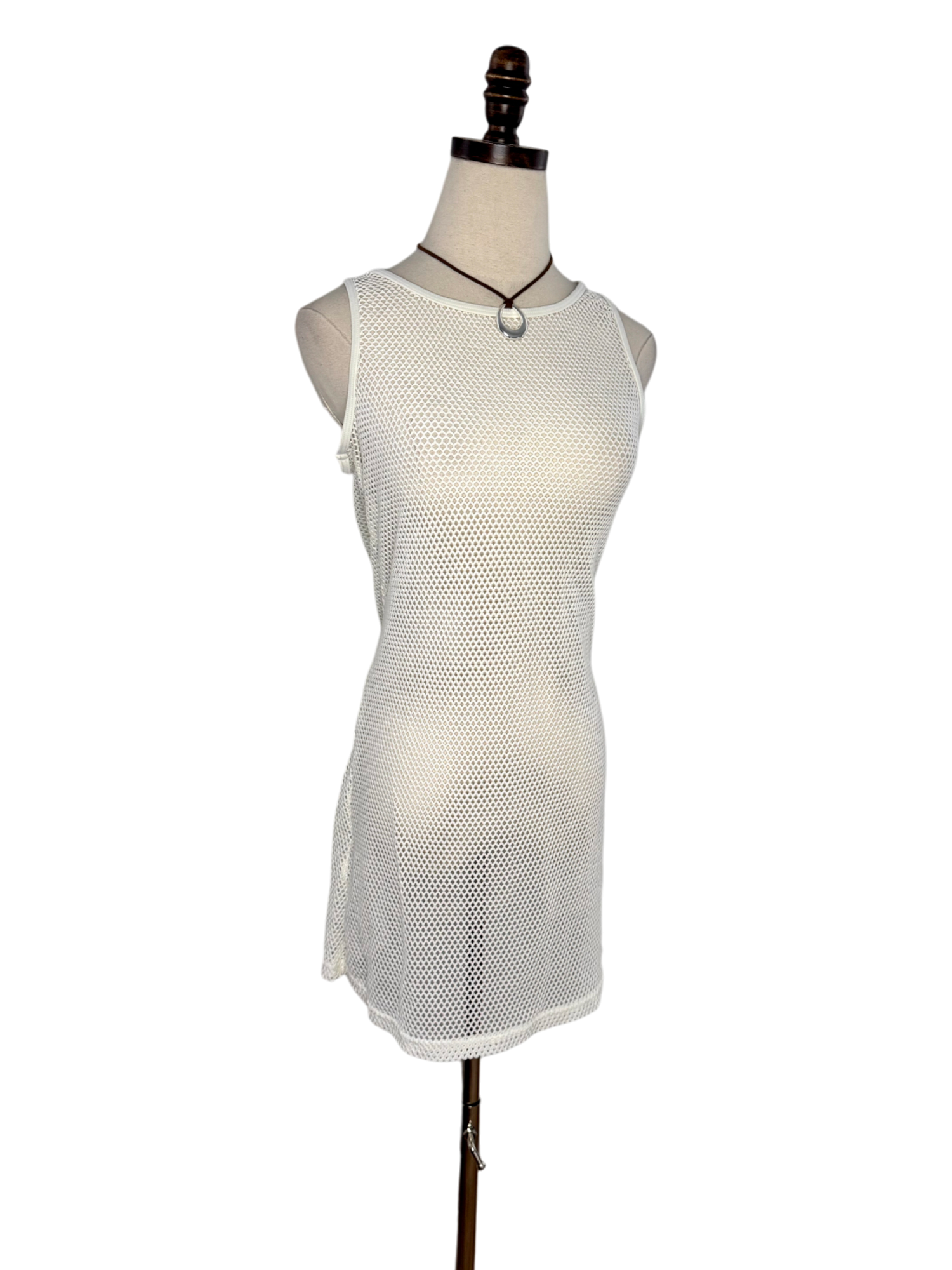 Vintage 90s Ivory Mesh Sleeveless Dress (S/M)