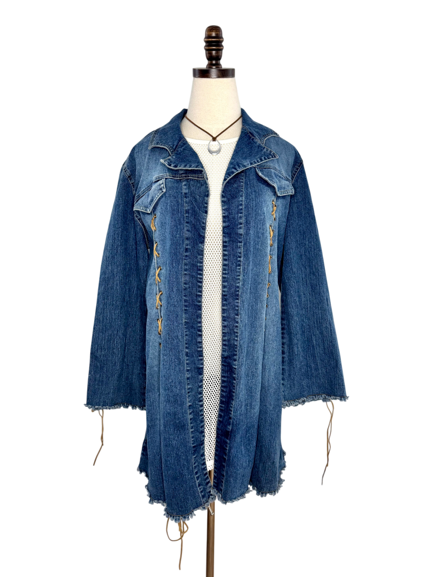 Vintage 90s Boho Laced Denim Duster Jacket (M)