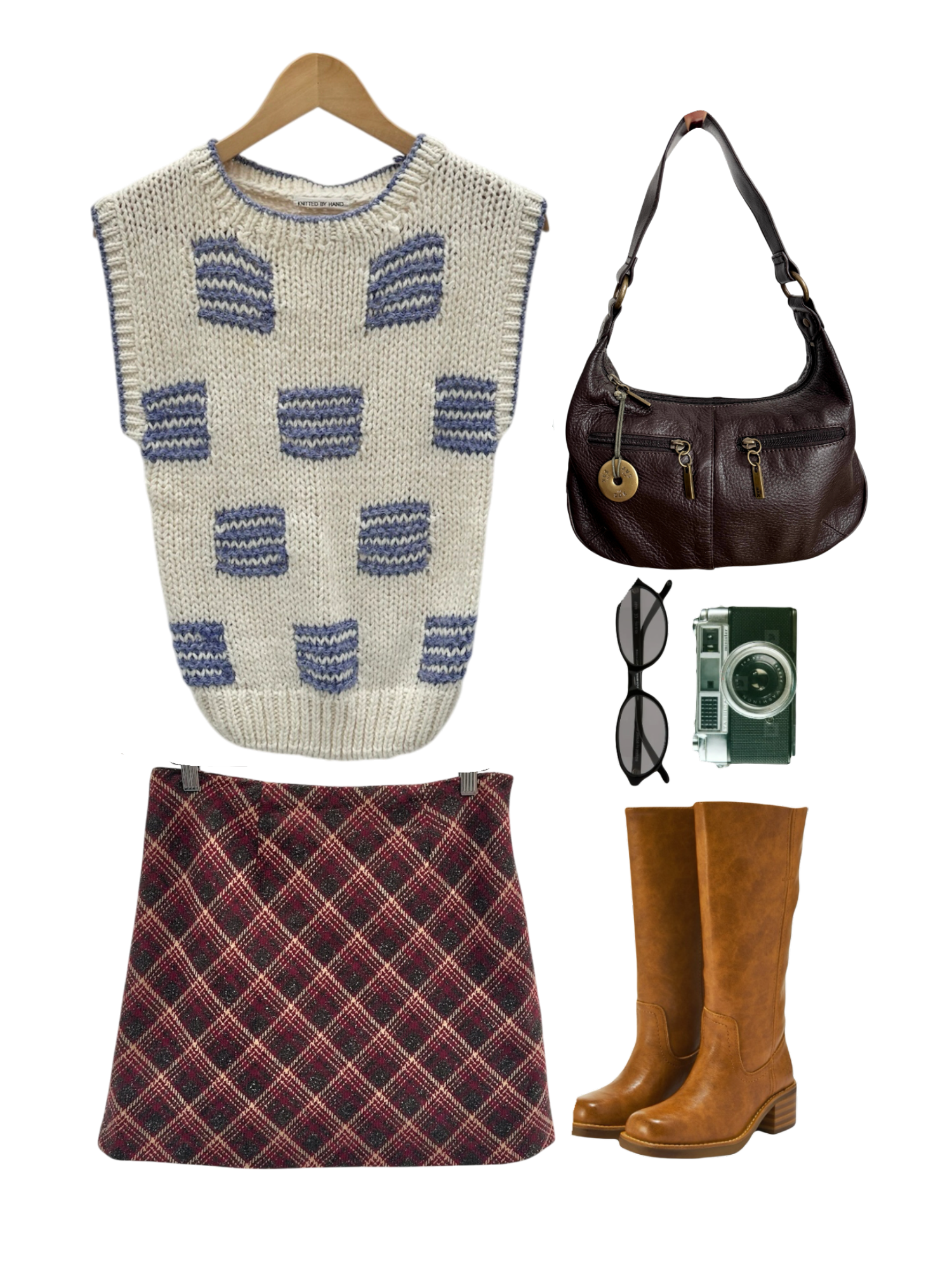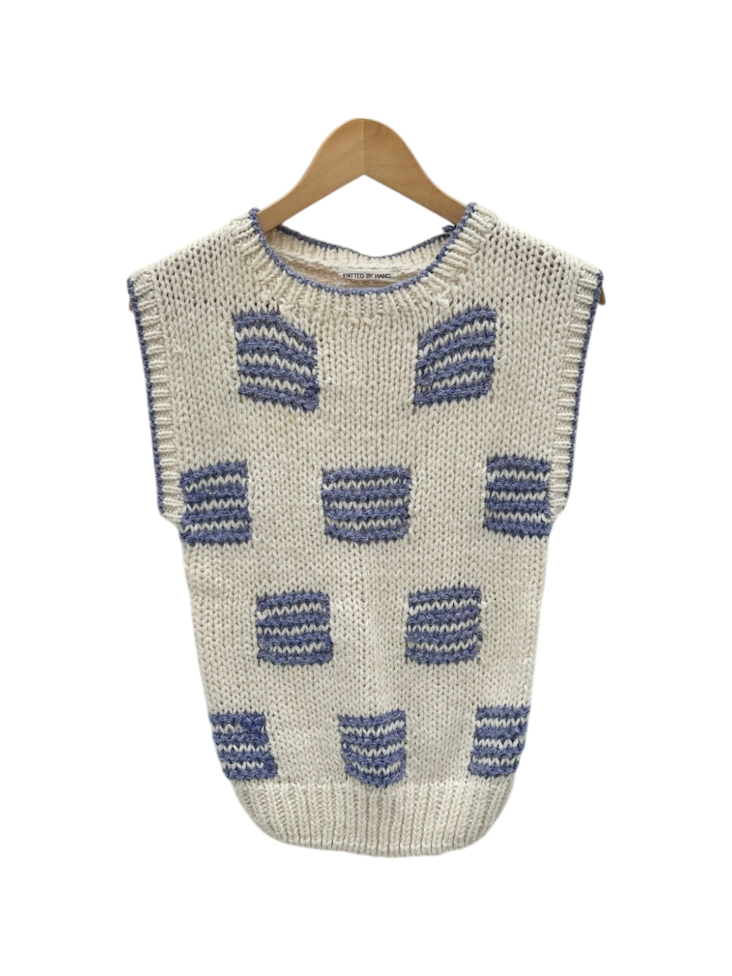 Vintage Hand-Knit Cream & Periwinkle Checkered Vest (S/M)