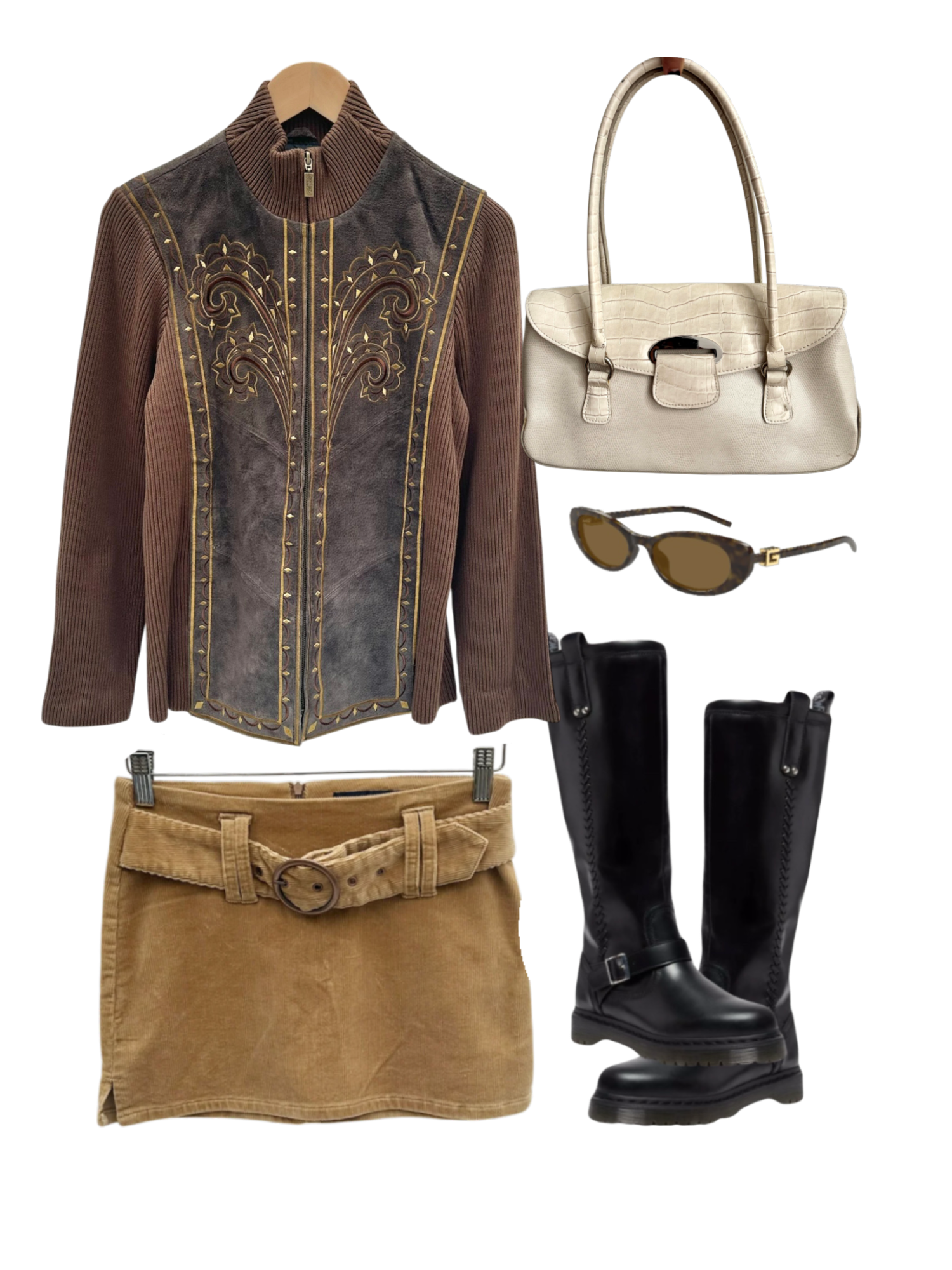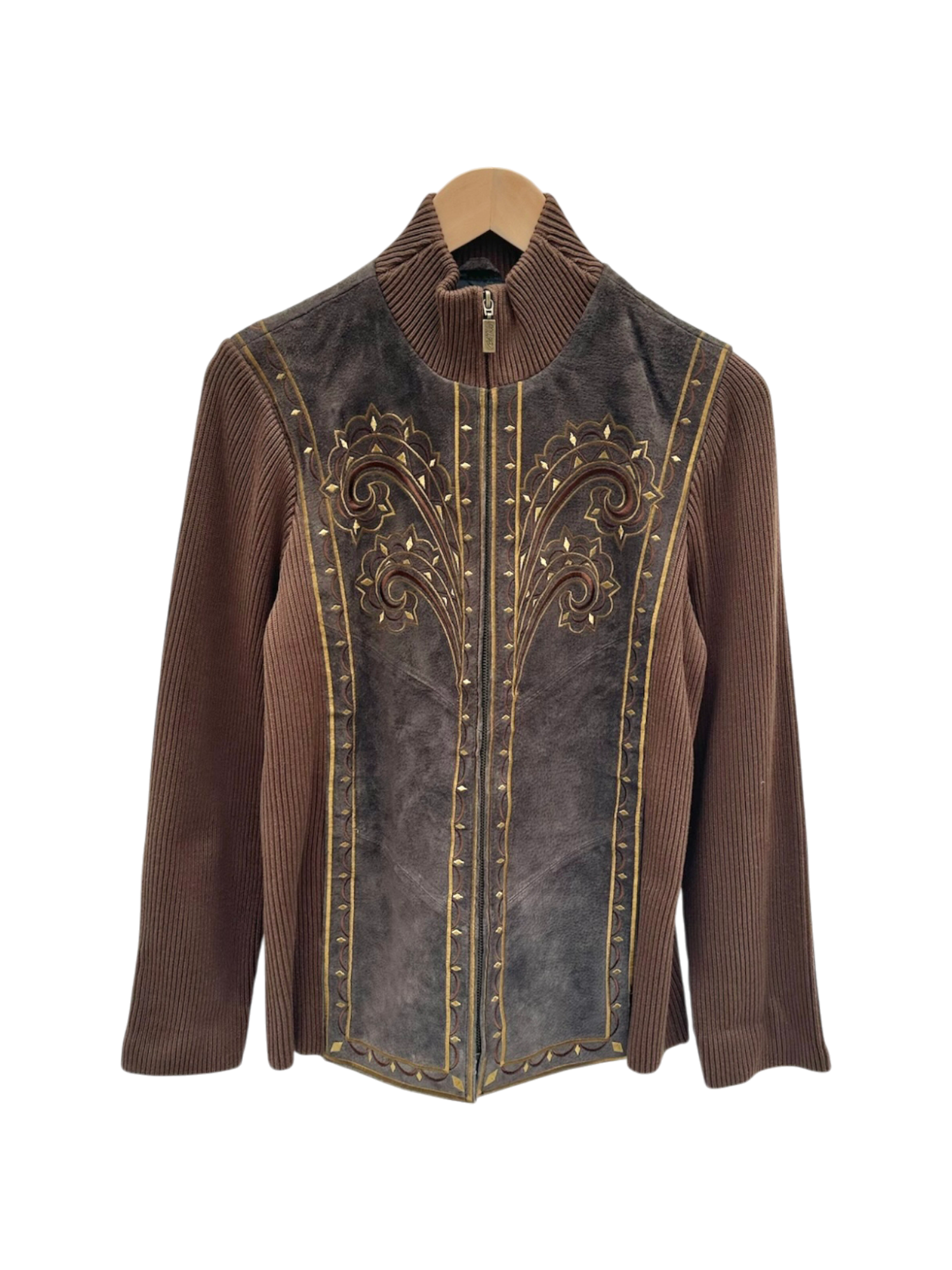 Vintage Boho Embroidered Leather & Knit Jacket (M)