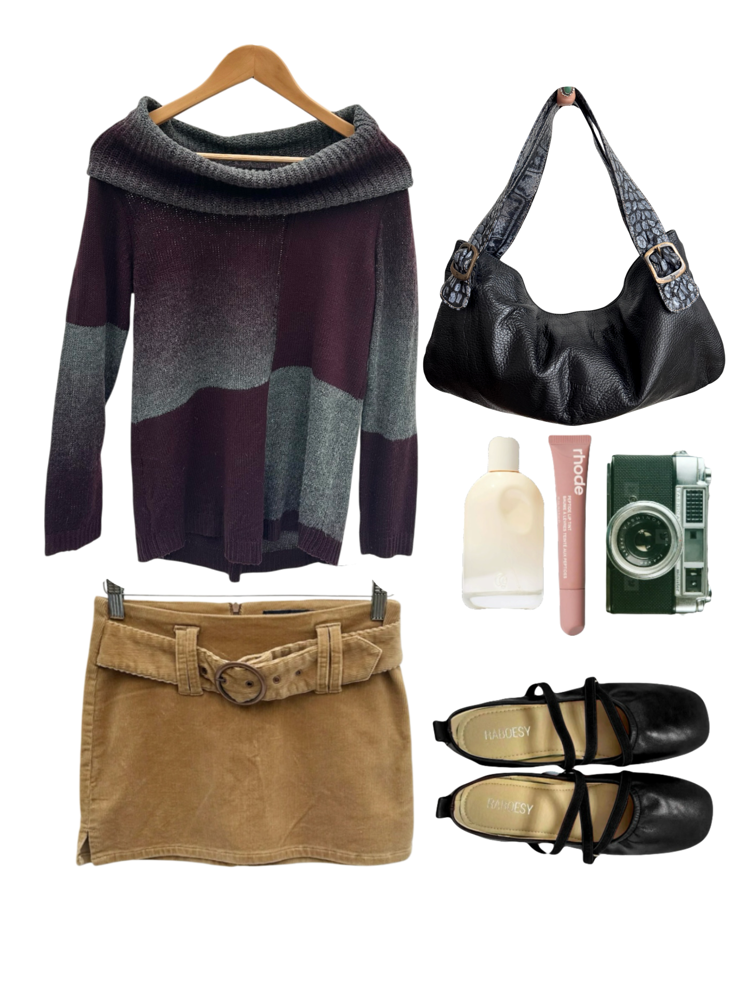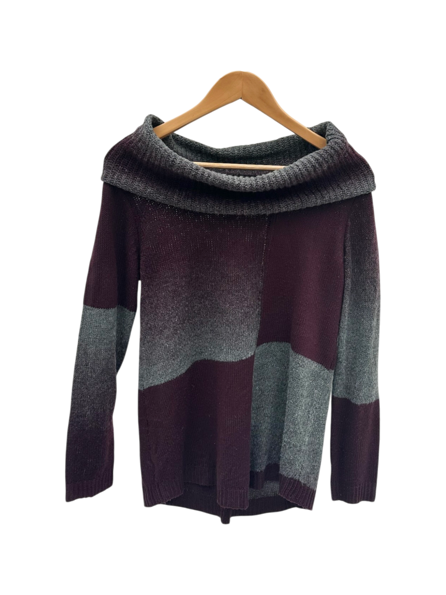 Vintage 90s Plum & Charcoal Off-Shoulder Sweater (M)