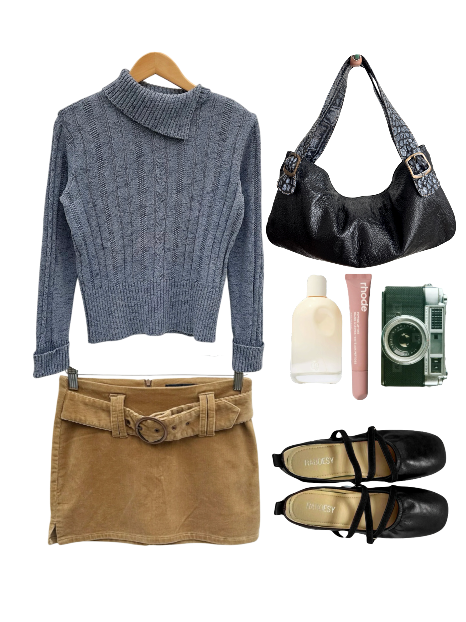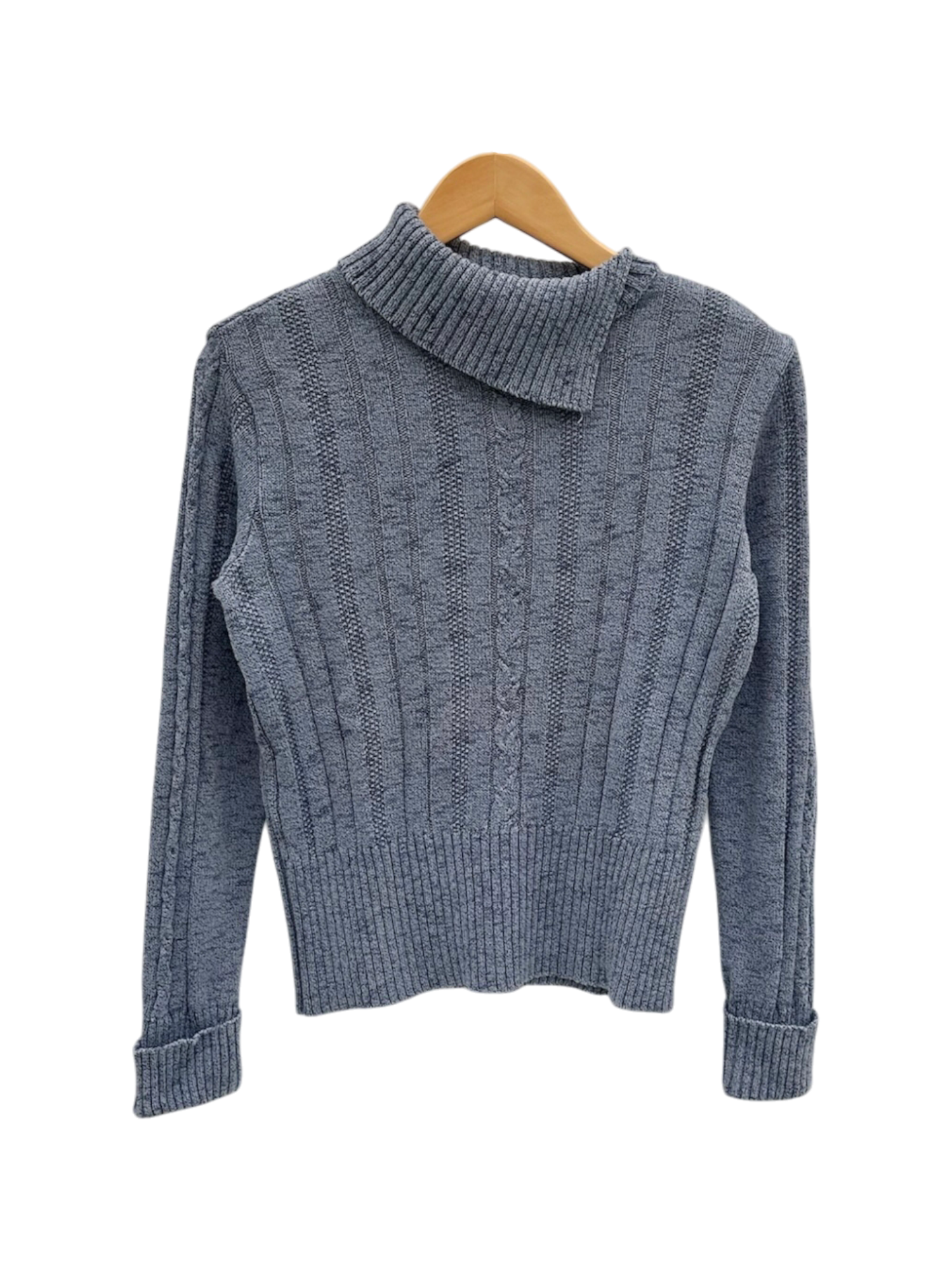 Vintage 90s Storm Blue Ribbed Mockneck (M)