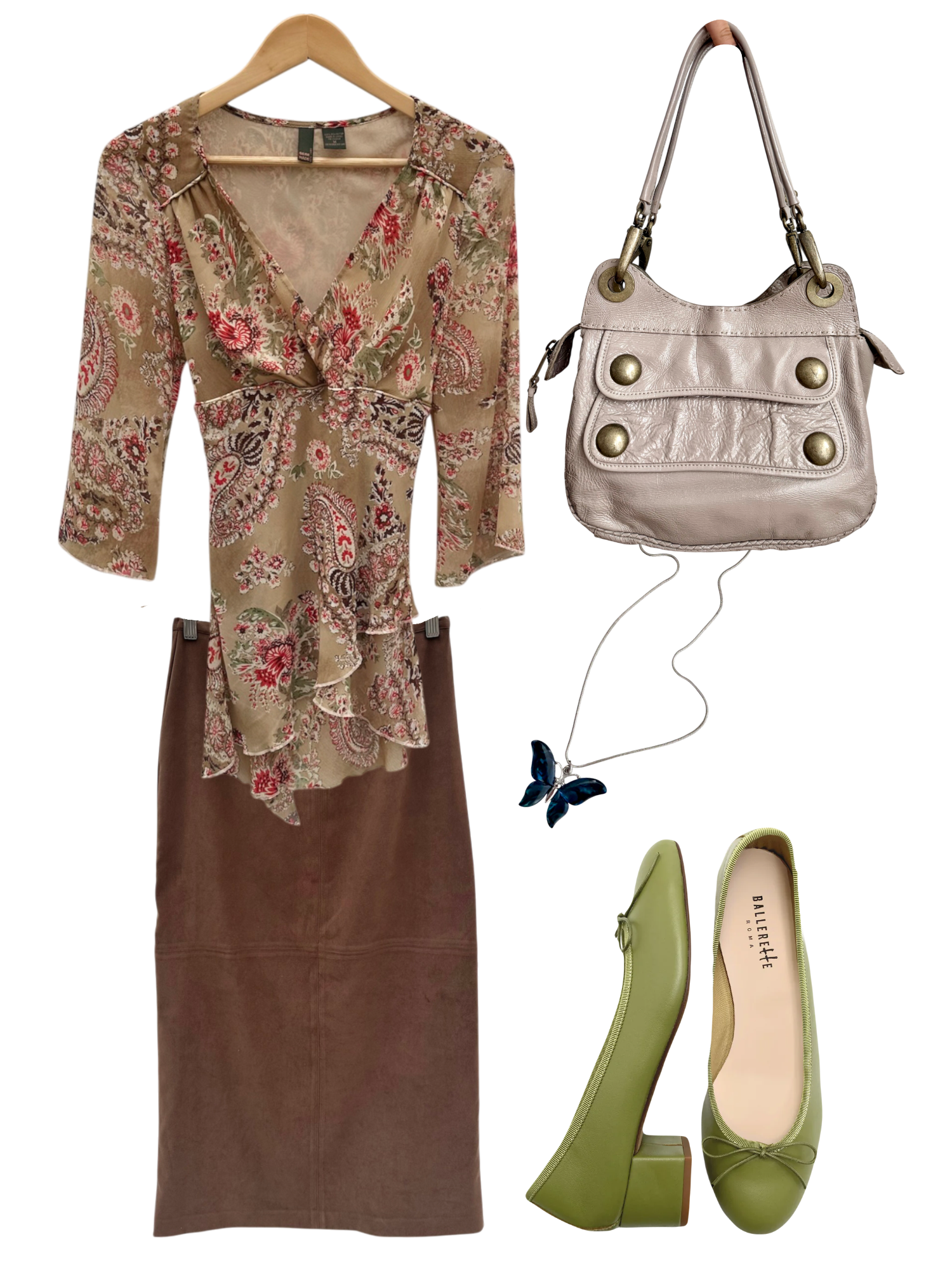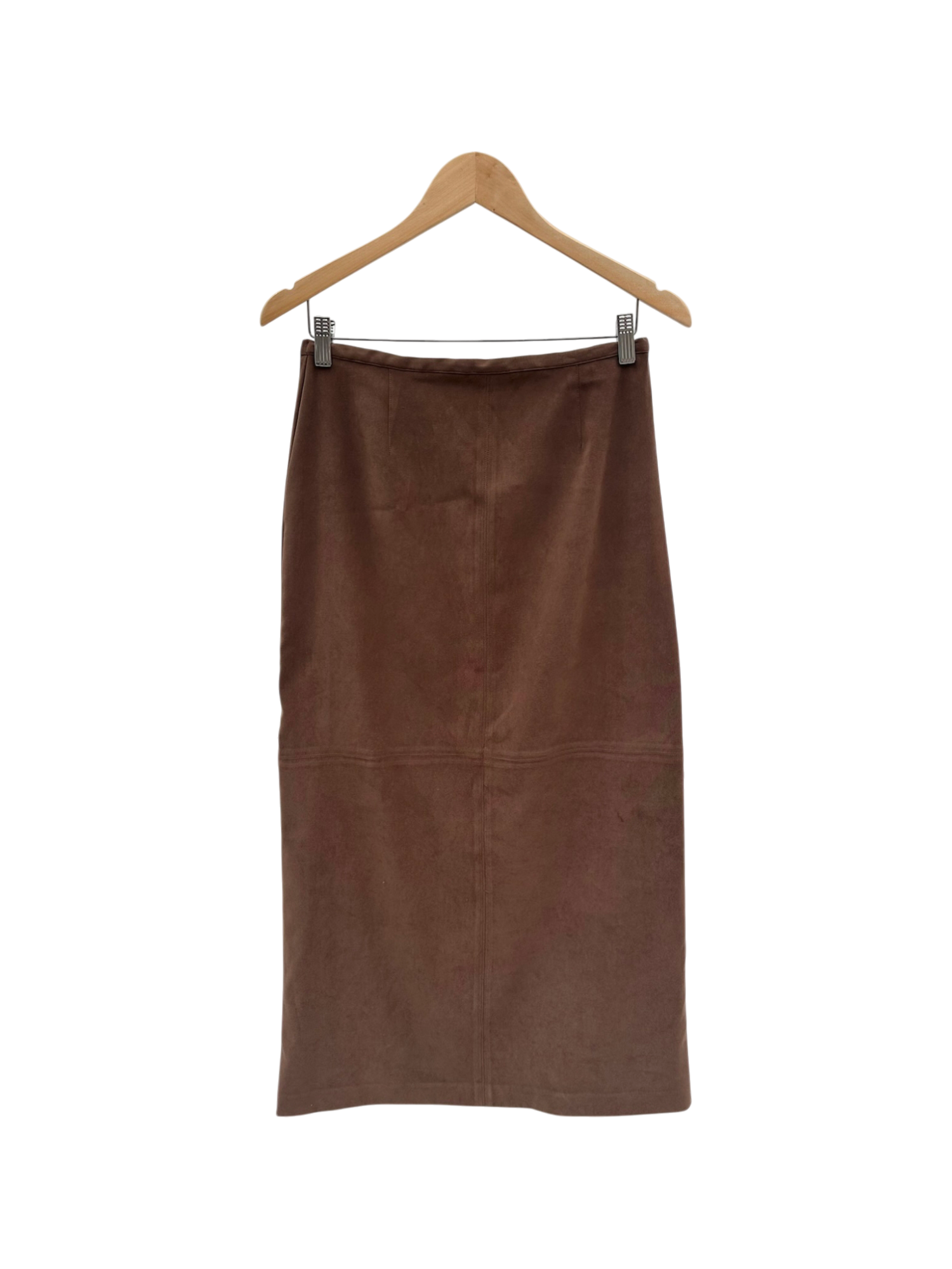 Vintage 90s Mocha Suede Midi Skirt (S/M)