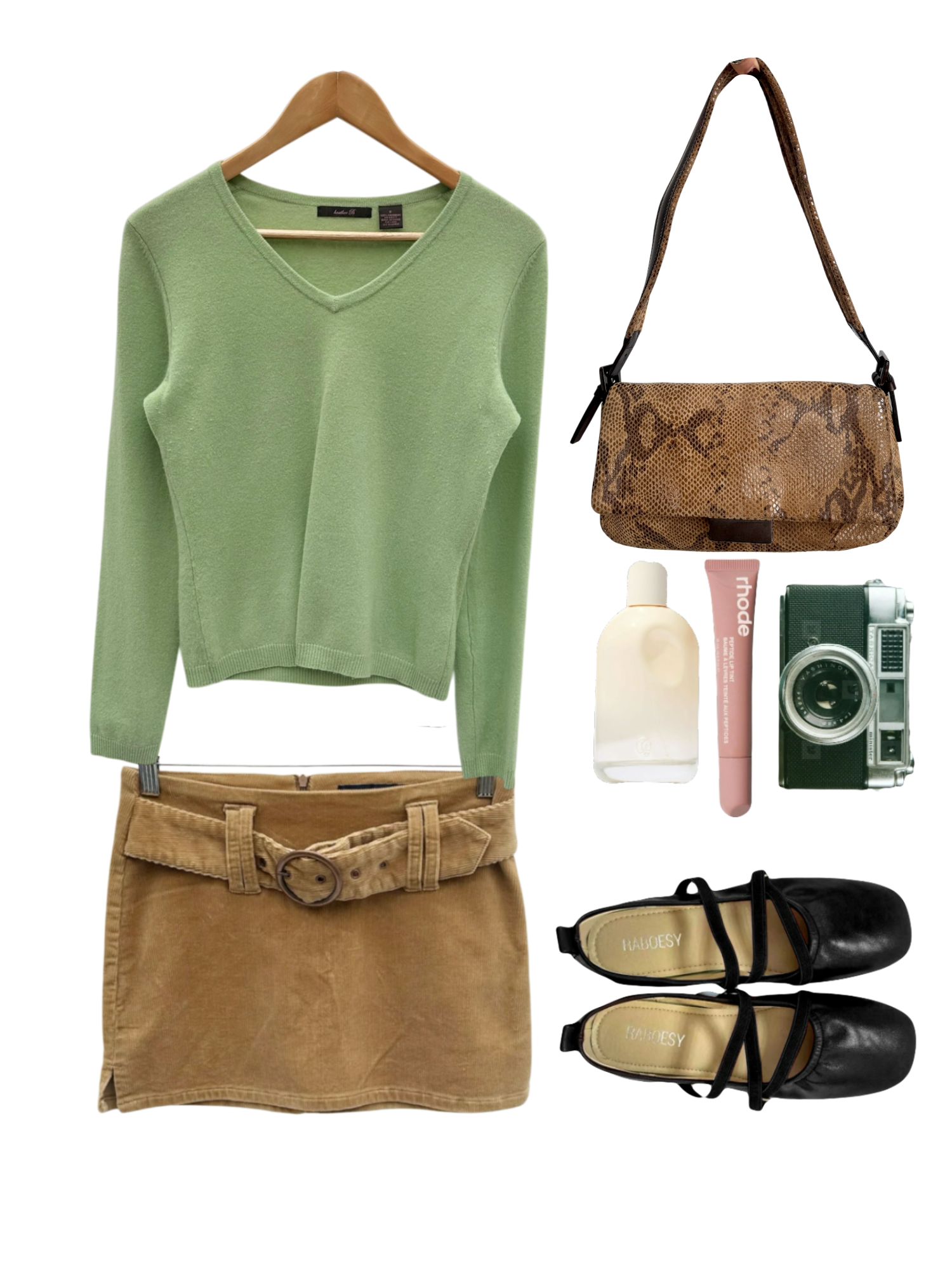 Vintage Y2K Avocado Cashmere V-Neck Sweater (S)