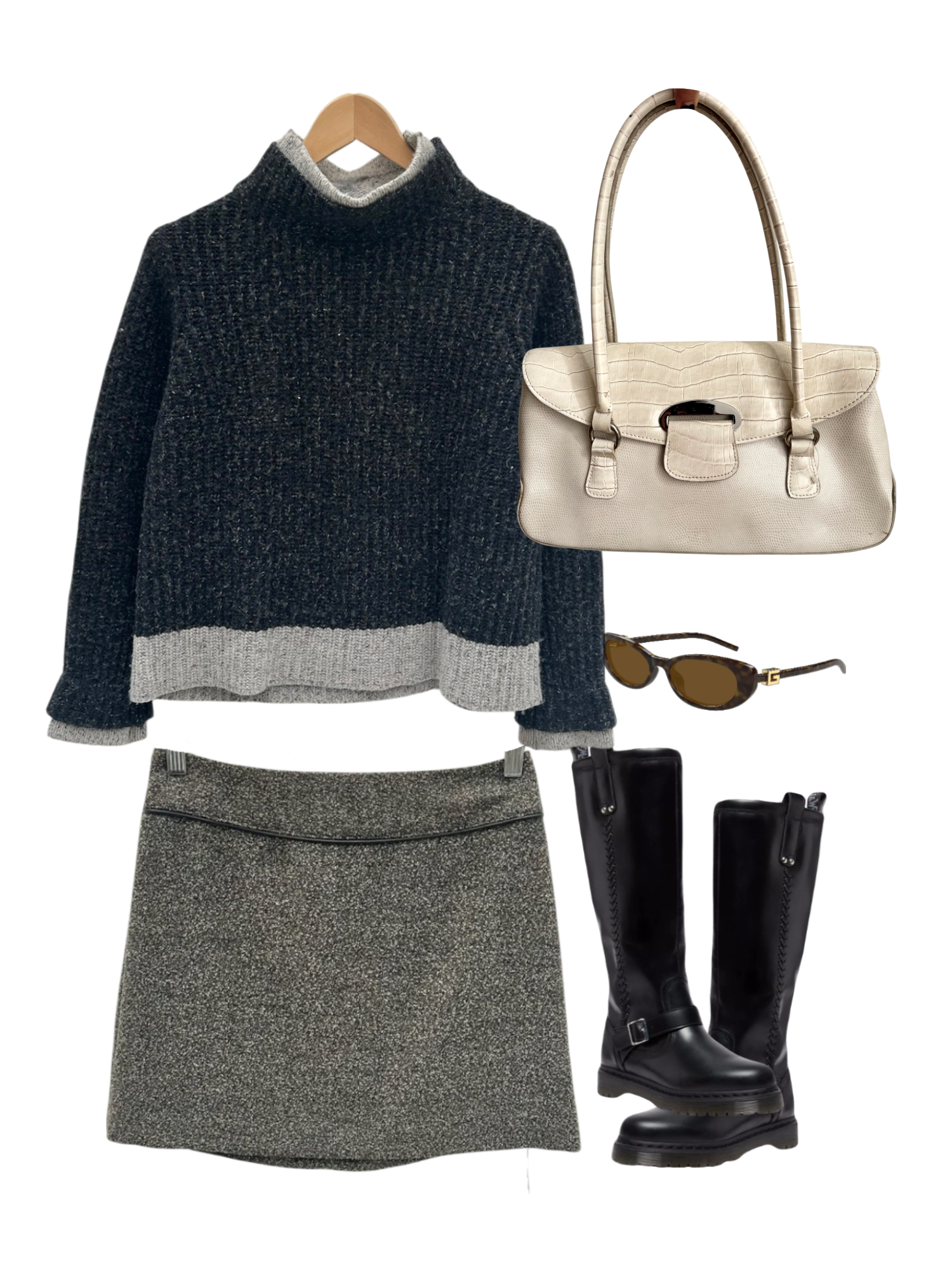 Vintage 90s Charcoal Cozy Contrast Sweater (M)