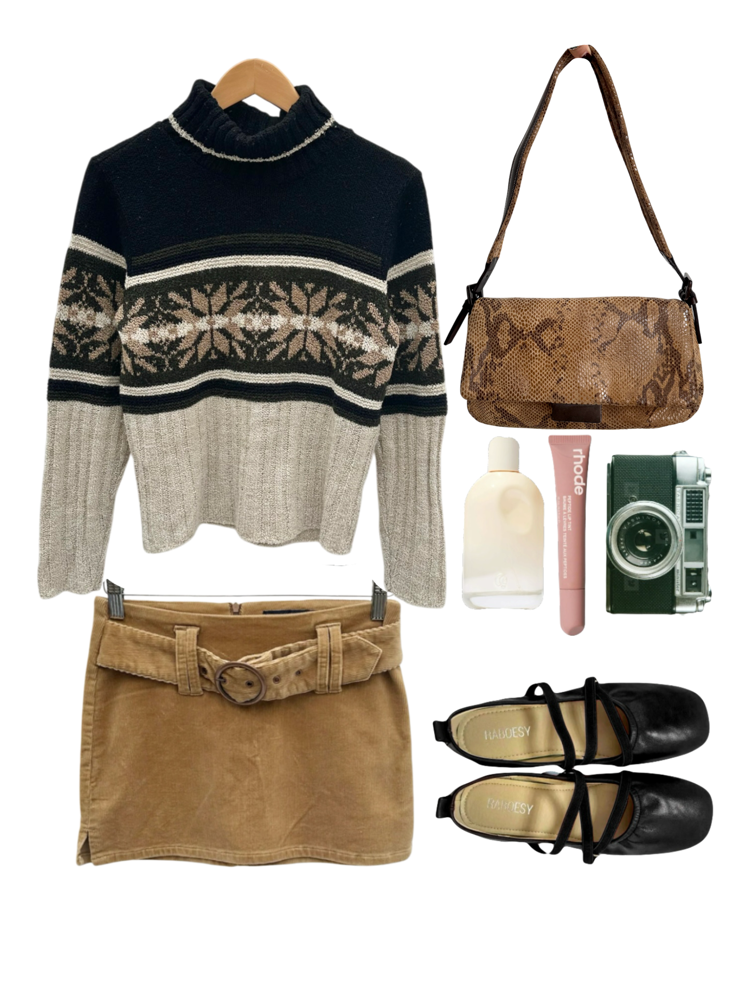 Vintage Y2K Corduroy Colorblock Midi Skirt (S)