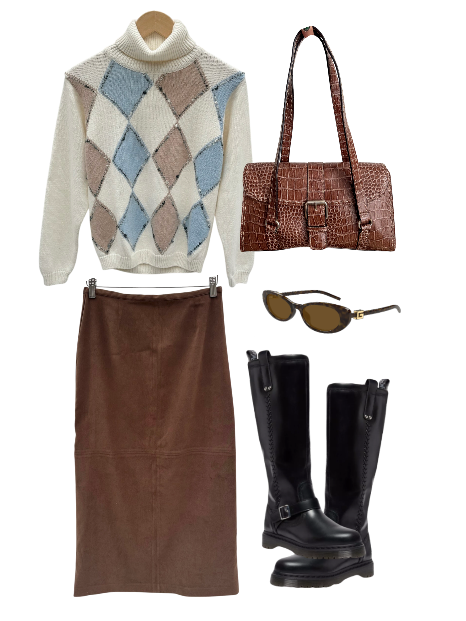 Vintage 90s Retro Argyle Cozy Knit (M)