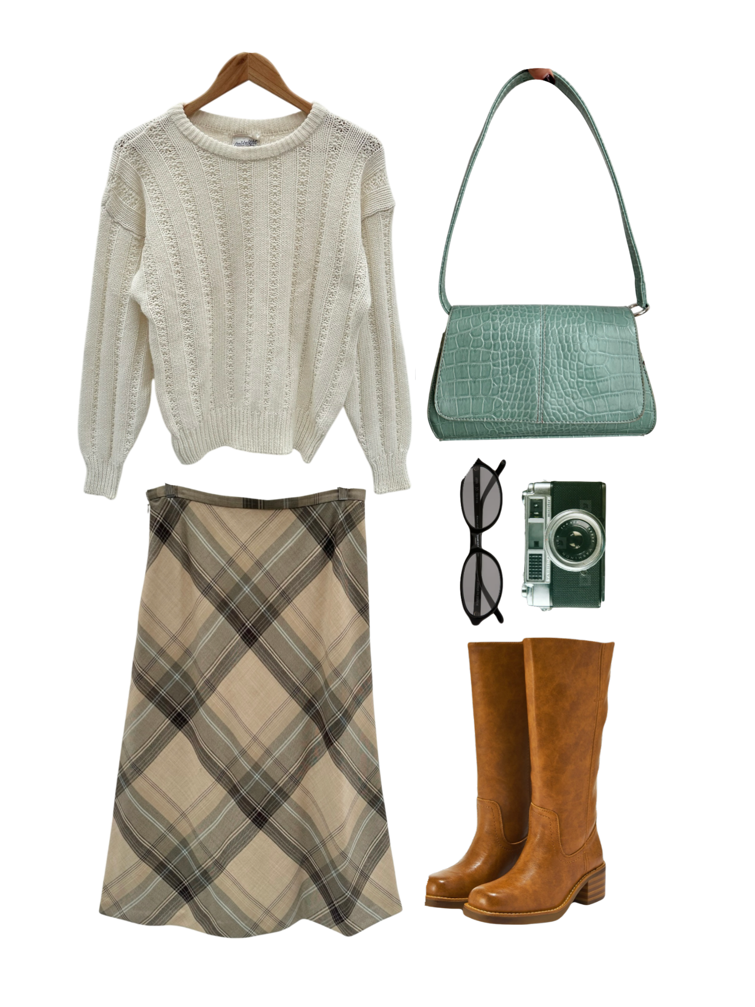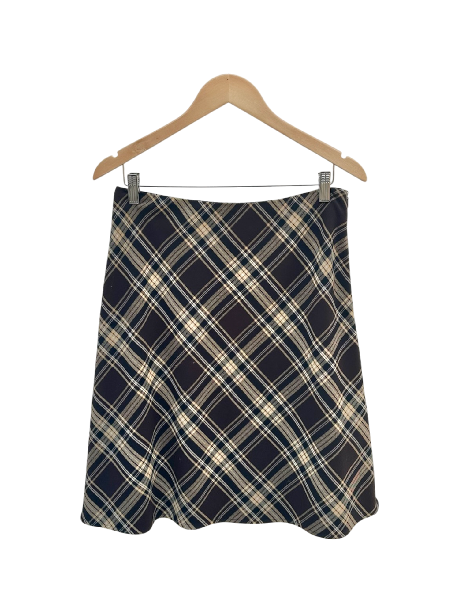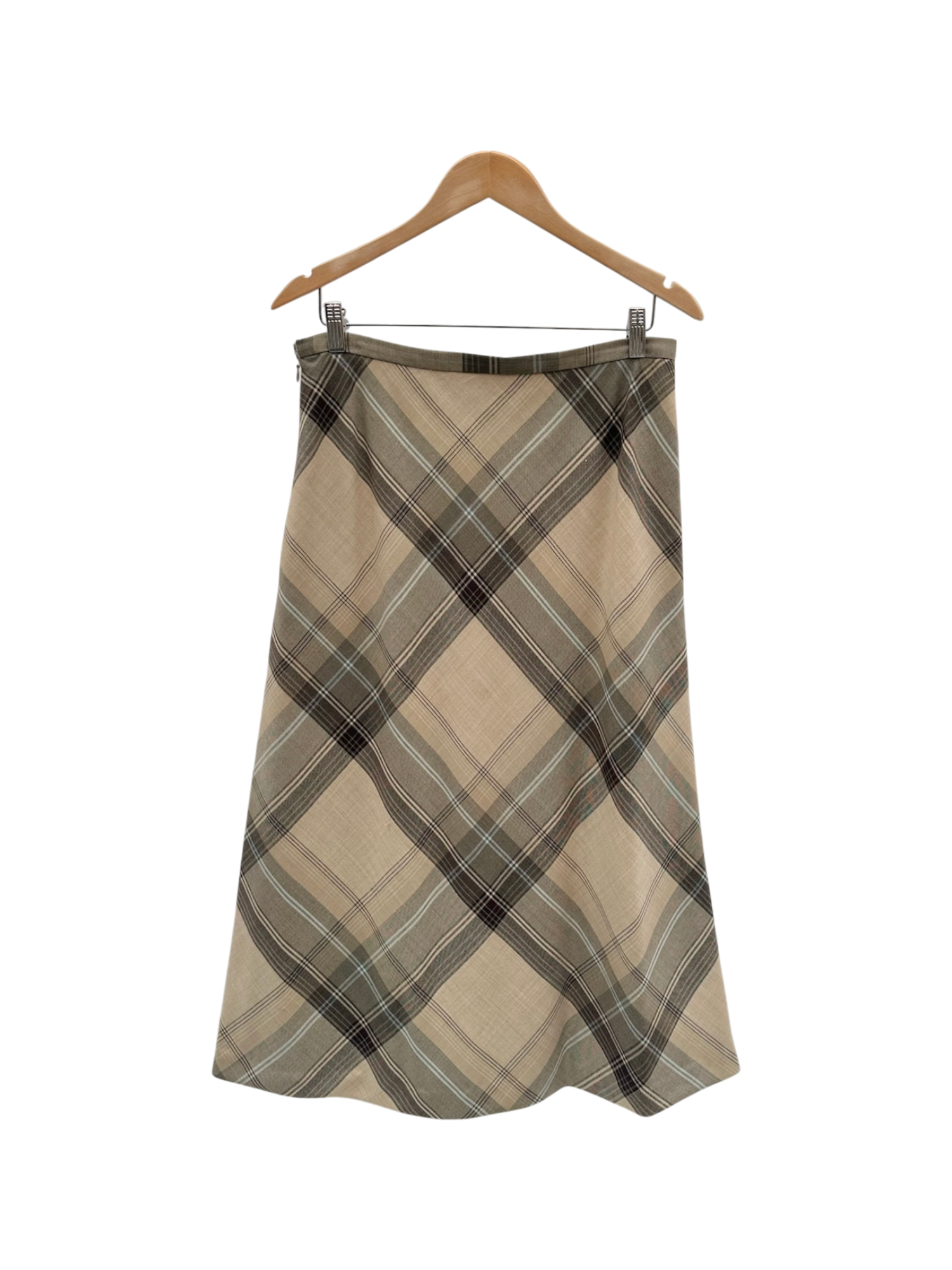 Vintage 70s Neutral Plaid Midi Skirt (M)