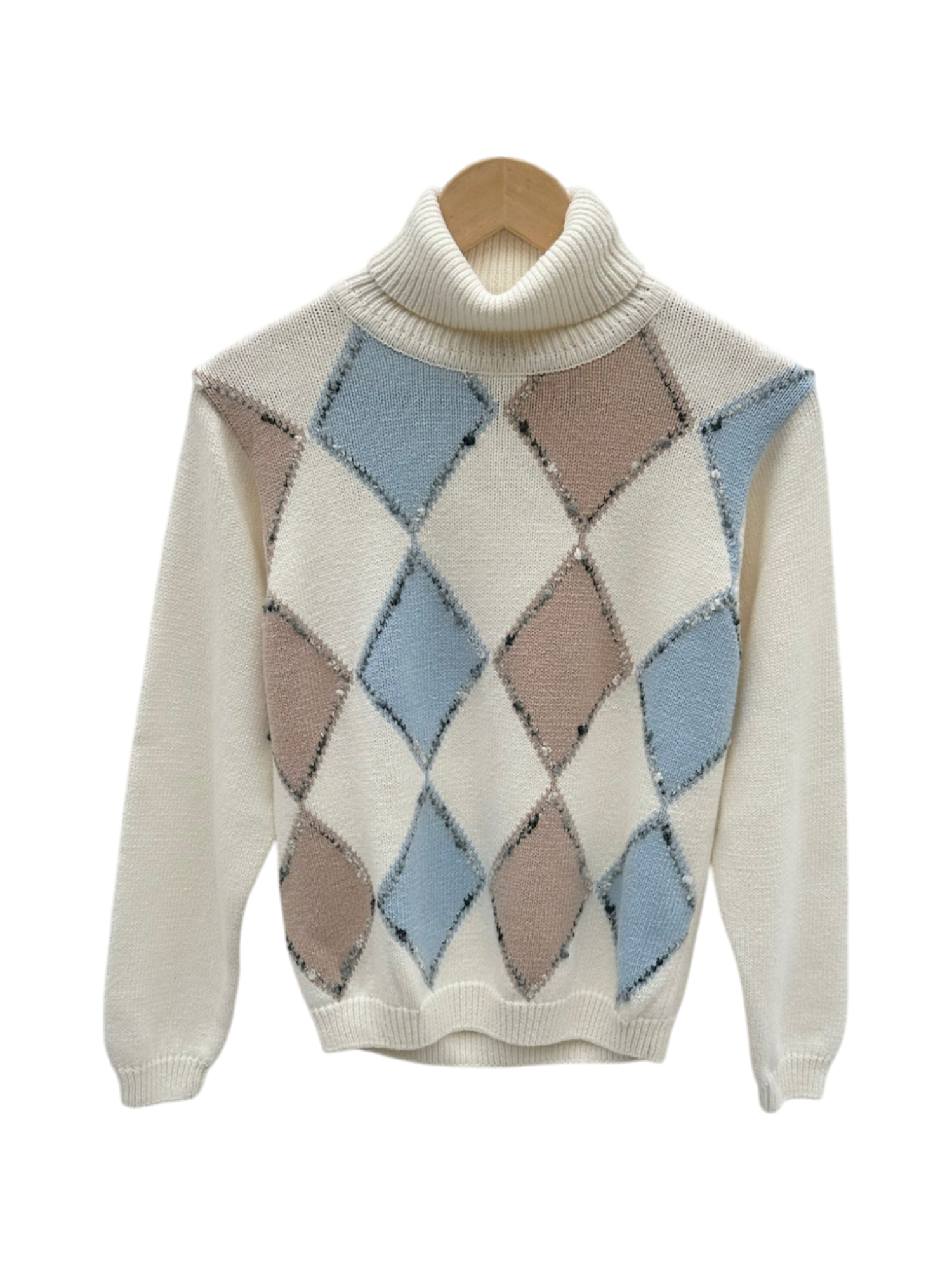 Vintage 90s Pastel Argyle Cotton Turtleneck (S)