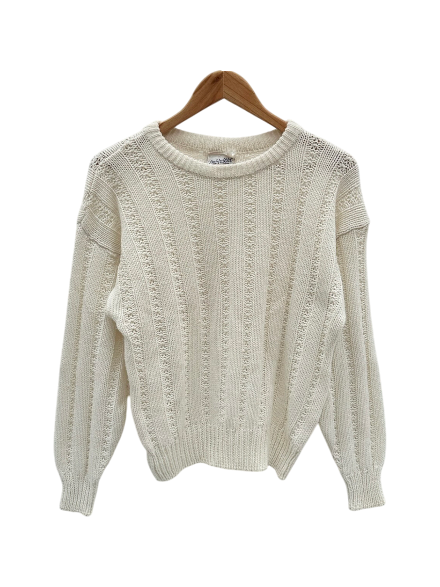 Vintage 80s Cream Textured Cotton Knit Sweater (M)