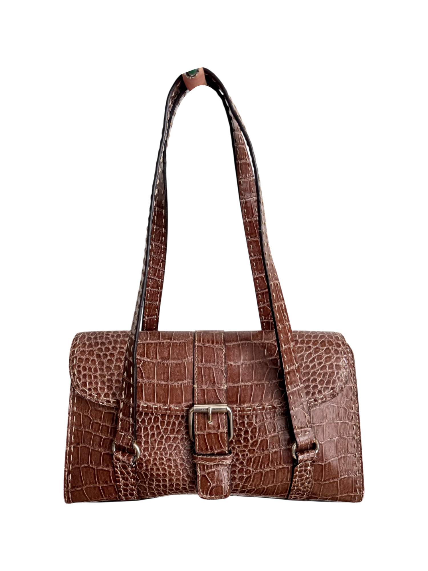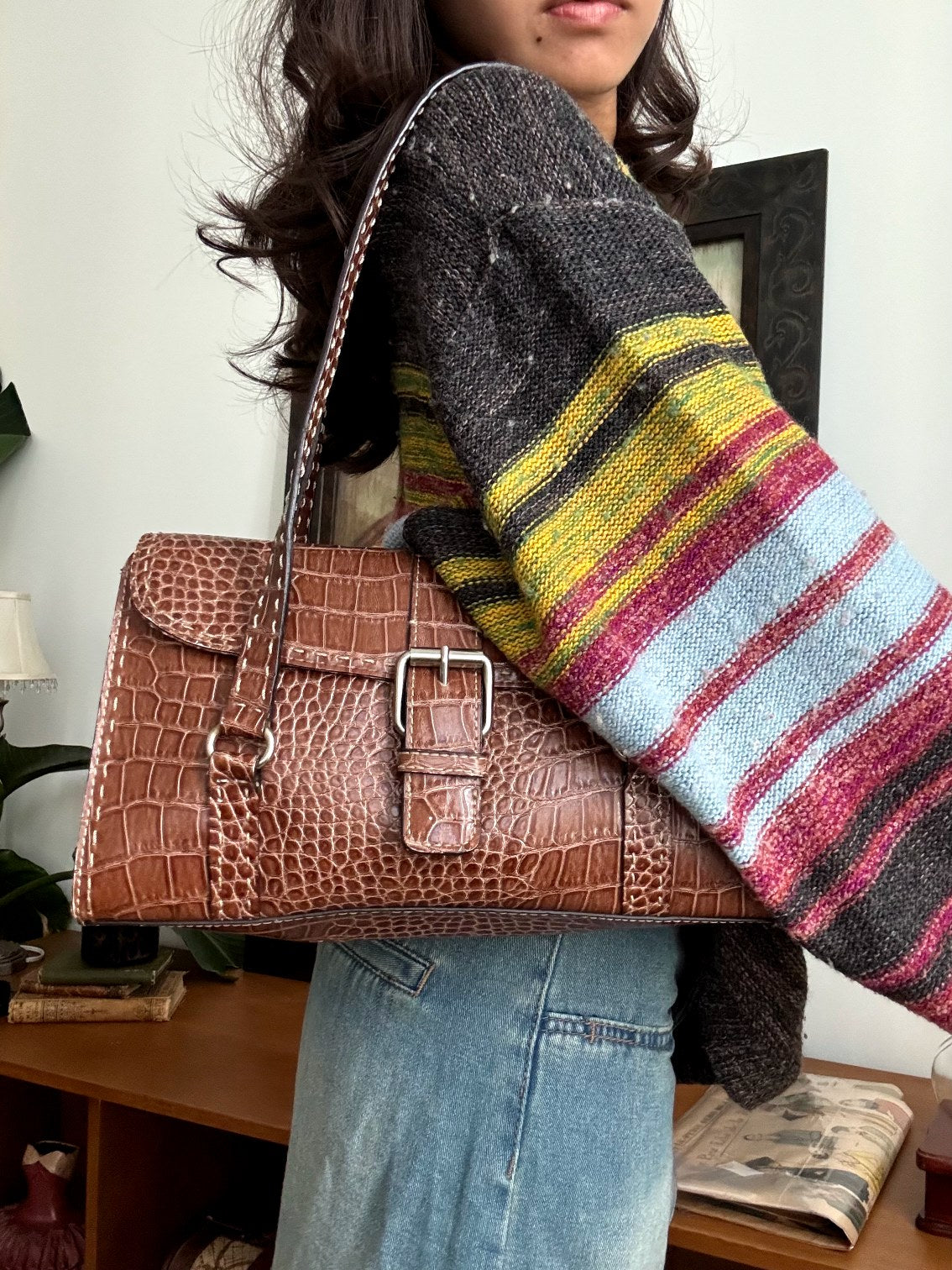 Vintage Y2K Chestnut Croc Buckle Structured Shoulder Bag