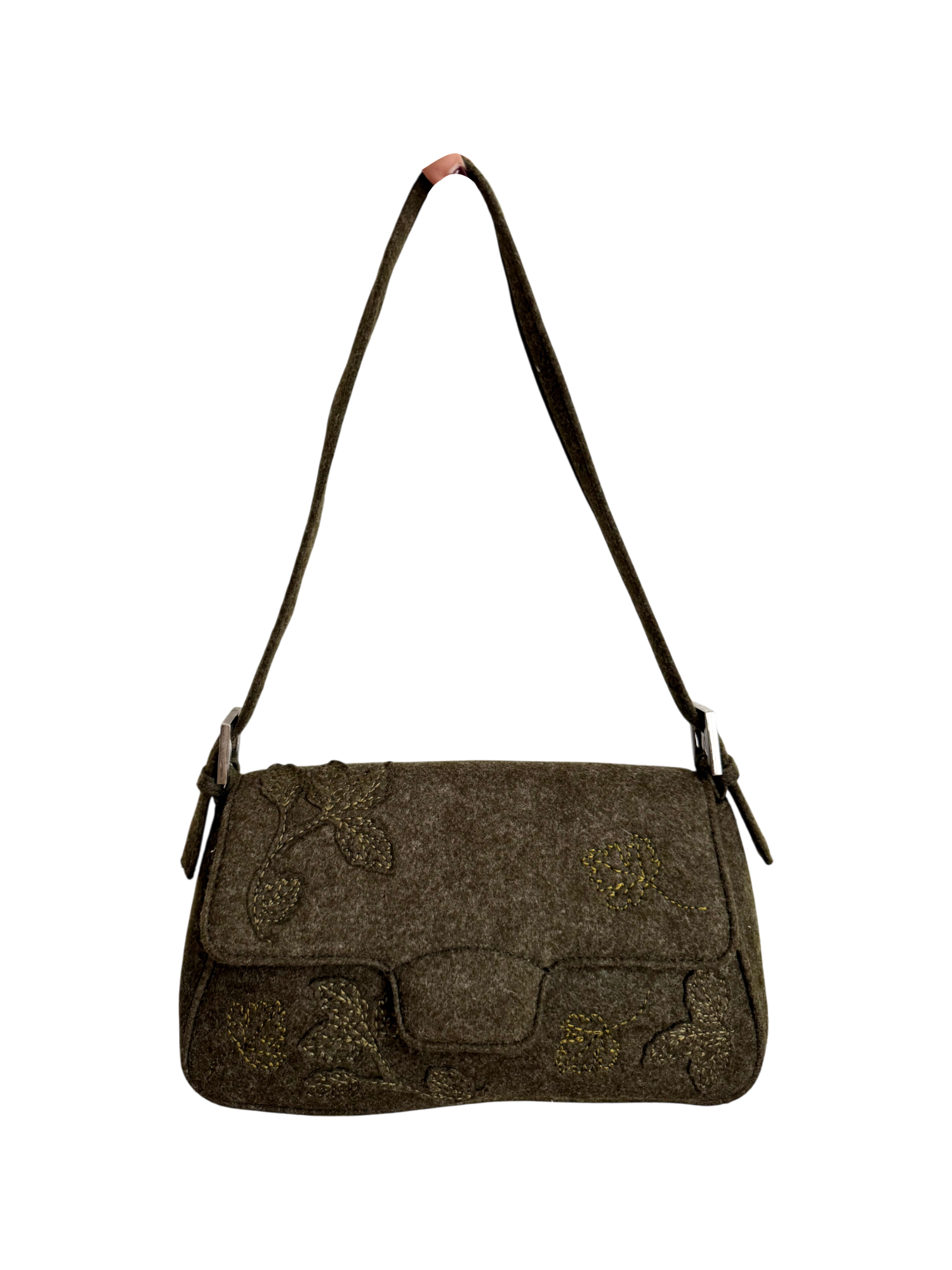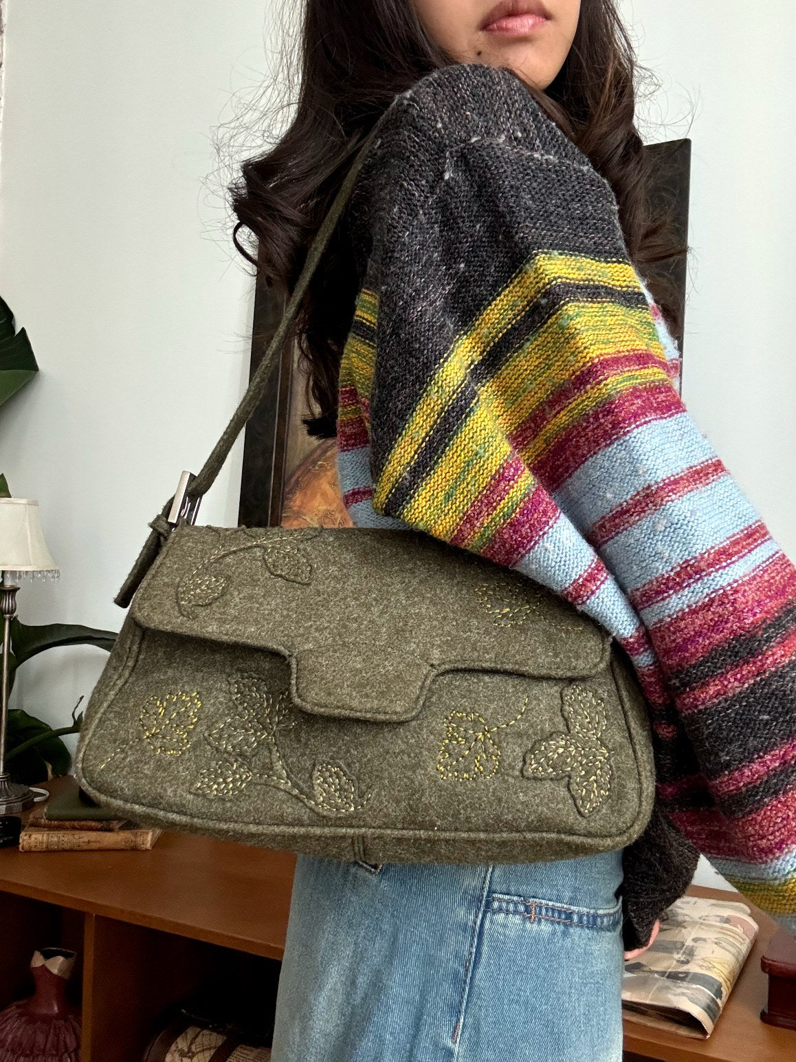 Vintage Y2K Olive Embroidered Shoulder Bag