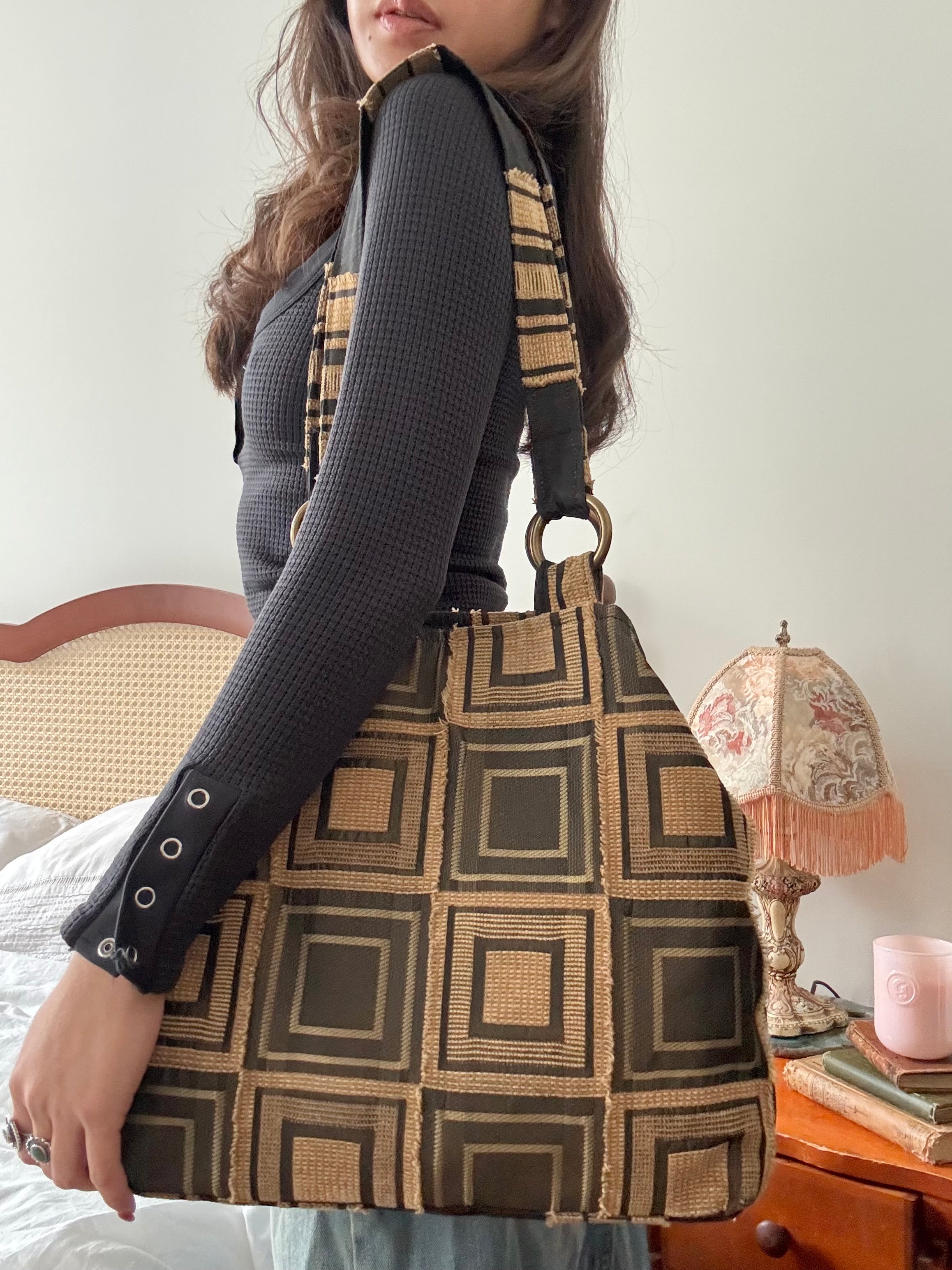 Vintage Y2K Graphic Patchwork Canvas Shoulder Bag