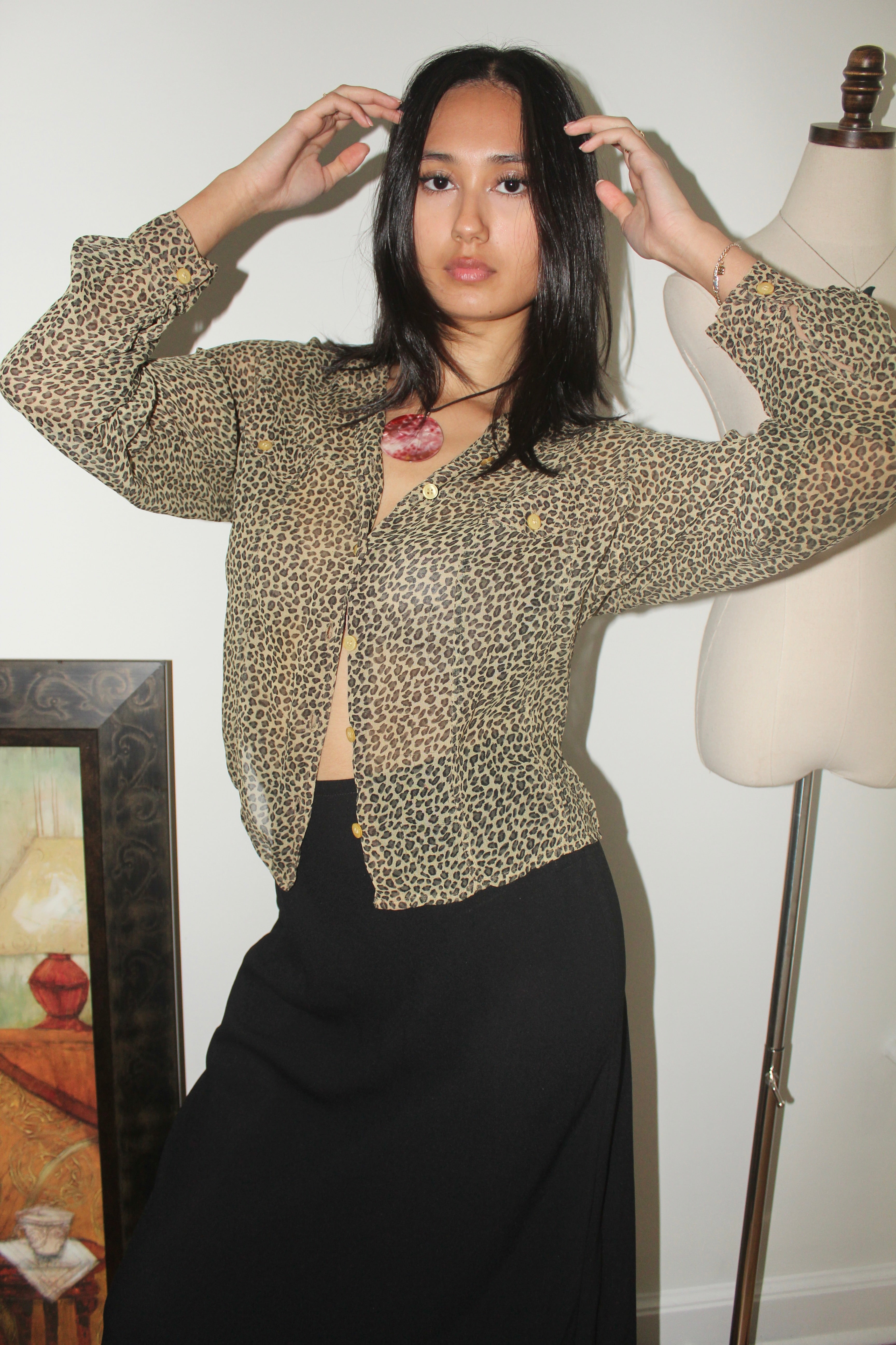 Vintage 90s Sheer Lace Ruffled Blouse (S)