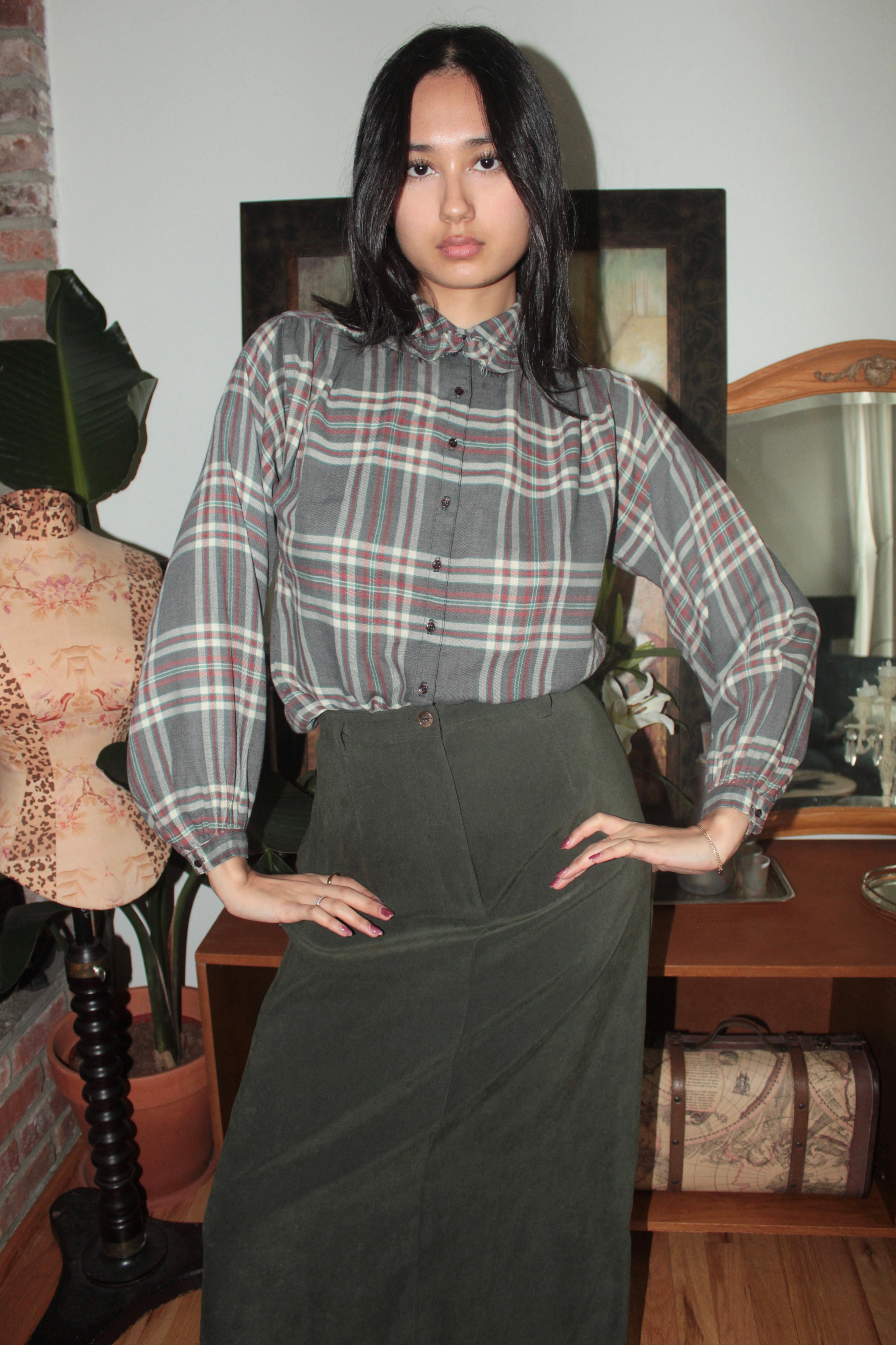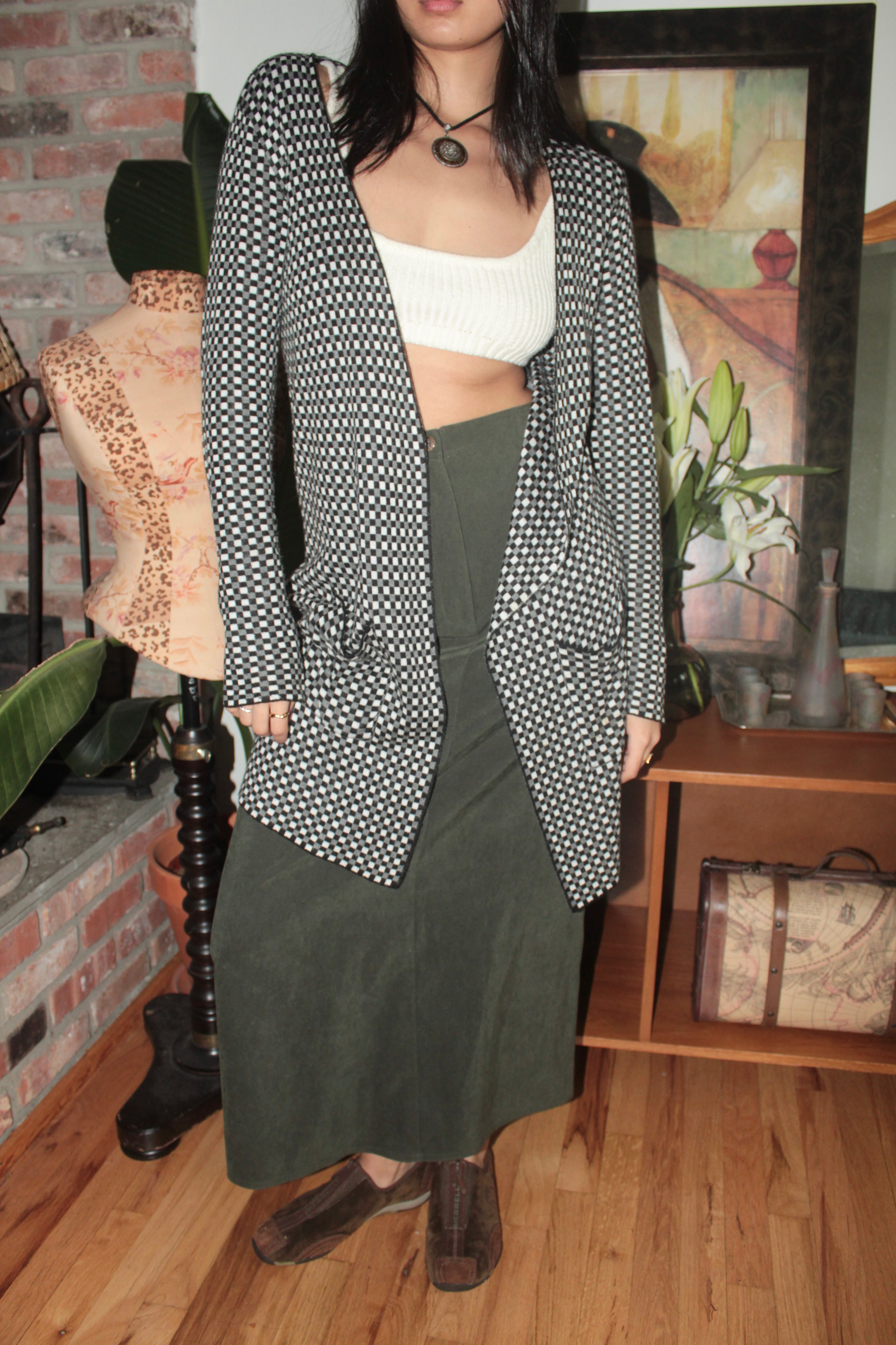 Vintage 90s Black + White Botanical Midi Skirt (S)