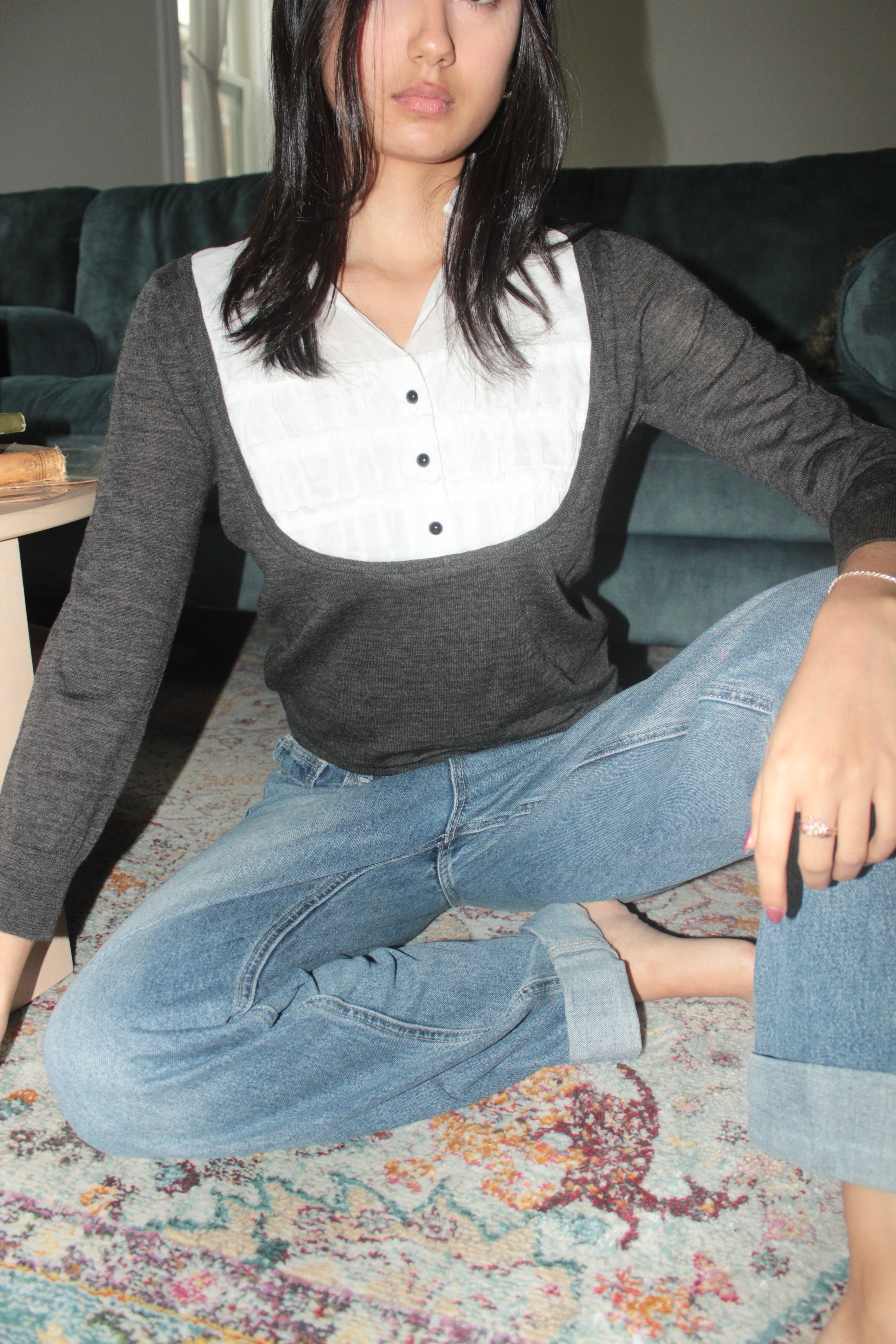 Vintage 2000s Charcoal Mock-Layer Blouse Sweater (S)