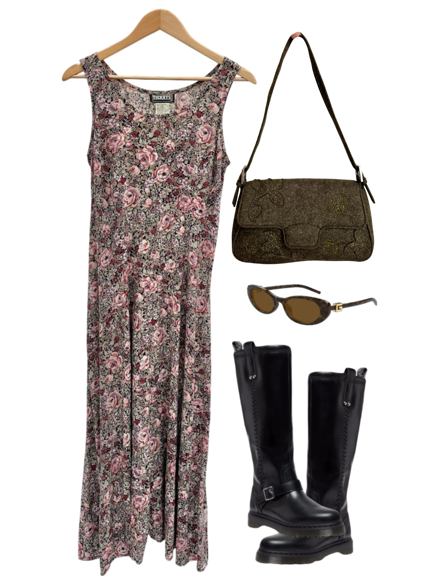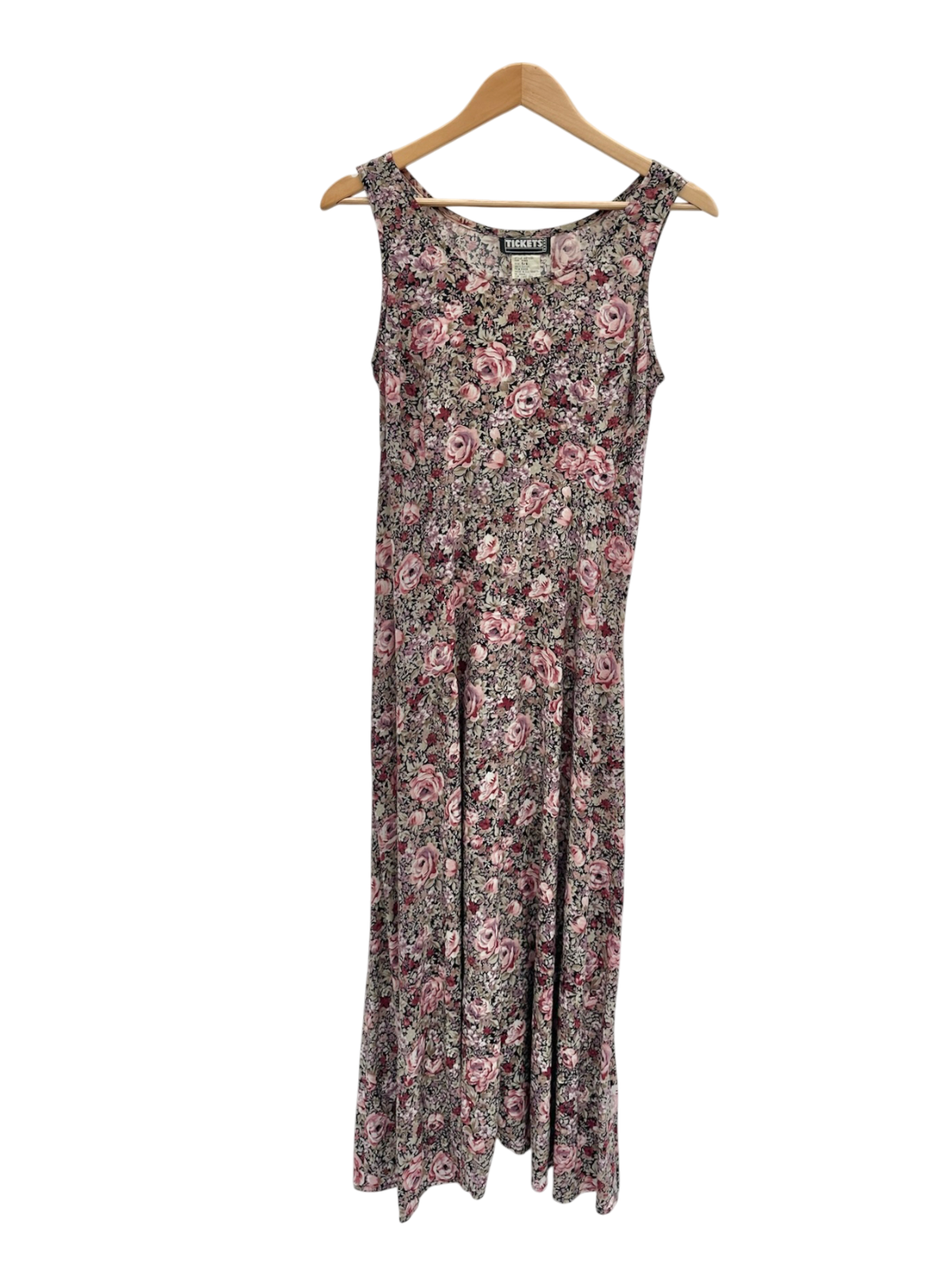 Vintage 90s Dusty Rose Floral Maxi Dress (S/M)