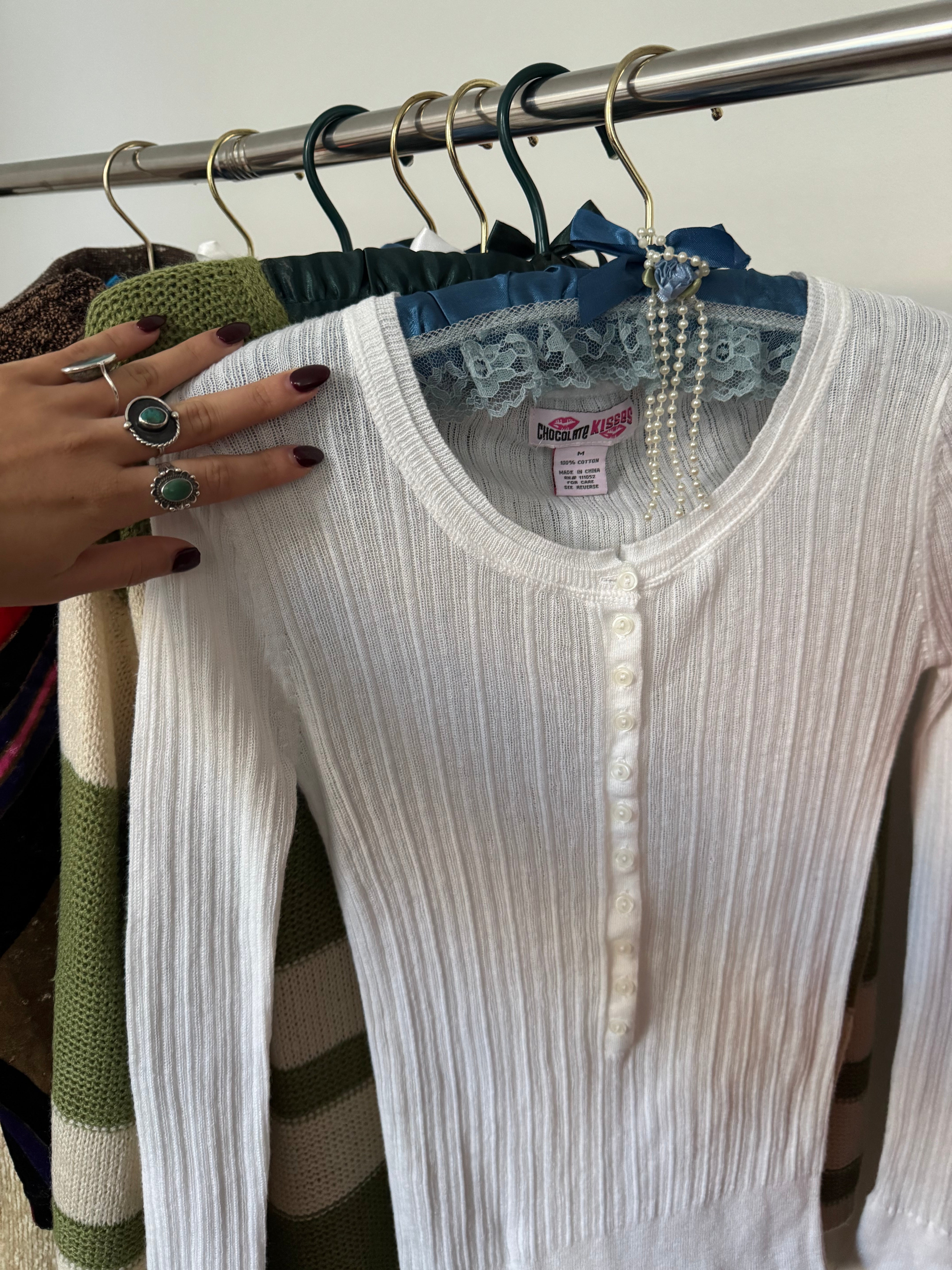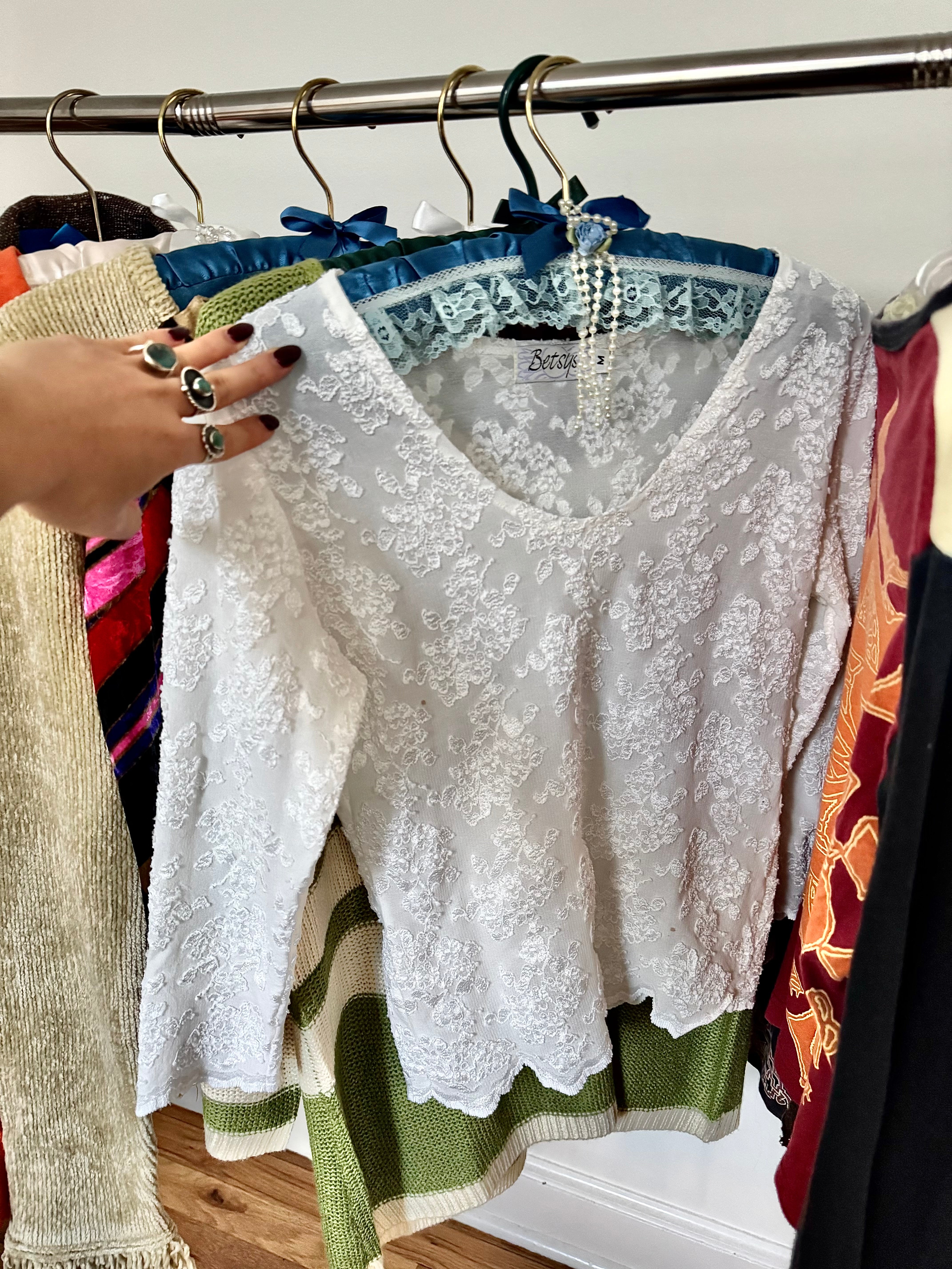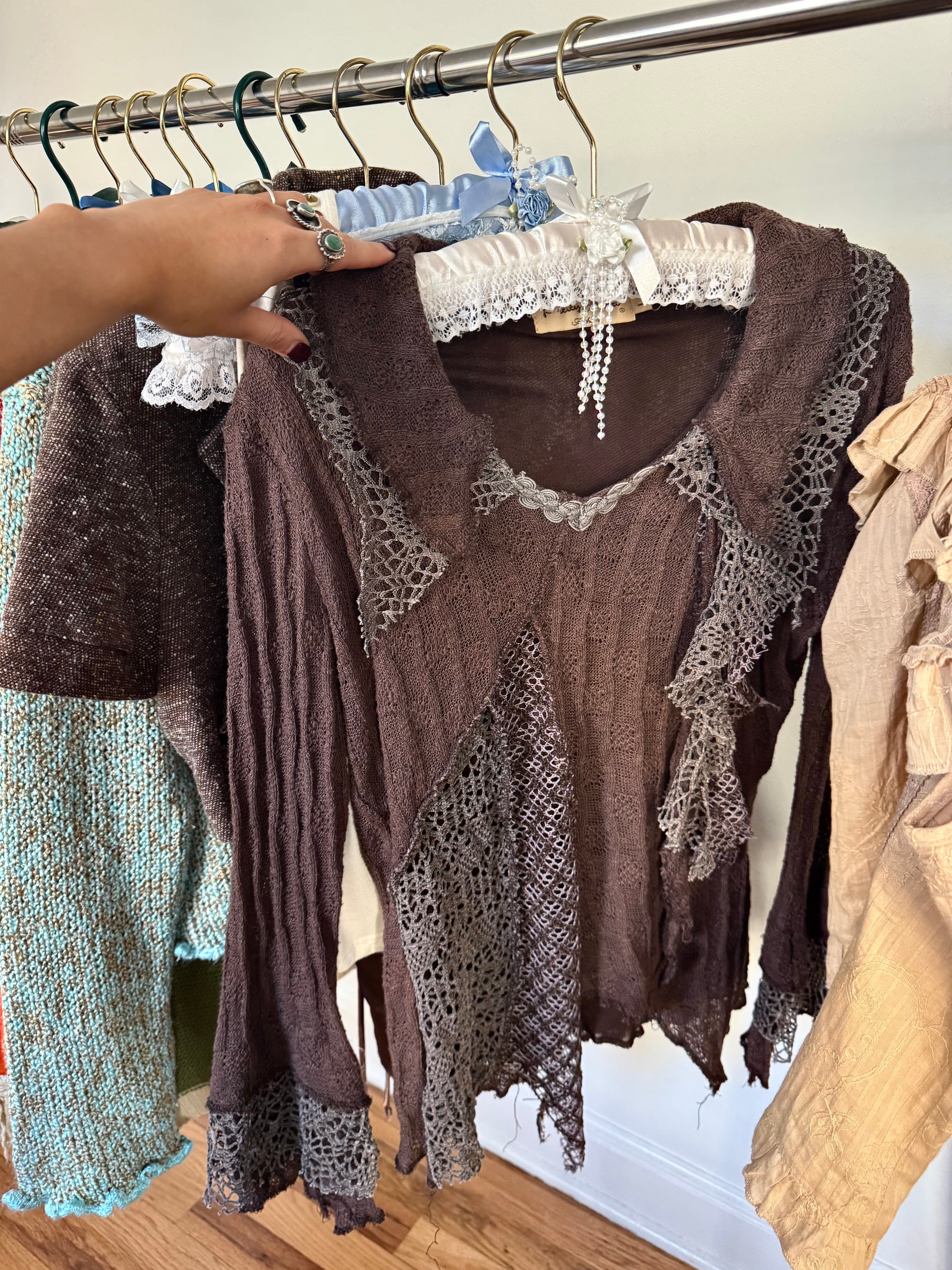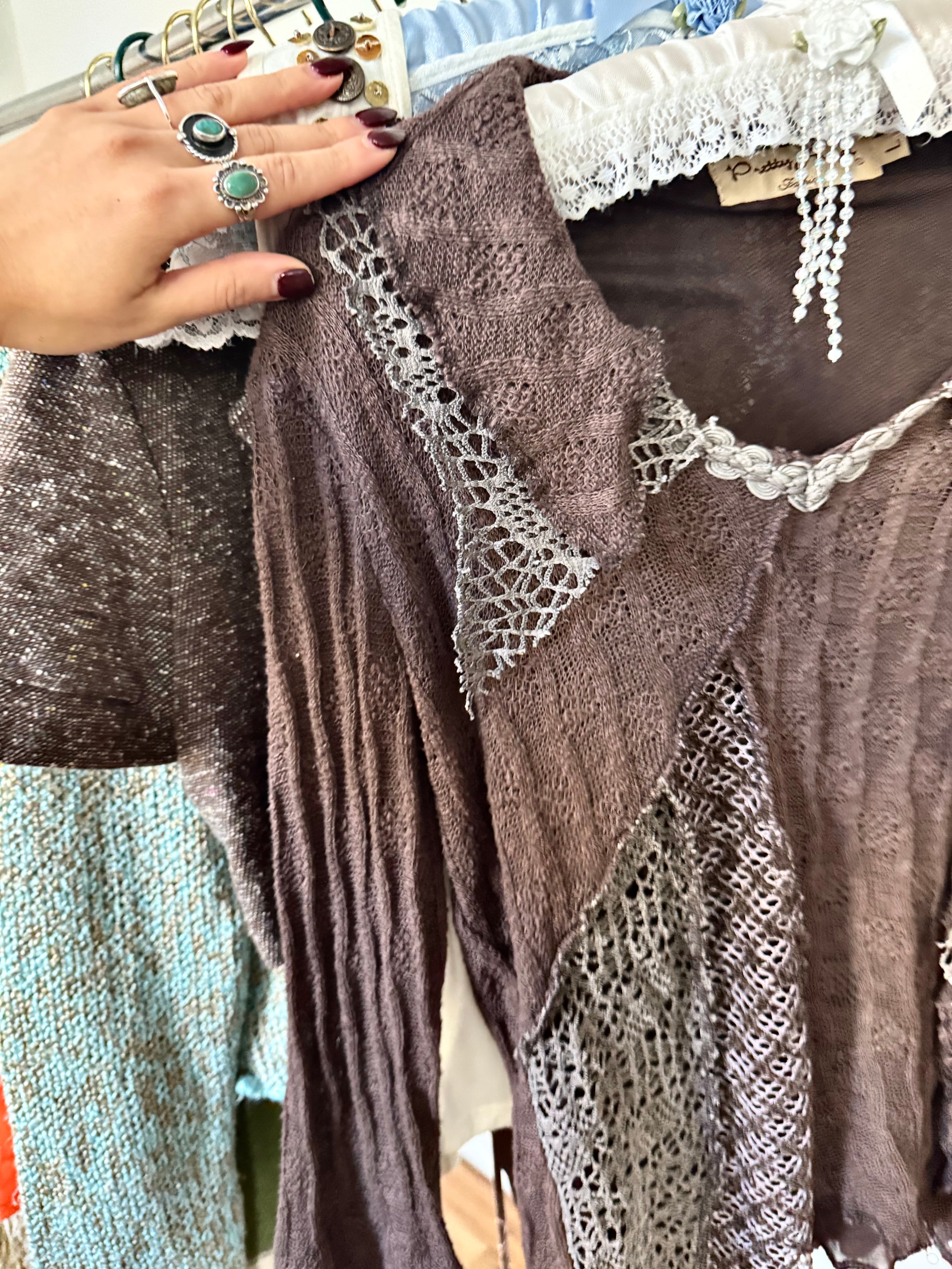 Vintage 2000s Lace Poet Knit Top- Sourced in Paris (M)