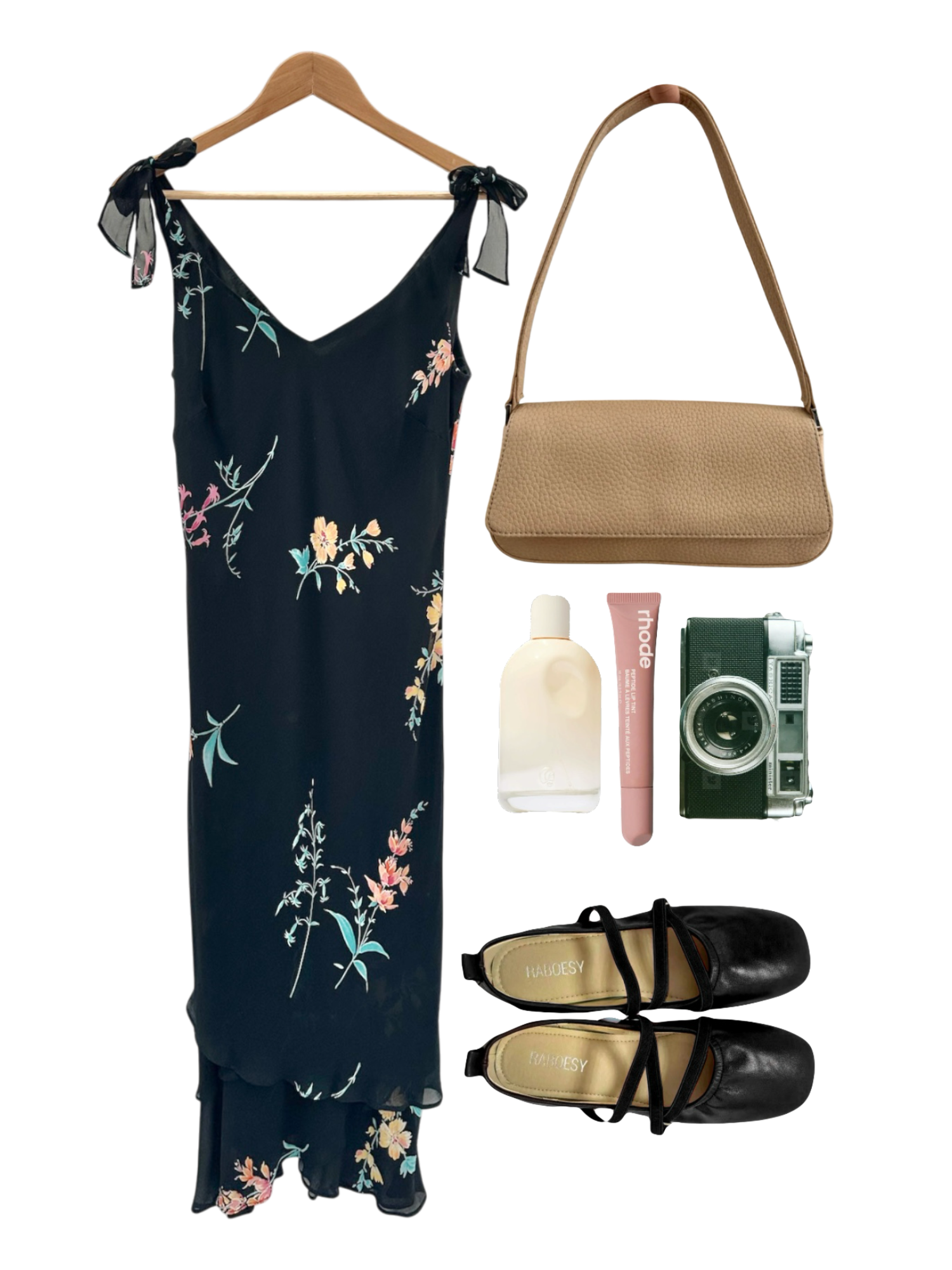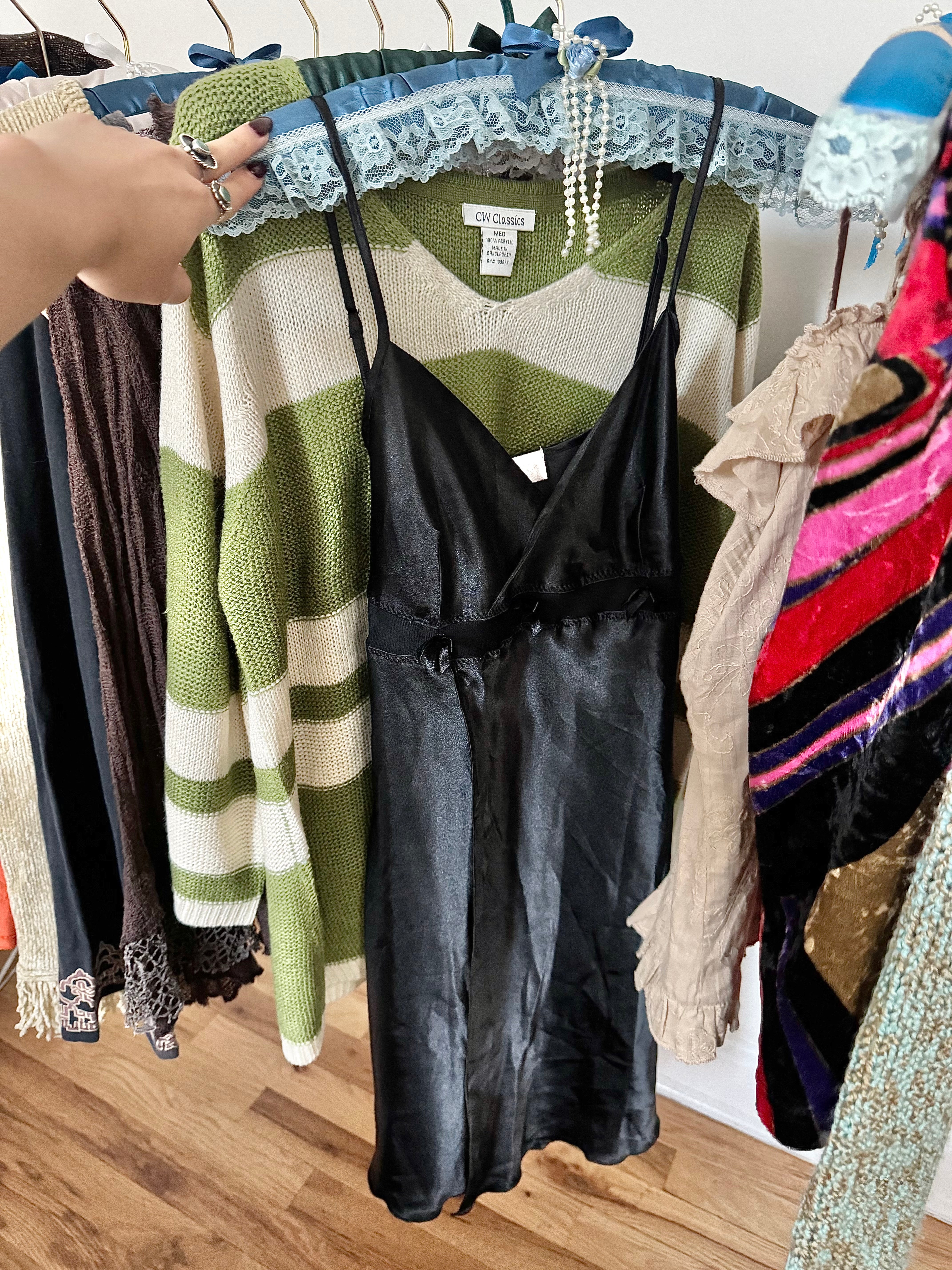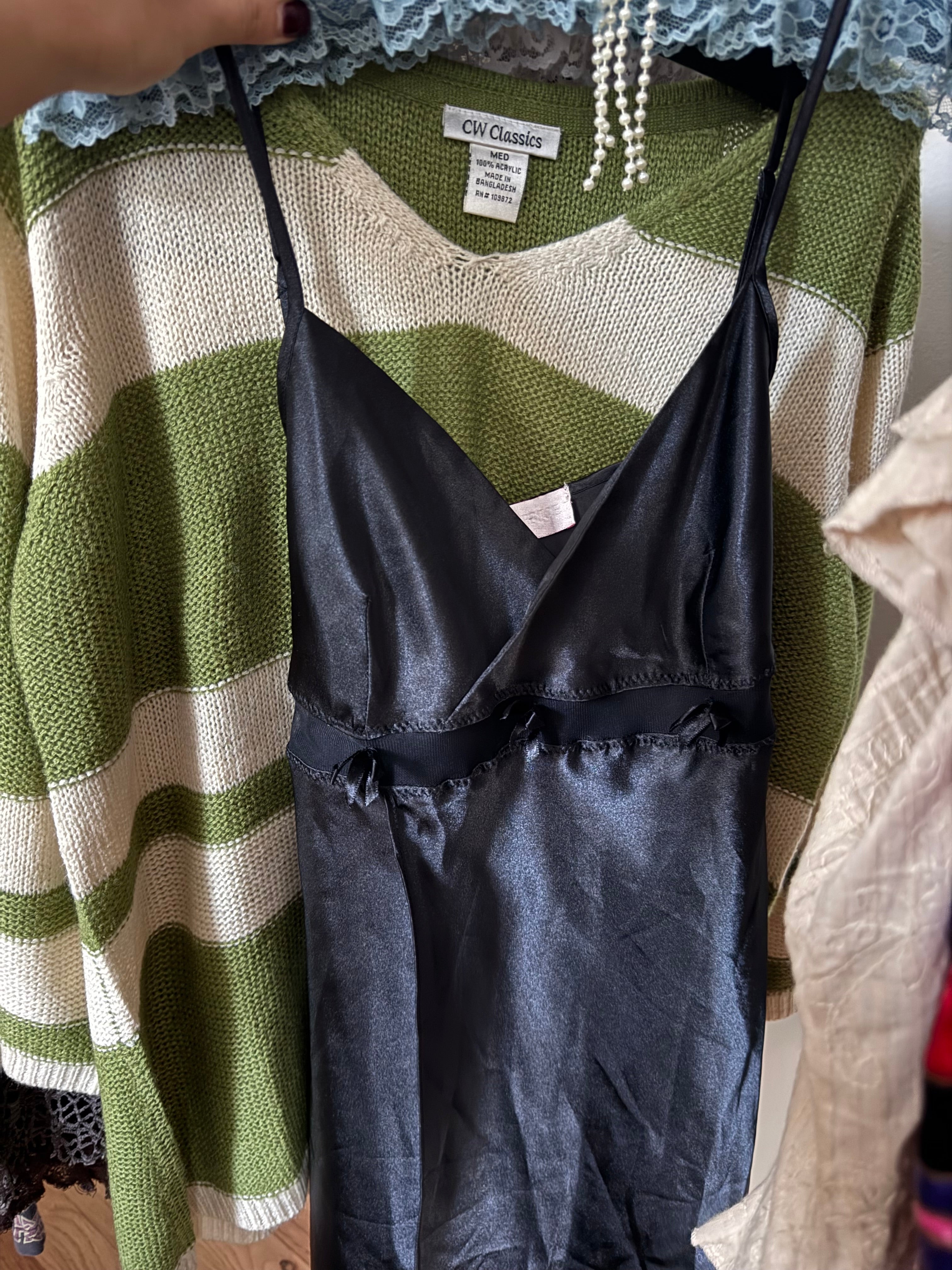 Vintage 90s Satin Black Tie Slip Dress- Sourced in Paris (S)
