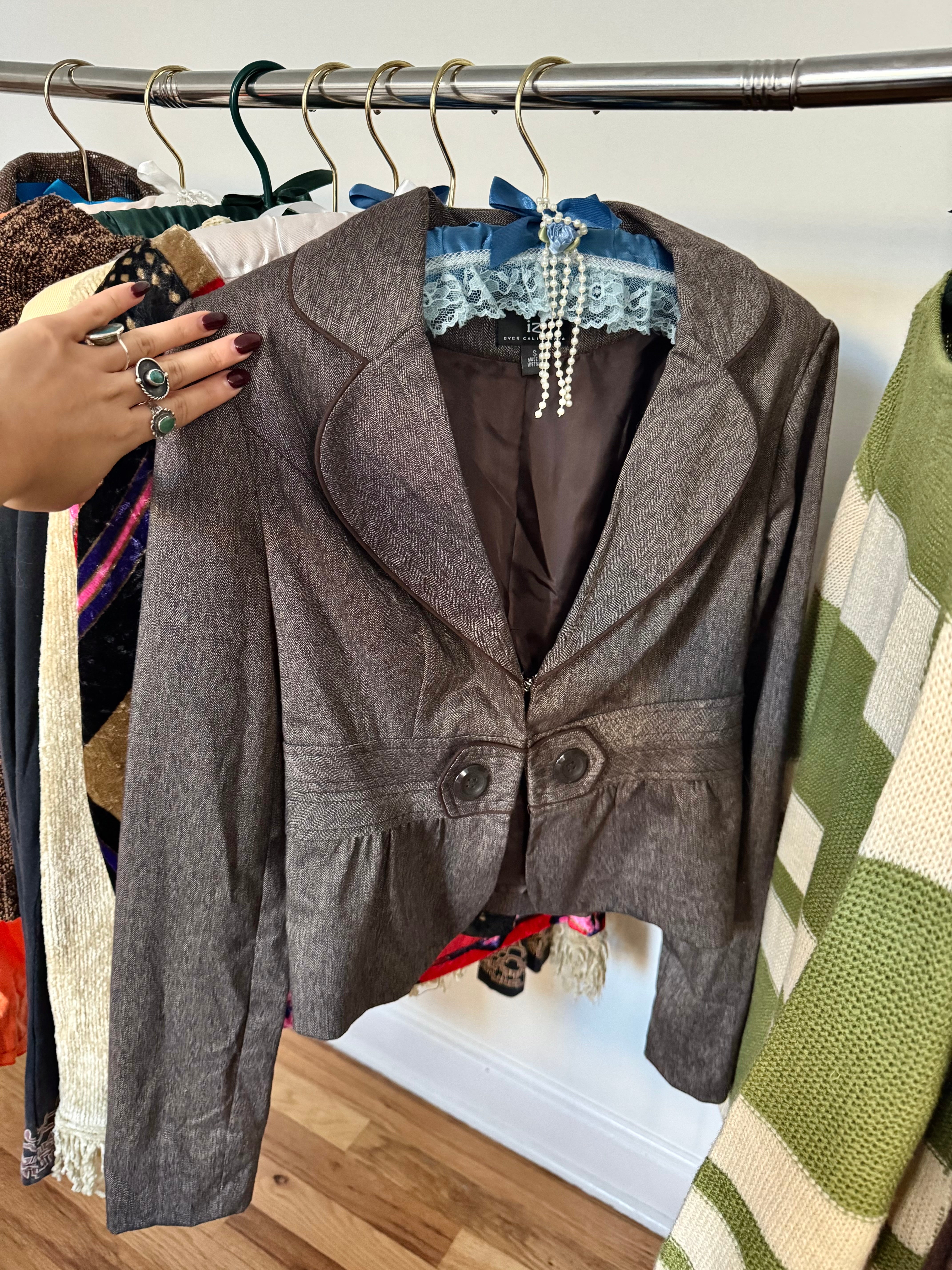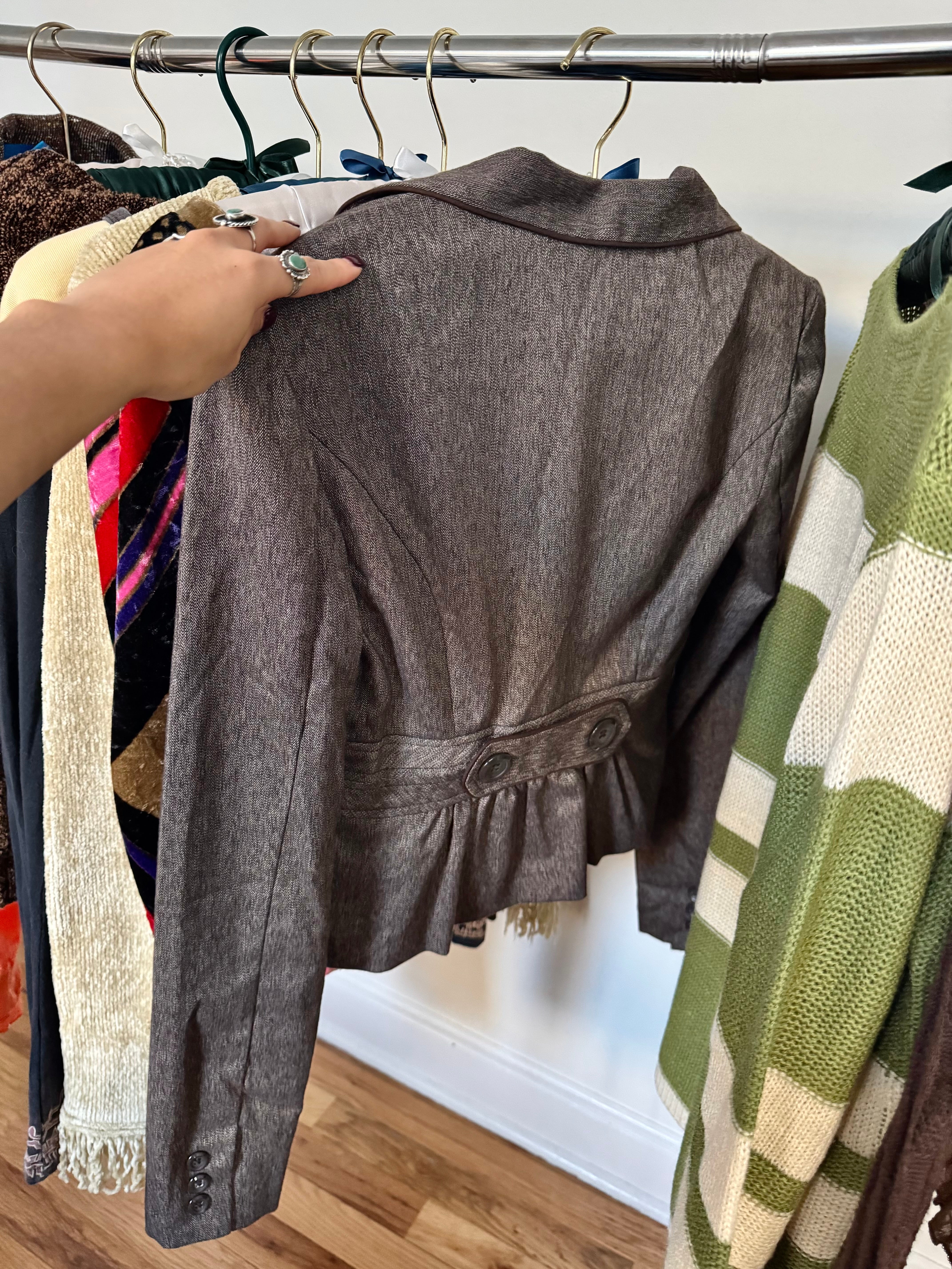 Vintage 90s Retro Brown Cropped Blazer (S)