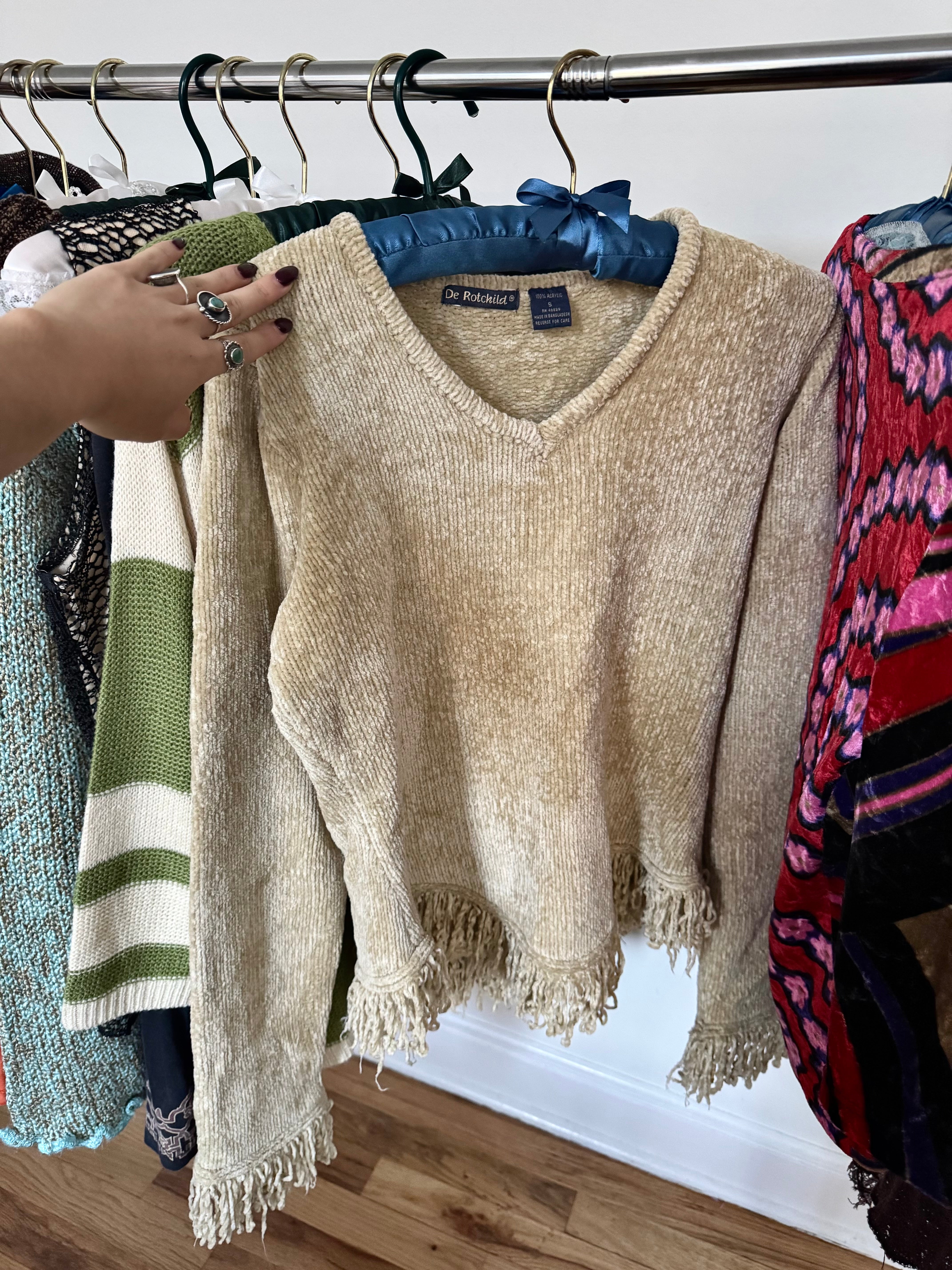 Vintage 90s Oatmeal Fringe Knit Sweater (S/M)