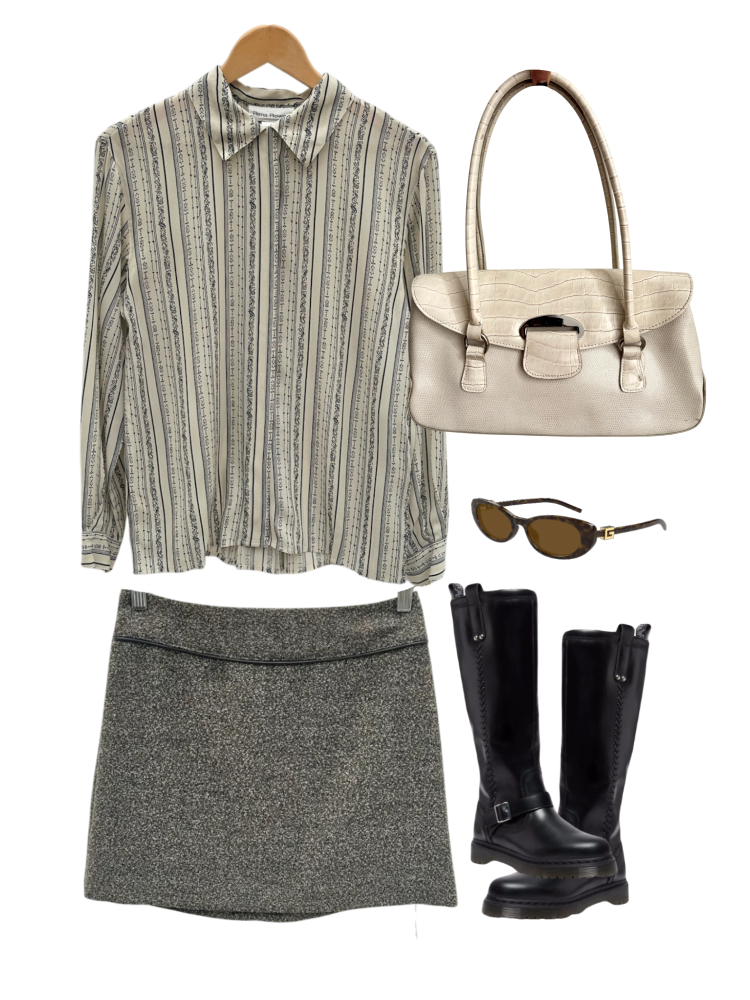 Vintage 70s Neutral Plaid Midi Skirt (M)