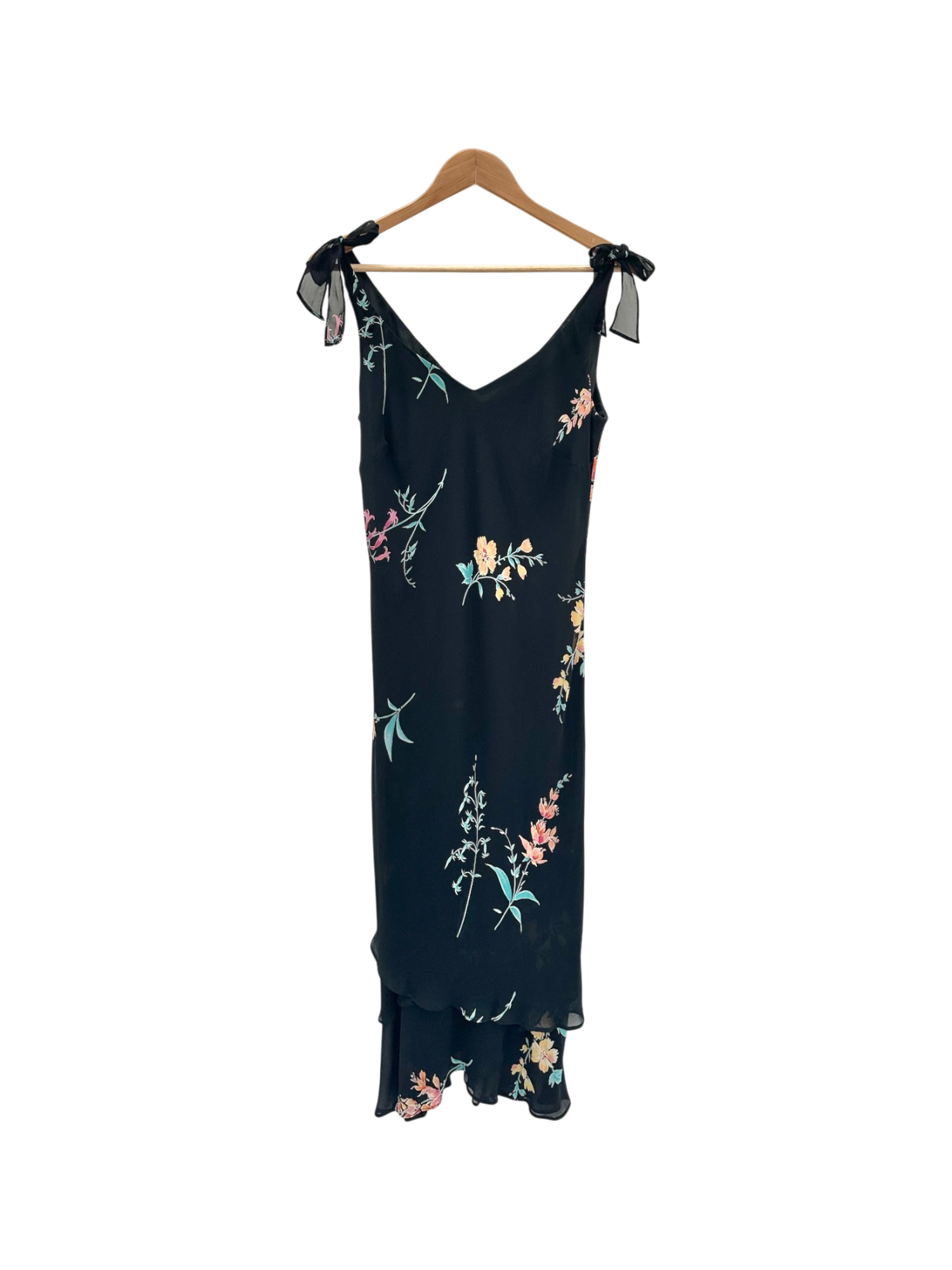 Vintage 90s Dainty Tie Floral Midi Dress (M)