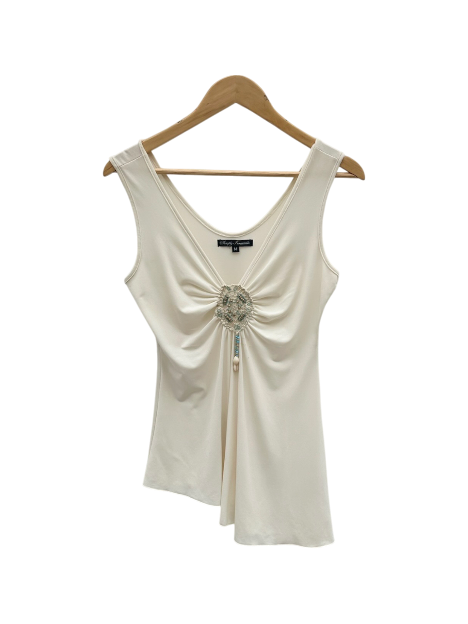 Vintage 2000s Cream Beaded Rosette Tank (M)