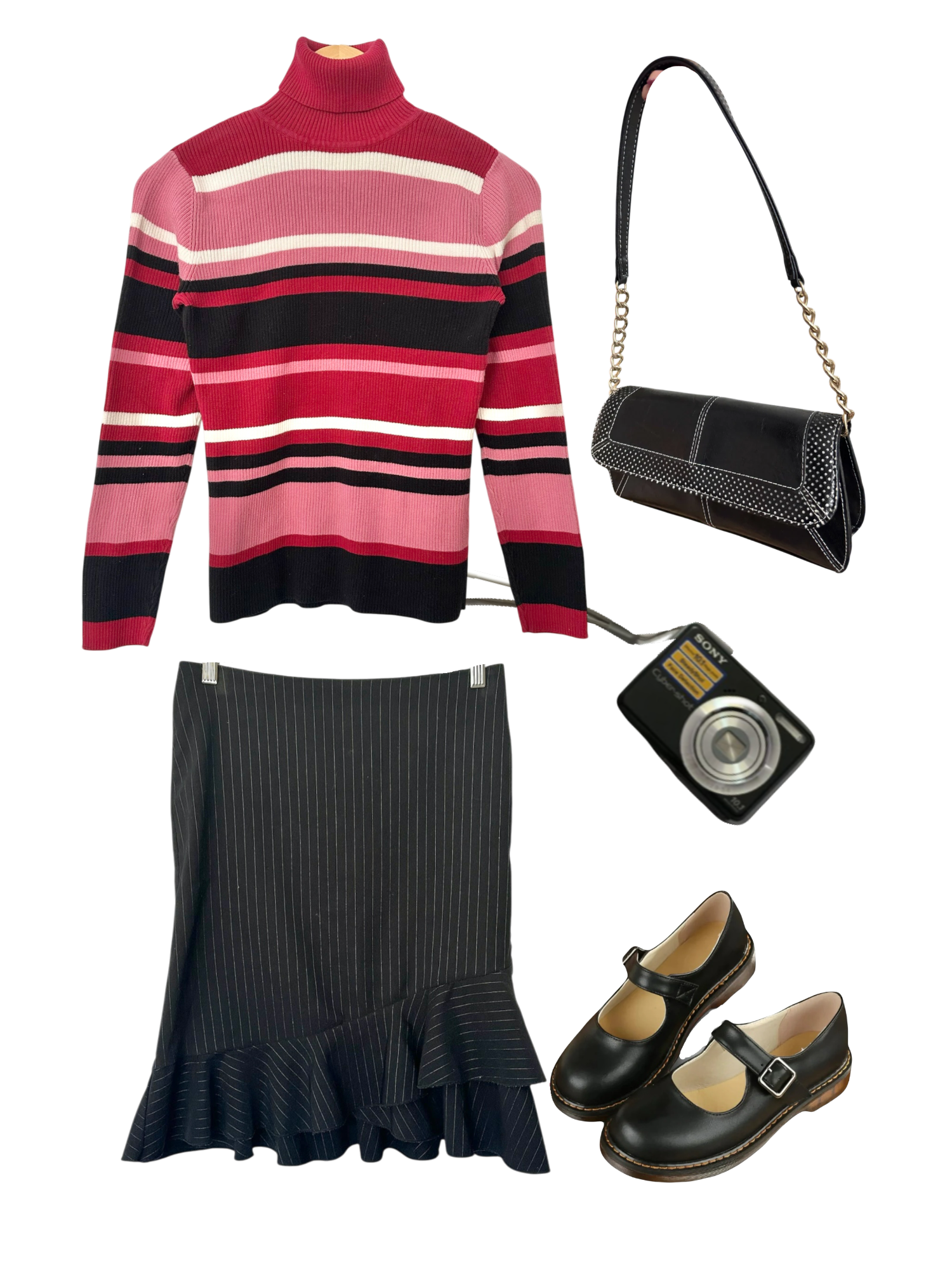 Vintage Y2K Pink Stripe Ribbed Turtleneck (S/M)