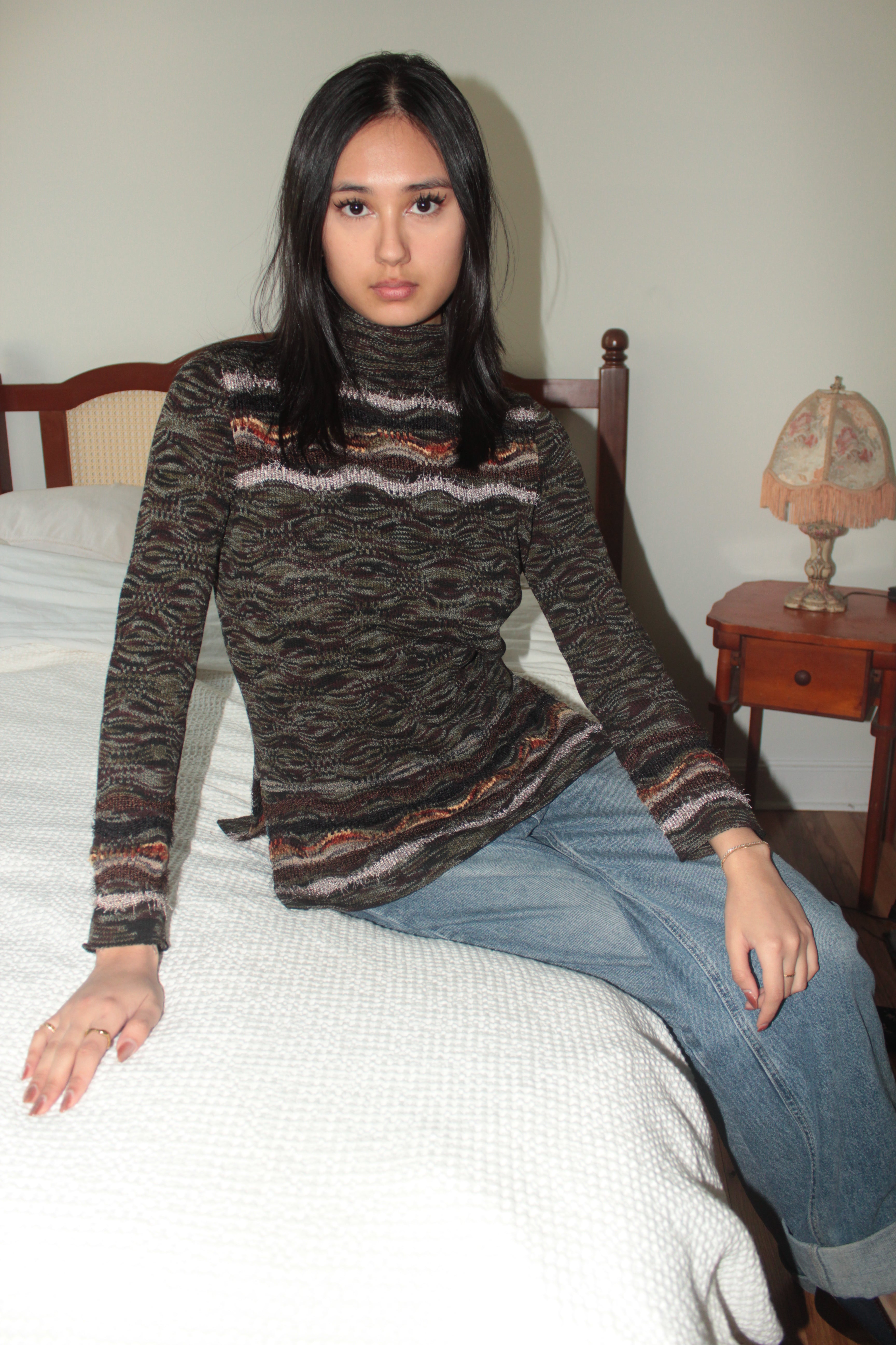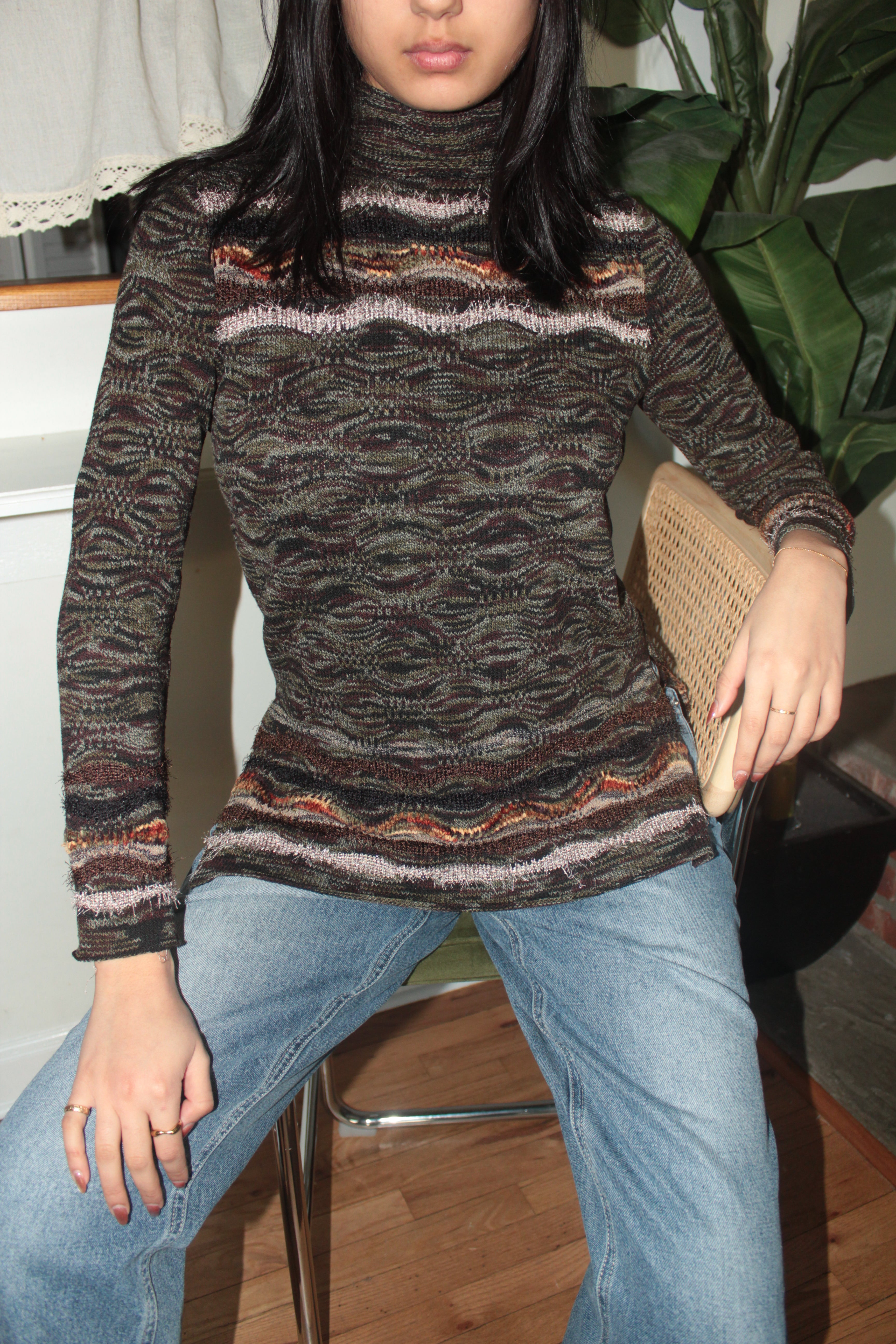 Vintage 90s Earthtone Wave Turtleneck Knit (S/M)