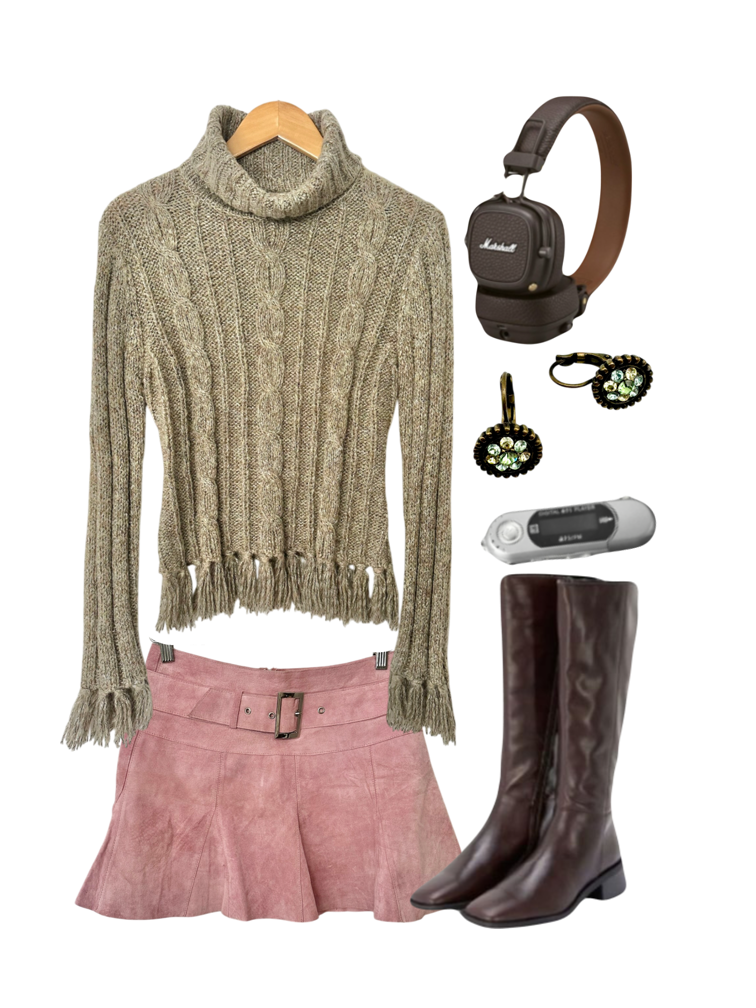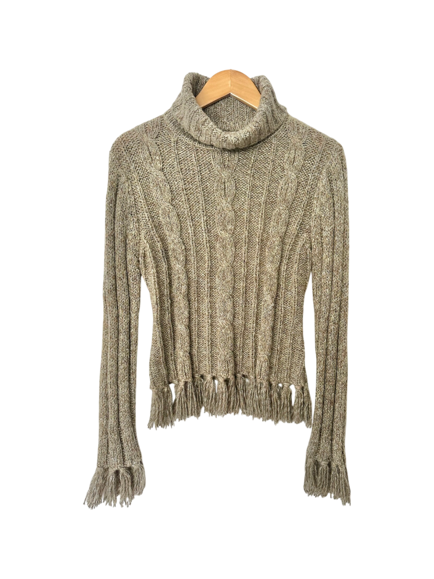 Vintage 90s Cable Knit Fringe Turtleneck (M)