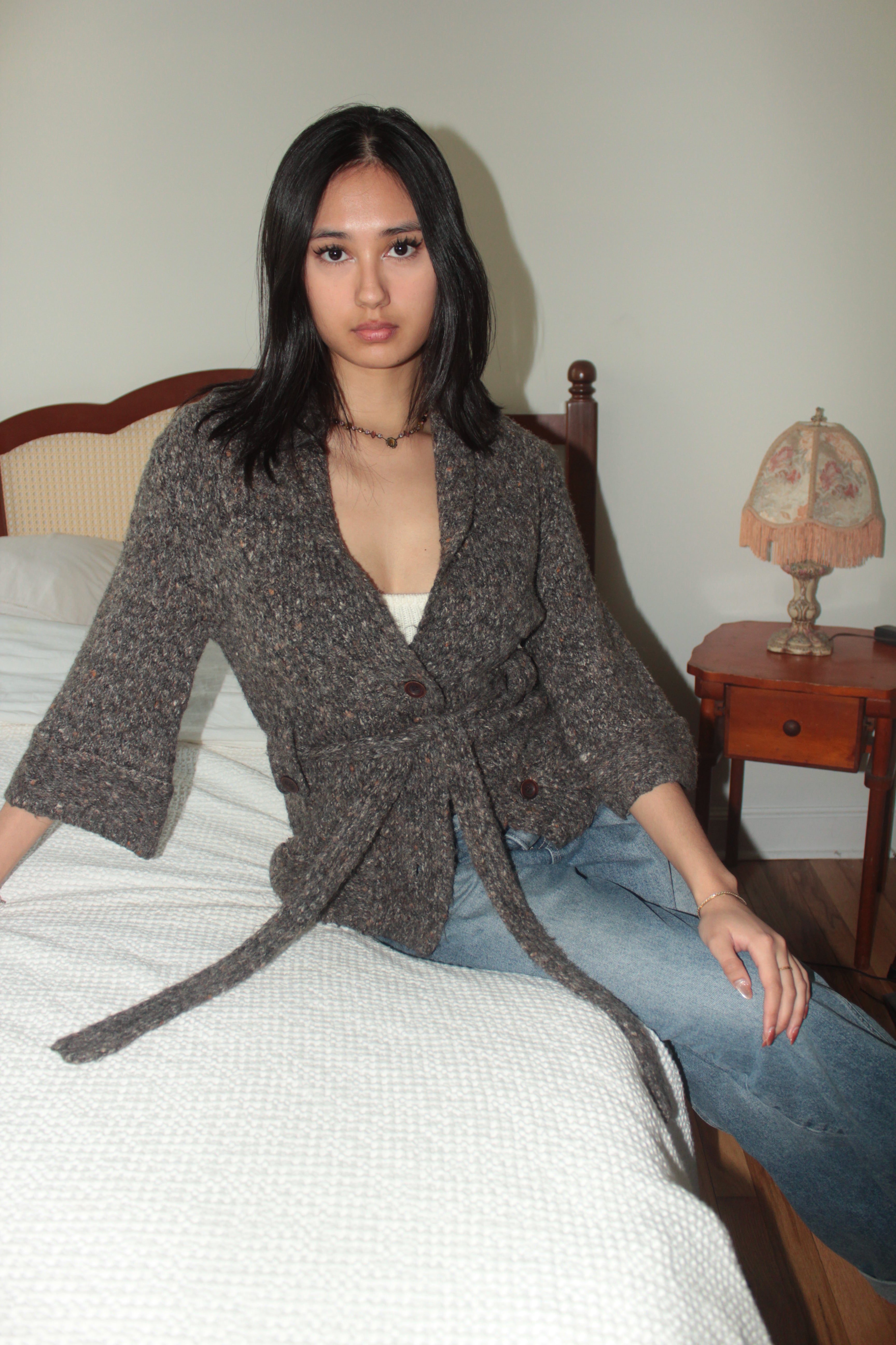 Vintage 90s Heathered Cocoa Belted Knit Cardigan (S/M)