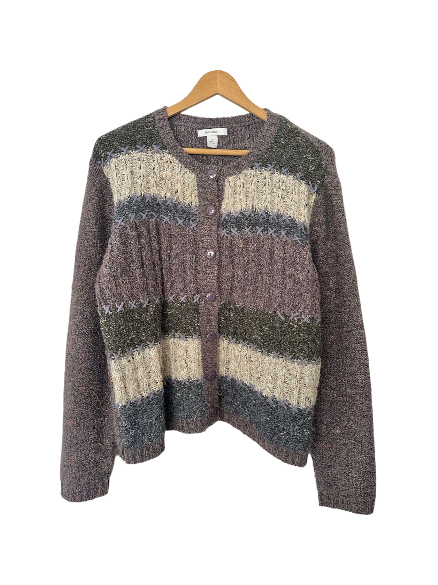 Vintage 90s Olive & Cream Striped Knit (M)