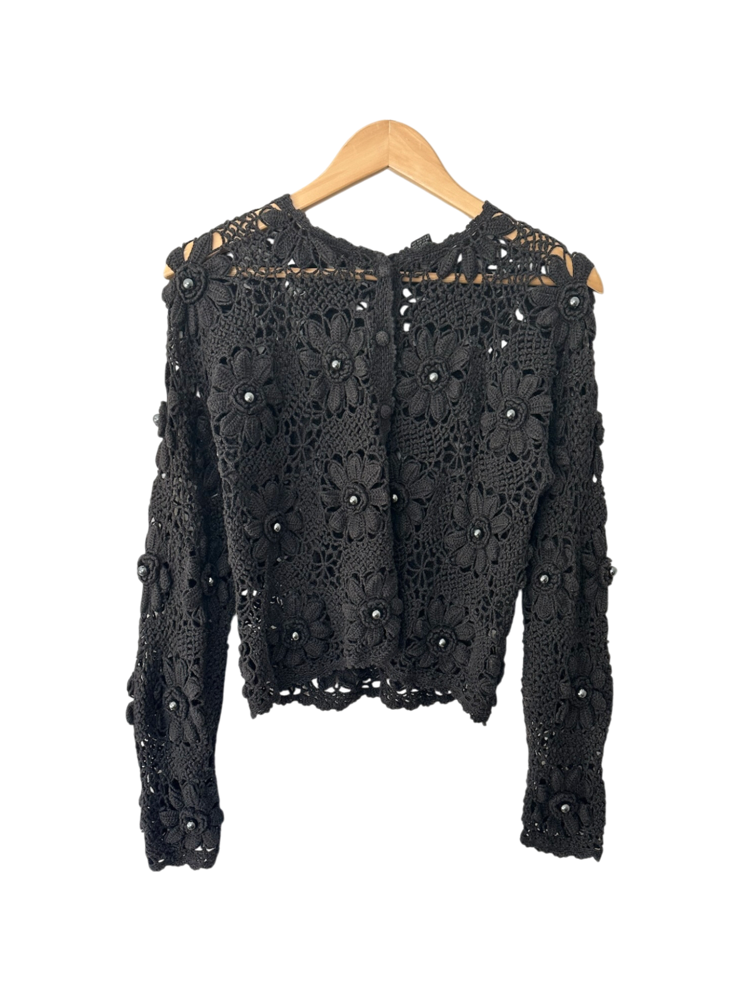 Vintage Y2K Charcoal Open Knit Cropped Cardigan (S)
