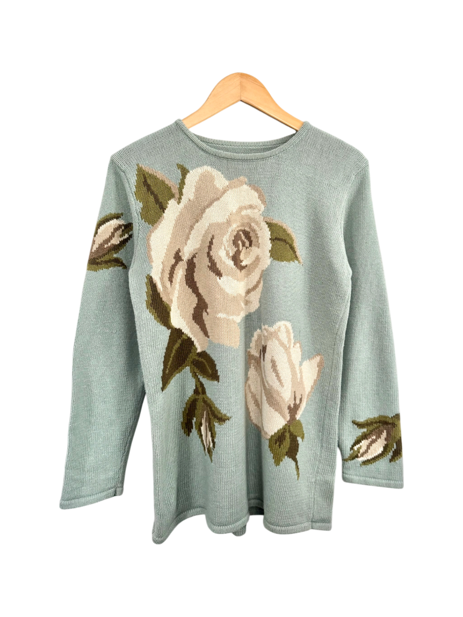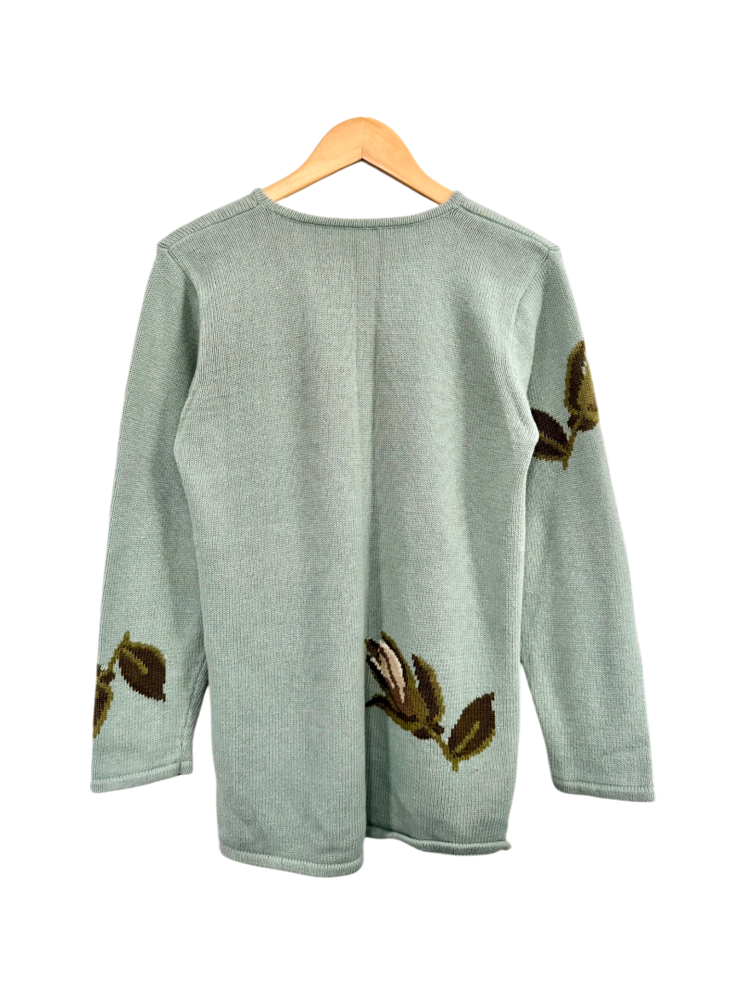 Vintage Soft Sage Rose Knit Sweater (M)