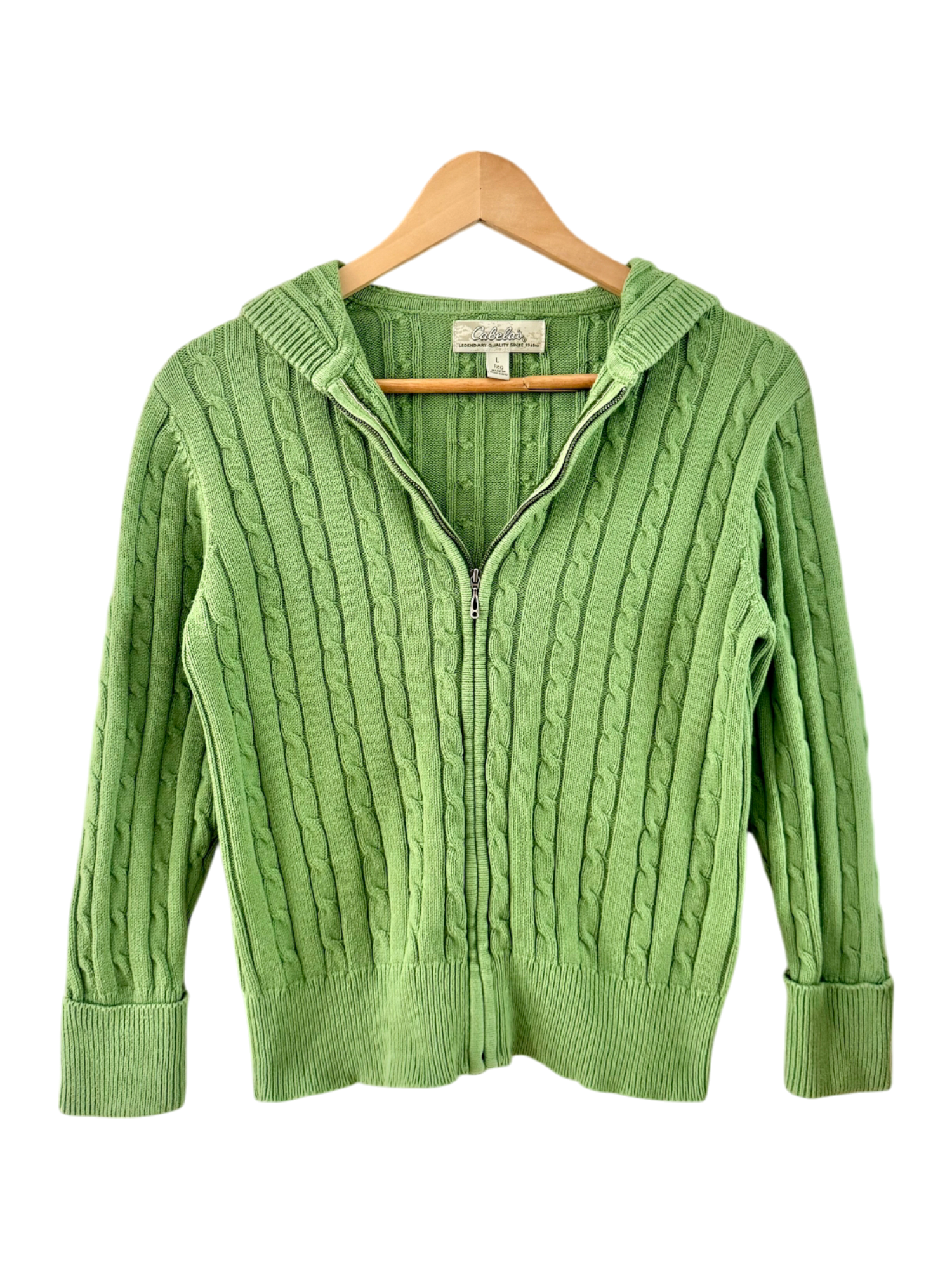 Vintage Apple Green Cable Knit Hoodie (M/L)