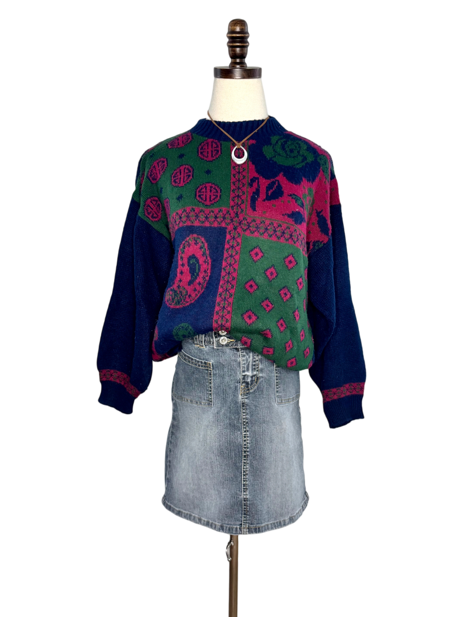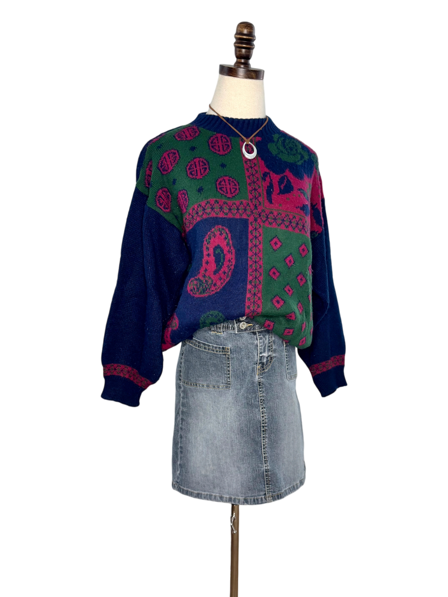 Vintage 90s Patchwork Paisley Knit Sweater (M)