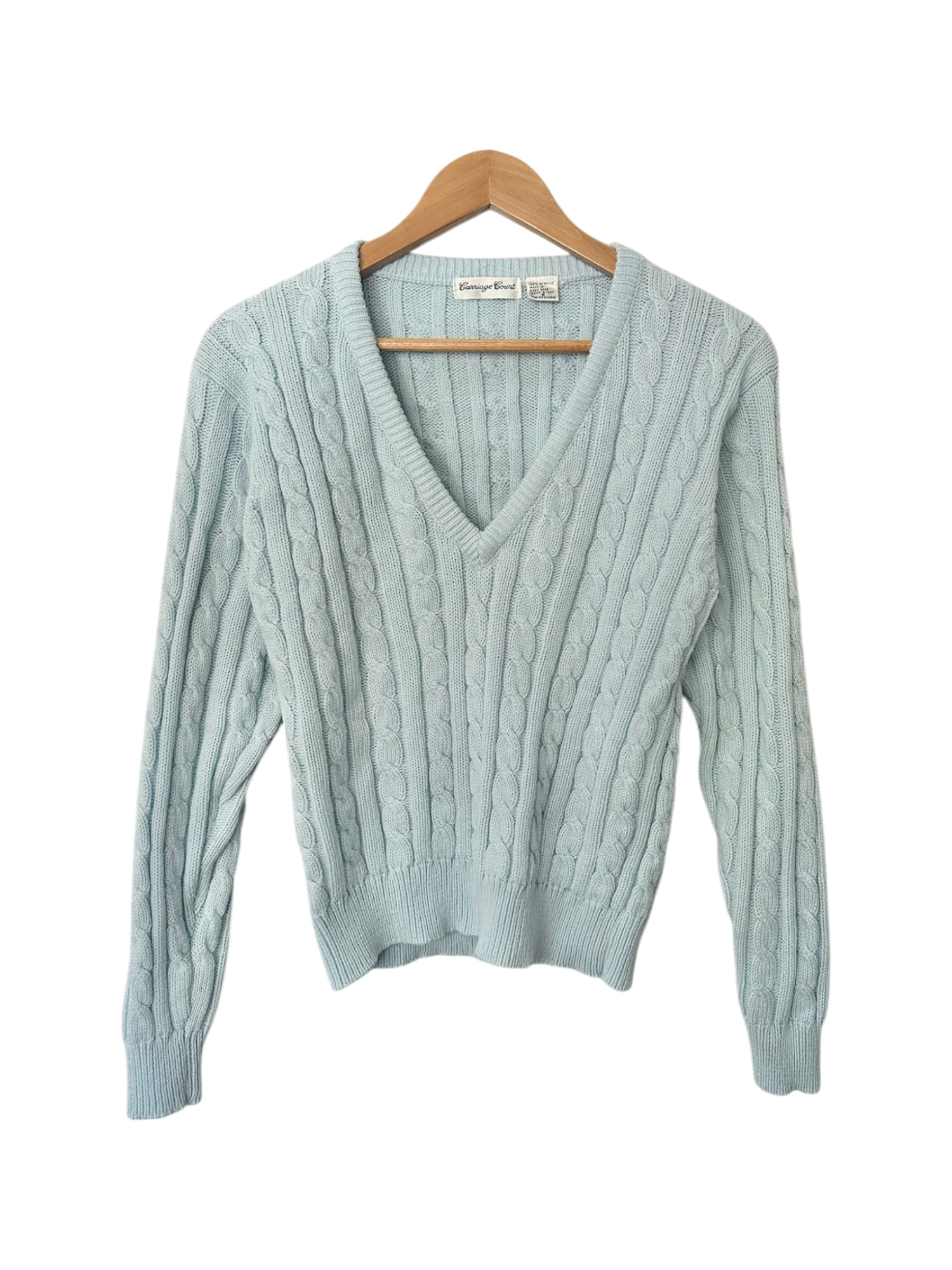 Vintage 90s Powder Blue Cable Knit V-Neck (S)