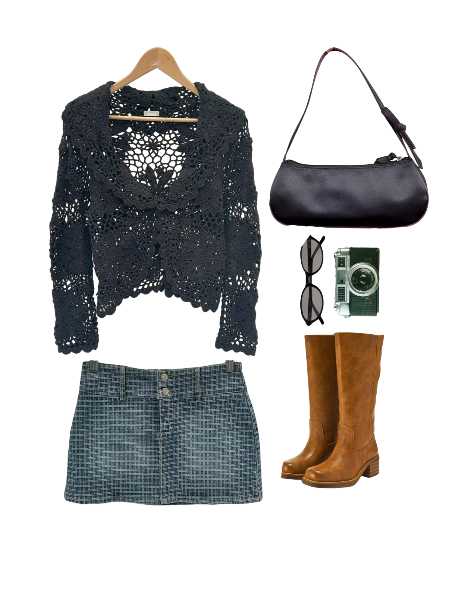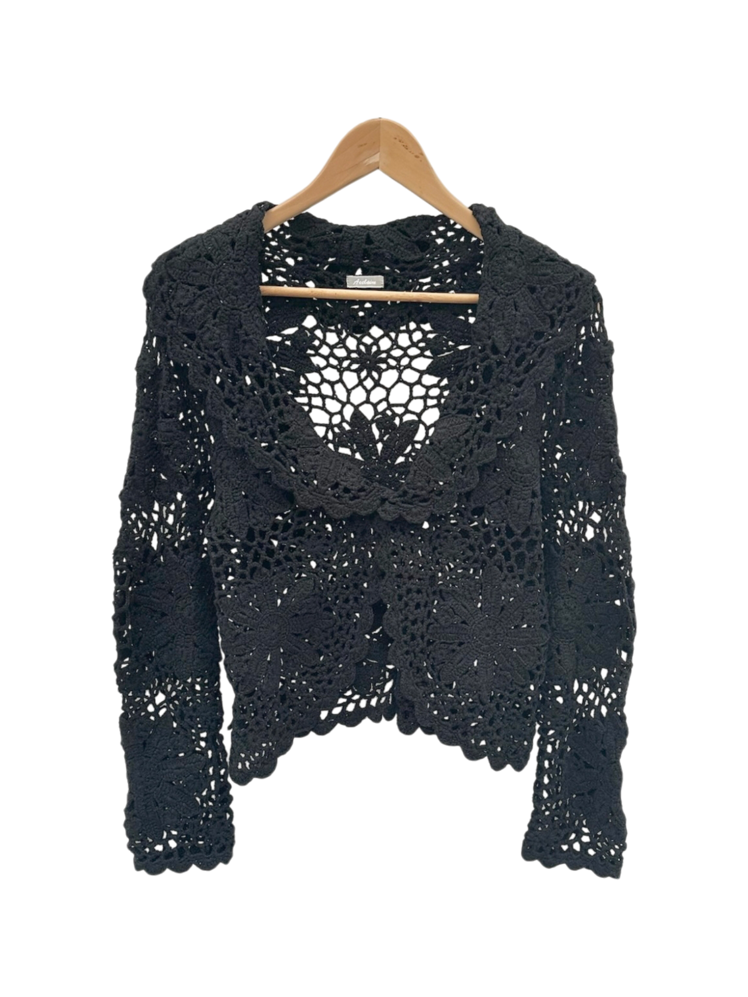 Vintage 90s Black Crochet Floral Lace Knit (M/L)