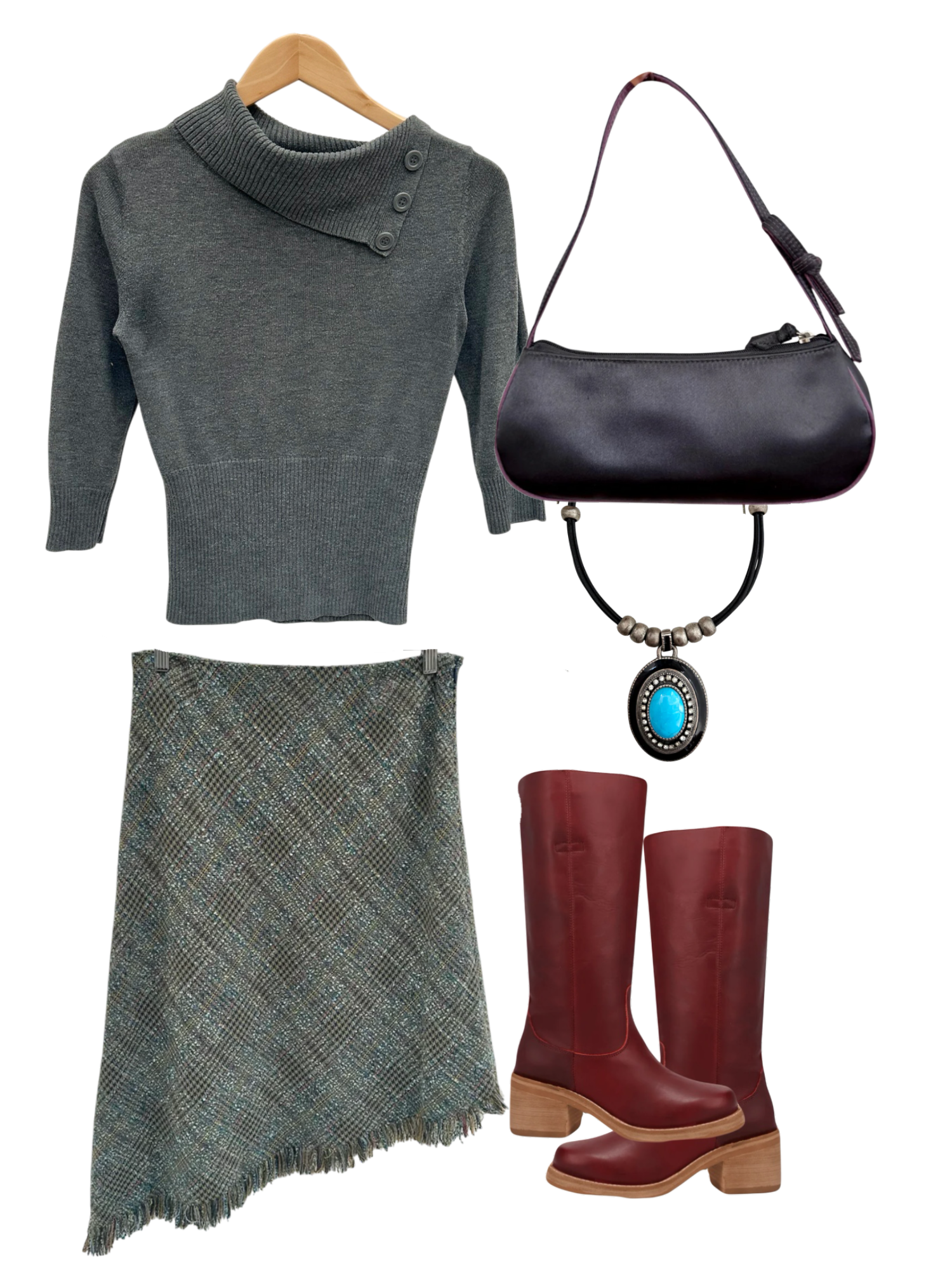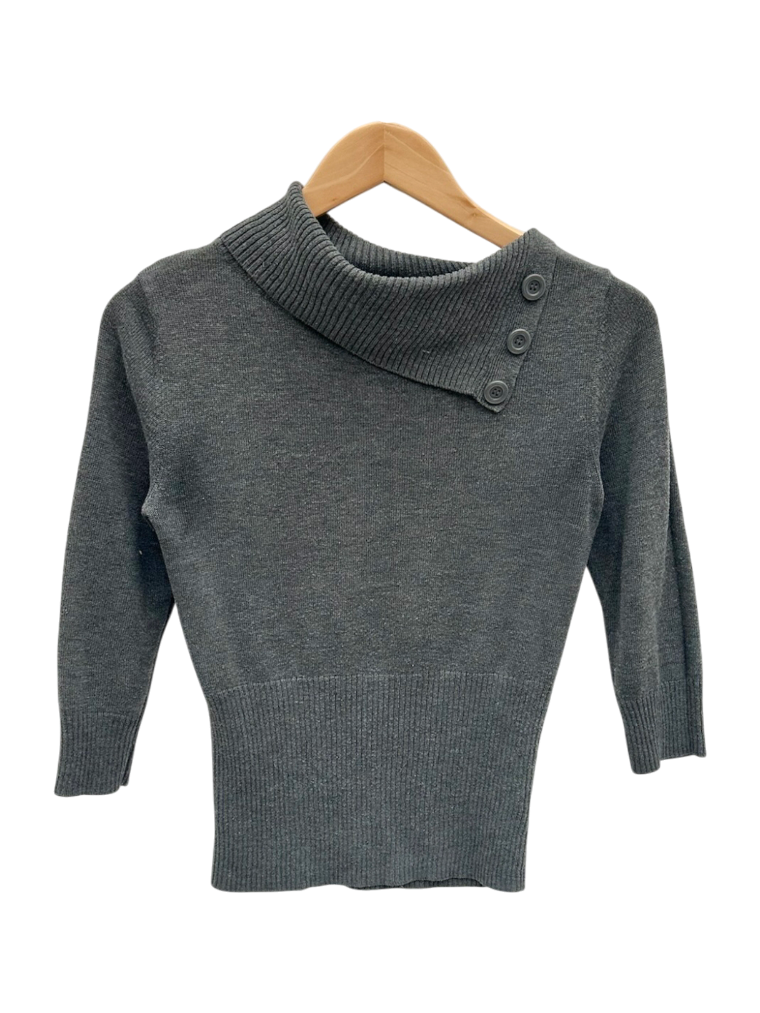 Vintage 90s Charcoal Asymmetric Button Collar Sweater (S/M)