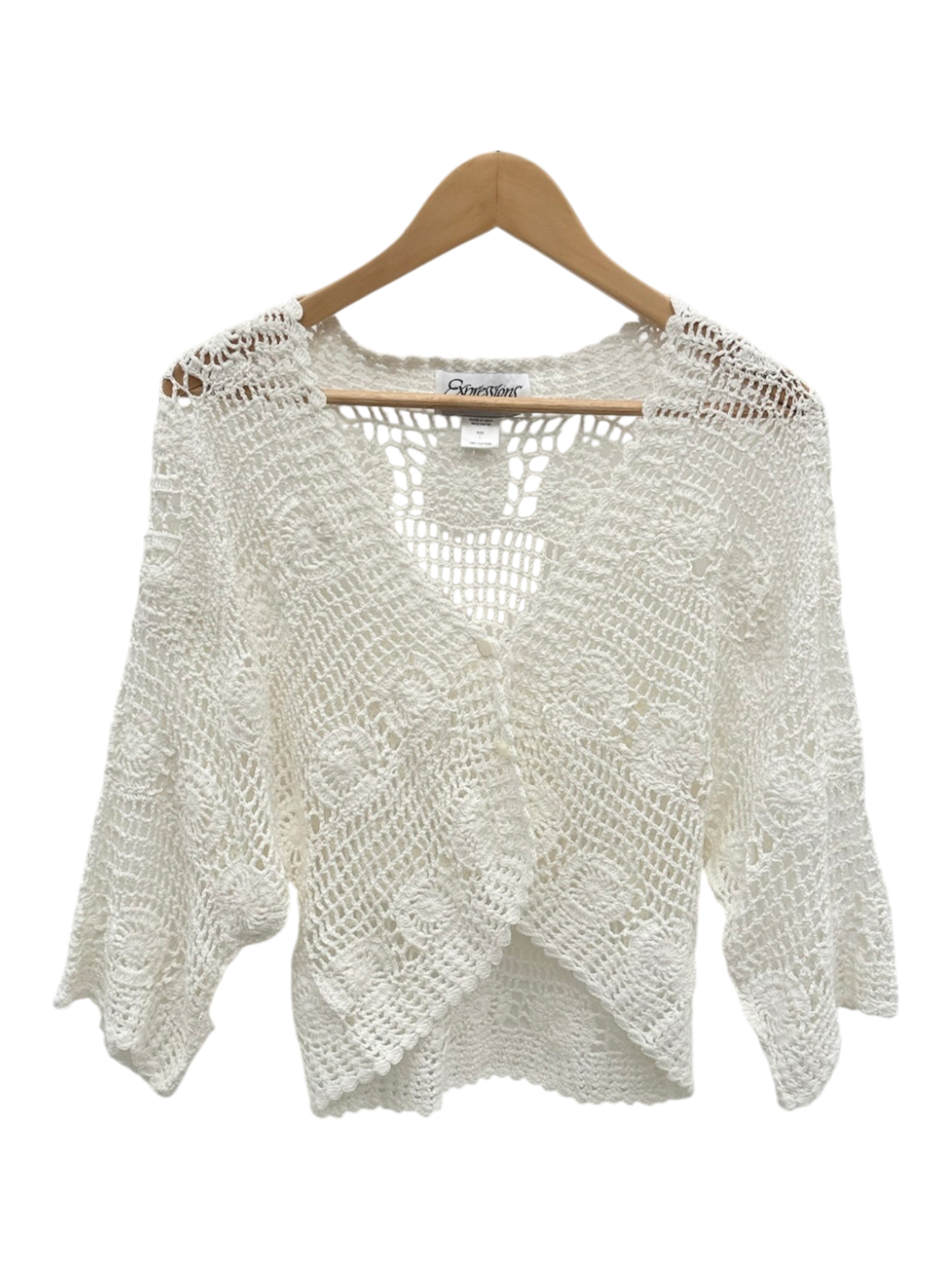 Vintage White Crochet Open-Knit Wrap Cardigan (L)
