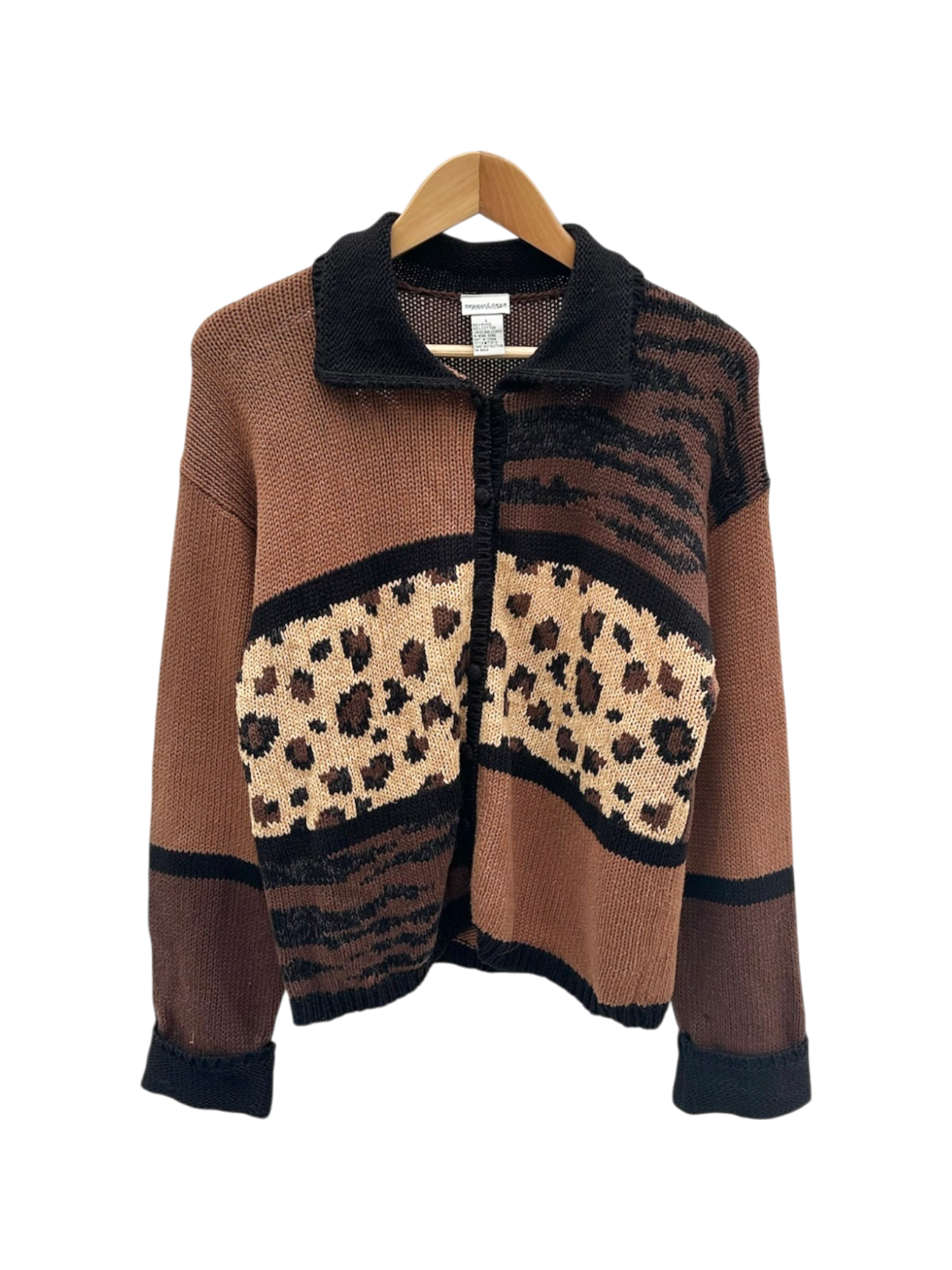 Vintage 90s Retro Patchwork Mixed Animal Knit Cardigan (L)